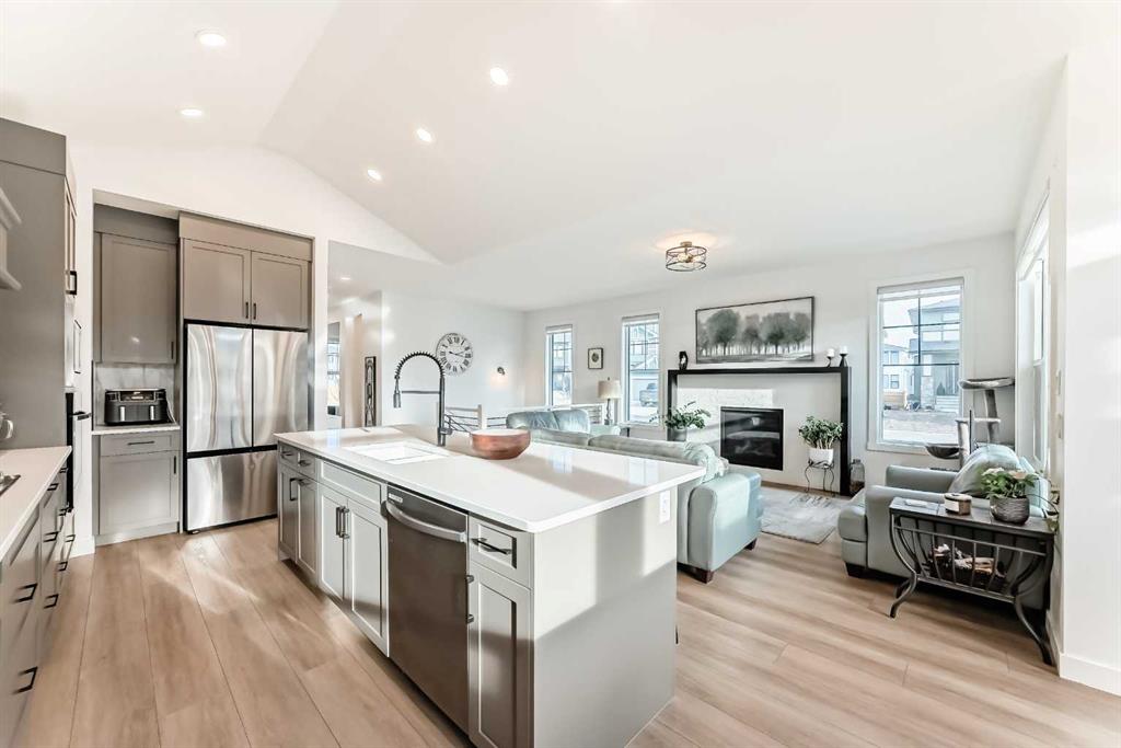 Welcome to this exceptional bungalow-style home in the picturesque community of Harmony—where modern luxury meets natural beauty. Perfectly positioned on a generous corner lot, this residence offers an elevated lifestyle that truly lives up to its name. From the moment you arrive, the home’s striking curb appeal and thoughtful design stand out. The insulated, heated, detached triple-car garage is a dream—complete with epoxy flooring and upgraded lighting—providing secure, spacious parking and storage. Inside, the bright, vaulted, open-concept layout is ideal for contemporary living. The home features three well-sized bedrooms, including an impressive primary retreat. This serene sanctuary showcases a spa-inspired ensuite with dual sinks, a free-standing tub, and a large tiled shower. At the heart of the home is a chef-inspired kitchen designed to impress. Highlights include a massive centre island, gas cooktop, upgraded cabinetry, built-in garbage/recycling pull-out, and a fridge with a self-filling water dispenser. The open layout encourages both connection and effortless entertaining. The expansive living room is bright and has a cozy fireplace. A main-floor den adds versatility, making it perfect for a home office or quiet reading space. The dining area is large which is perfect for when you want to entertain. The fully finished basement features 9′ ceilings, two additional bedrooms, and a spacious family/games area—ideal for movie nights, relaxation, or hosting guests. Need RV parking? This corner lot provides the option to store an RV or extra recreational toys with ease. Additional upgrades include a large deck spanning the entire back of the home, automated blinds, two phantom screen doors (front and back), a new ceiling fan, and included washer and dryer. Harmony is more than a community—it’s a lifestyle. Enjoy the lake, golf club, scenic walking and biking paths all while being close to essential amenities. Situated just steps from Mickelson National Golf Club, LaunchPad, and access to the 2 Harmony Lakes. You’ll experience a perfect blend of tranquility, recreation, and convenience. Don’t miss your opportunity to call this remarkable property home. Contact us today to schedule your private viewing and start your next chapter in Harmony