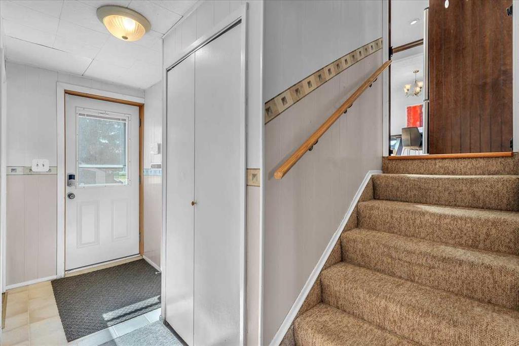 Practical upgrades add long-term value and peace of mind, including a high-efficiency furnace and hot water tank (2021), updated attic insulation and ventilation, newer windows, and an upgraded electrical panel. The deep garage and oversized driveway provide ample parking and storage, accommodating multiple vehicles with ease.