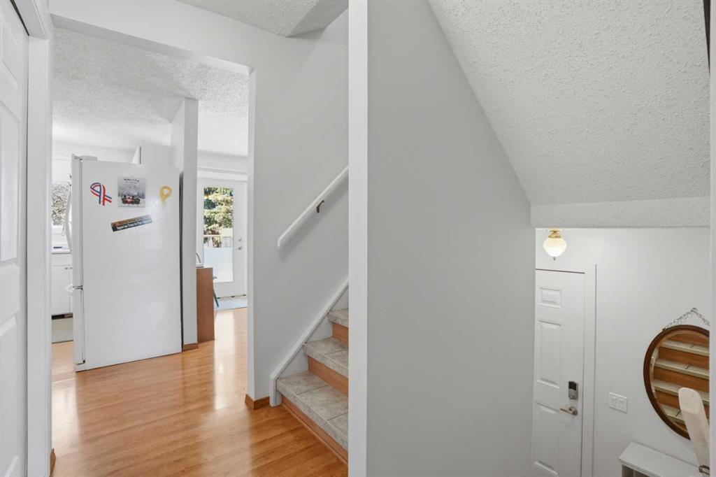 WOW! Welcome to this beautifully maintained end-unit townhouse in “Villa in the Park”, located in the desirable community of Marlborough Park. Offering 4 spacious bedrooms and 1.5 bathrooms, in 1,746 square feet of fully developed living space, this home is perfect for families or those seeking extra space. Enjoy an abundance of natural light with east, west, and north exposures, along with a fully fenced, private, west-facing backyard—ideal for relaxing or entertaining. This townhome features newer vinyl windows, newer appliances, updated kitchen, and major mechanical upgrades including a newer furnace and hot water tank. Cozy up by the charming wood-burning fireplace, and appreciate the convenience of your dedicated outdoor parking stall (#57) directly behind the unit. Just steps from shopping, dining, transit, parks, pathways, and schools, with easy access to major roadways, this location truly has it all. Condo fees here include water and sewer utilities! Don’t miss this fantastic opportunity—call now to view!