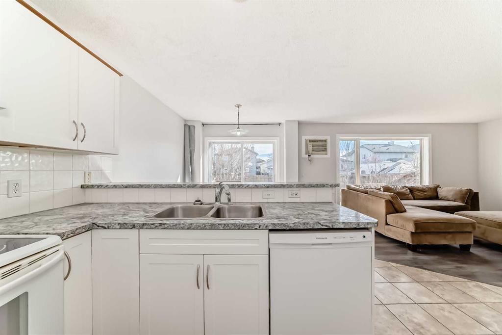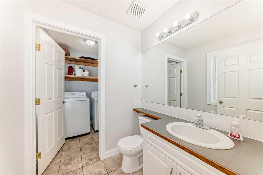 The main floor is designed for function and flow, with a bright kitchen that connects seamlessly to the dining area and living room. The kitchen is well organized and the peninsula counter provides additional prep space, while large windows in the living area bring in natural light and offer views of the backyard. A convenient half bathroom and main floor laundry add practicality to everyday routines.