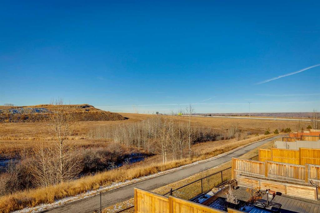 Welcome home to your private oasis in the highly accessible and family-friendly community of Crestmont. This immaculate Homes by Avi built residence features 4 bedrooms up, 3 bathrooms, striking architectural details, and quality upgrades throughout. From the soaring ceilings to the unobstructed west-facing views, this is a home that truly takes your breath away. An abundance of natural light welcomes you the moment you step inside, flowing effortlessly through the open and inviting main level—designed to impress both growing families and enthusiastic entertainers alike. The living room is anchored by a cozy corner gas fireplace with custom tile surround, creating a warm, welcoming atmosphere. The chef-inspired kitchen is equipped with an oversized island, quartz countertops, stainless steel appliances, a tiled backsplash, upgraded full-height cabinetry, and a convenient corner pantry. Just off the main living space is a flexible room ideal as a home office, den, or even an additional main-floor bedroom, paired with a full 4-piece bathroom for added convenience. Enjoy seamless outdoor living on the west-facing deck, perfect for relaxing while taking in the stunning views. Upstairs, the spacious owner’s suite features a spa-like 5-piece ensuite and a dedicated walk-in closet. A well-appointed laundry room—with triple-capacity front-load washer/dryer and ample shelving—sits adjacent to the primary suite. The upper level also includes three additional generous bedrooms, a large centrally located bonus room that separates the kids’ wing from the primary suite, and a second 4-piece bathroom with a separate tub/toilet area for family functionality. The walk-out lower level is undeveloped and ready for your custom vision. Outside, the fully fenced backyard includes a gate with direct access to the community bike path system. Completing this exceptional property is an attached double garage. Homes on this street are rarely offered—don’t miss this incredible opportunity. Easy access to local amenities shopping, schools, the Trans-Canada Highway and Stoney Trail.
