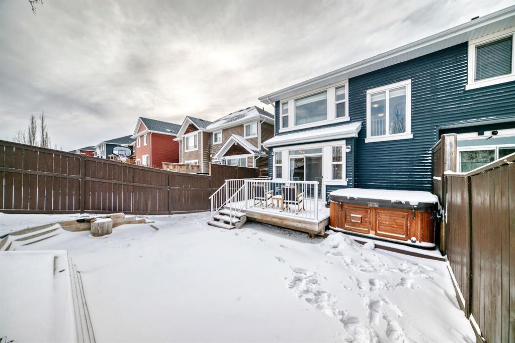 ** OPEN HOUSE SATURDAY JAN 17th 1:00-300pm** Welcome home to this exceptional semi-attached two-storey home located in the highly sought after community of River Song. This property is conveniently located walking distance to Bow Valley High School, kms of paths down to the Bow River, a quick drive into town over the Jack Tenant Bridge or out to the highway for great access to Calgary, Kananaskis and Banff National Park. This beautifully upgraded home includes an oversized single attached garage with storage and workshop area, large landscaped lot backing on green space and a HOT TUB! Inside you will find 4 bedrooms, 3.5 bathrooms and impressive 9’ ceilings on both the main and upper levels, ample space for the whole family! The modern kitchen offers stainless steel appliances, a tiled backsplash, white quartz countertops, a large centre island, and contemporary white cabinetry with storage, flowing seamlessly into the dining area and spacious living room highlighted by a natural gas fireplace with stacked stone surround, mantel and striking barn board feature wall to bring in plenty of warmth. The patio doors off the living room lead you to a fully landscaped, private backyard oasis ideal for outdoor entertaining. Including a hot tub where you can soak your worries away and a private fire pit area with paving stones and backing onto green space for ultimate peace and privacy. Upstairs, the generous primary retreat includes a walk-in closet and a 4-piece ensuite with double sinks, a large walk-in shower, alongside two additional bedrooms, a full 4-piece bathroom, convenient upper-level laundry, and a large bonus room with vaulted ceilings and views to the east. The newly developed basement showcases unique brick, barn board, and shiplap feature walls and includes a spacious recreation room perfect for guests, in-laws or the kids. You will also find the fourth bedroom and a 3-piece bathroom with in-floor heating! Book a showing today!
