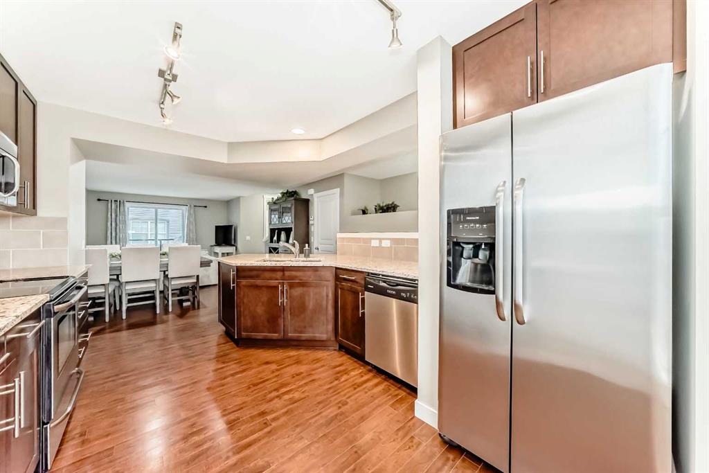 Offering just over 1,234 sq. ft. of developed living space and over 200 Sq ft of expandable space in the Entry / utility room once entering from the garage. This 2013-built row townhouse combines function and comfort. The main floor showcases an open concept hardwood flooring, granite counter tops in the kitchen, stainless steel appliances, slow closing cupboards and plenty of room to have more than one cook in the kitchen!