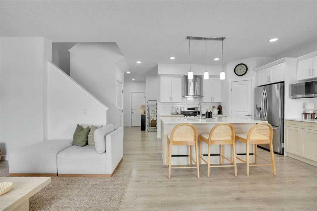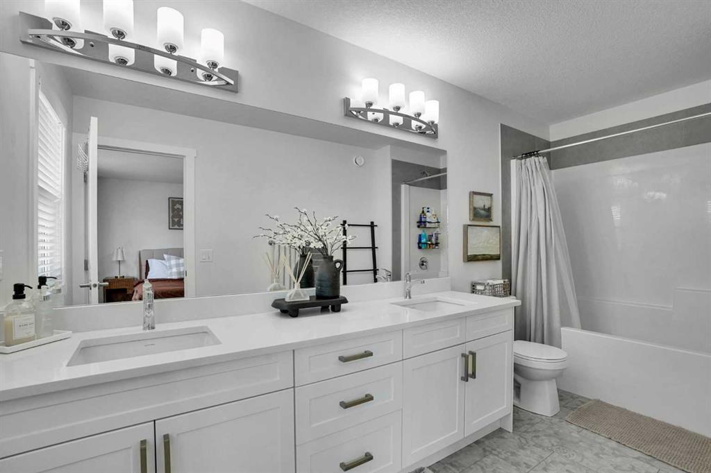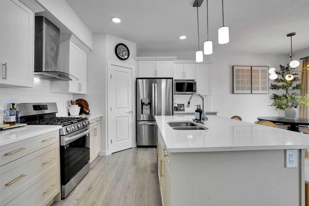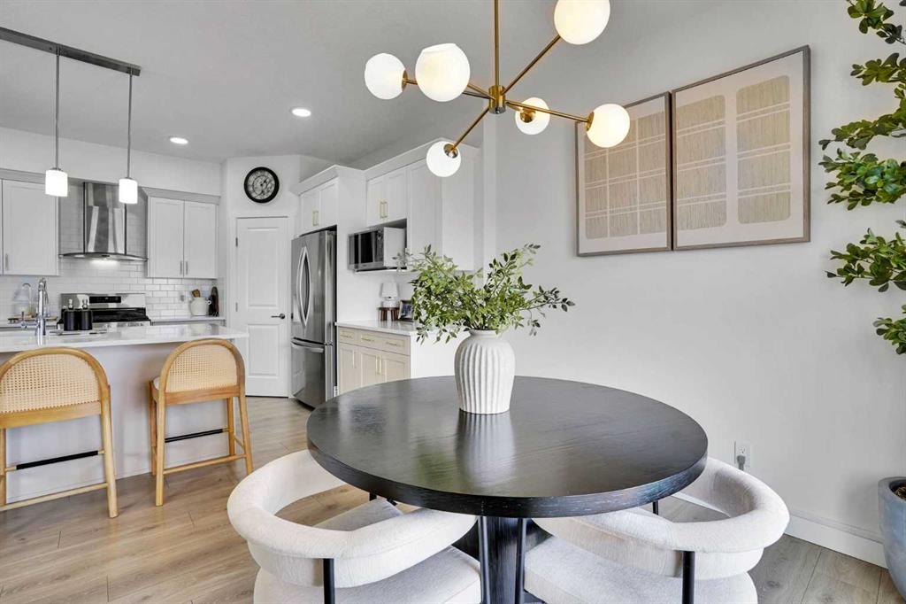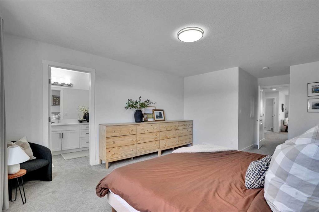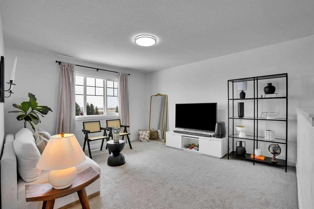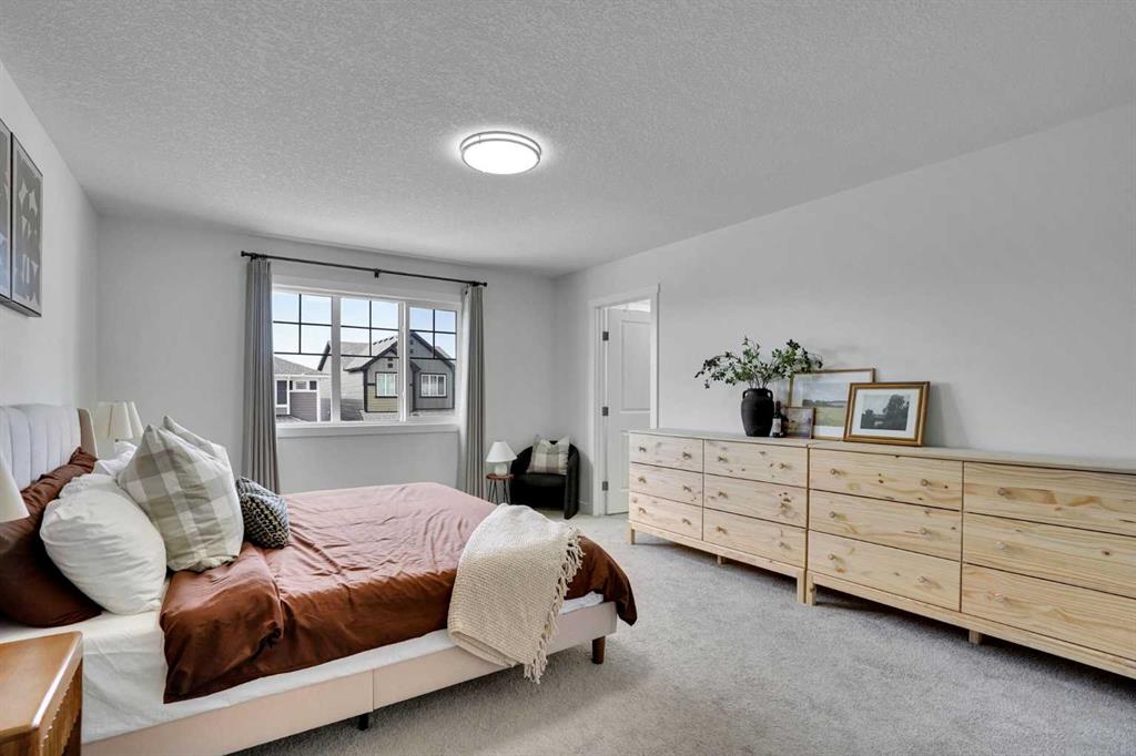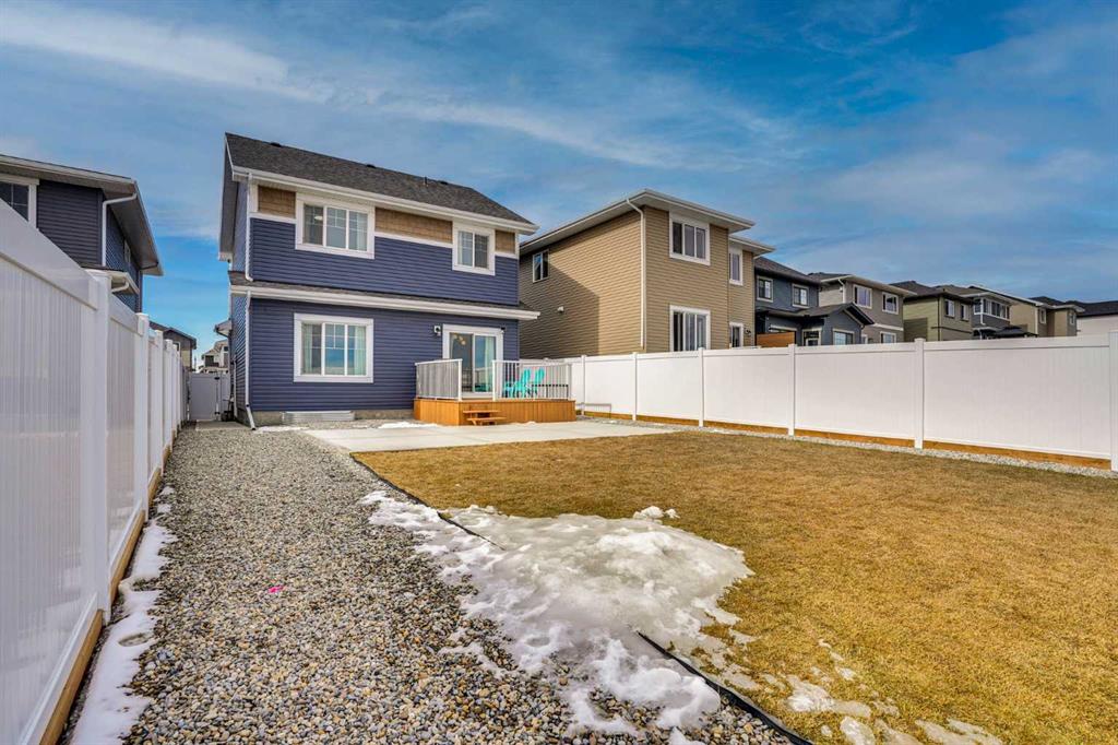Welcome to this stunning home located in the sought after community of Air Ranch—where upscale living, modern style, and exceptional functionality come together! This beautifully maintained property offers 4 bedrooms, 2.5 baths, and a double attached garage, complete with an extended, widened driveway that provides generous additional parking. From the moment you arrive, you’ll appreciate the thoughtful upgrades, including a concrete walkway that leads to the fully maintenance free backyard—perfect for effortless outdoor living. Enjoy summer evenings on your large concrete patio or unwind on the upper deck. Step inside to a bright, open concept main floor featuring a flex room/bedroom, a spacious foyer, and a stylish living area highlighted by a central gas fireplace. The chef inspired kitchen showcases a good size quartz island, modern cabinetry, and seamless flow into the dining area with sliding doors to the backyard—ideal for entertaining. Upstairs, retreat to your luxurious primary suite complete with a spa like 5 piece ensuite. The upper level also features two additional generous bedrooms, a 4 piece bath, a cozy bonus room, and a conveniently located laundry room.