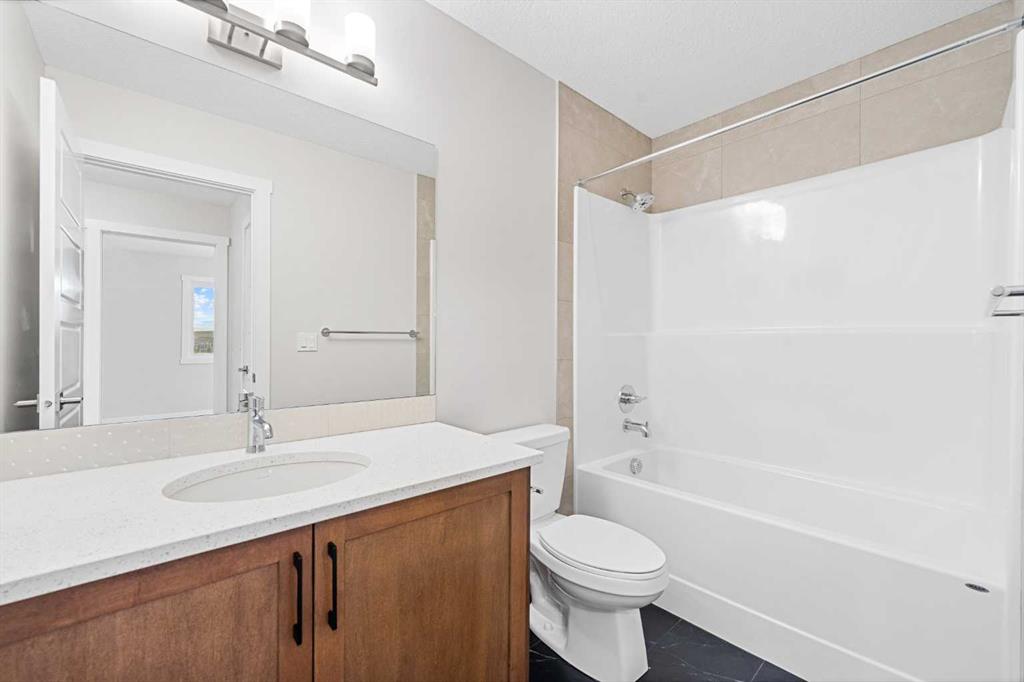 Move-In Ready | 2024 Build | East/West Facing | 1,580 SqFt | 3-Bedrooms | 2.5-Bathrooms | Incredible Living Space | Quartz Countertops | Stainless Steel Appliances | Beautiful Finishes | Open to Below Ceilings | Pot Lighting | Open Floor Plan | Electric Fireplace | Large Windows | Upper Level Laundry | Side Entry to Basement | Alley Access. Welcome to your stunning 2-storey home in Bayside with 3 bedrooms, 2.5 bathrooms and an expansive living space. The main and upper levels boast 1580 SqFt with an additional 701 SqFt in the unfinished basement. Open the front door to a foyer with views into the open concept main level. The front living room is framed with large windows beaming with morning sunlight through the East facing windows. The living room is paired with an electric fireplace adding both style and comfort to this space. The open floor plan compliments a smooth transition from living to dining. The kitchen is outfitted with ample cabinet storage, a bold and stylish black herringbone accent backsplash, quartz countertops, stainless steel appliances and a centre island with barstool seating. The kitchen is also includes a gas line to the stove! The kitchen has a pantry for dry goods storage too! Off the kitchen is a rear coat closet and back door that leads to the backyard and rear parking pad. The main level is complete with a 2pc bath. Upstairs holds 3 bedrooms and laundry. The primary bedroom is grand with a walk-in closet and a private 4pc ensuite bath with a walk-in shower and a double vanity. Bedrooms 2 & 3 are both a great size with closet storage and share the main 4pc bathroom with a tub/shower combo. The laundry is located on this upper level in a deep closet to not take away from any of your living space. Downstairs, the basement has a separate side entry and has rough-in plumbing! This space can be easily transformed to fit your family’s needs. Outside is a great sized backyard with space for a deck and a rear detached double garage! Hurry and book your showing at this incredible family home today!