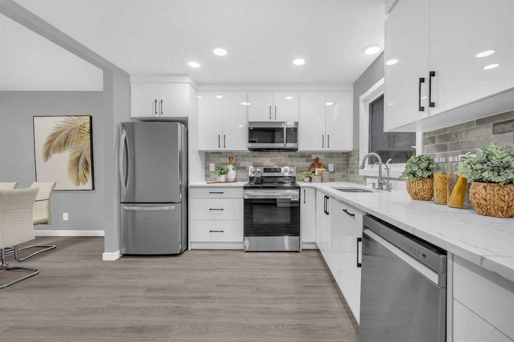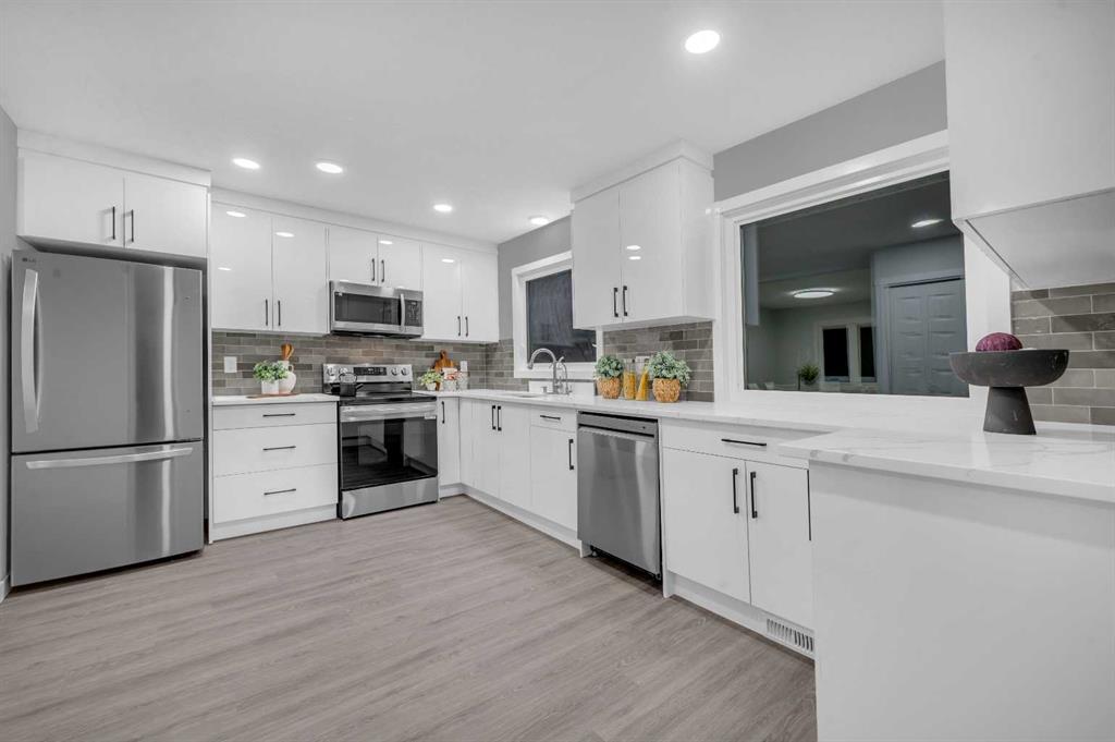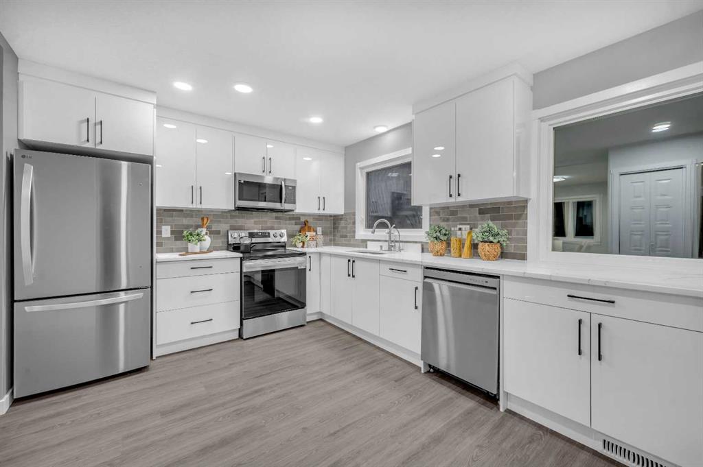 Fully Renovated 6-Bed, 4-Bath Single family home on an Over-Sized lot perfectly nestled in the highly sought-after community of Dalhousie NW. This inviting residence offers over 2,200 sq. ft. of thoughtfully designed living space, ideal for families looking for comfort, space, and style. Step inside to a generous front foyer that leads to a bright living room with brand-new full-size window filling the living room with ample sunlight. This fully developed bungalow has been beautifully renovated, showcasing stylish vinyl plank flooring throughout the house. The spacious kitchen features quartz countertops, white color cabinet, a striking backsplash, high-end stainless-steel appliances and seamless connection to the dining area. The main floor offers 3 bedrooms, 2 full bathrooms including a generous primary bedroom with a 4-pieceensuite. Convenient laundry area is also located on the main floor. Downstairs, the fully finished Illegal Basement Suite boasts a large living room, spacious 3 bedrooms, 2 bathrooms, full kitchen with brand-new stainless-steel appliances, cabinets and quartz countertops. It also includes a laundry along with a separate entrance which is great for potential rental income. Recent upgrades include brand new triple pane full size windows, vinyl plank flooring, new doors, new stainless-steel appliances, quartz counter tops, kitchen cabinets, lighting fixtures, washroom vanities and freshly painted. The oversized backyard is fully fenced features mature trees, sun exposure, and fire pit. This home truly has it all – location, style, and functionality. Enjoy proximity to top-rated schools, parks, shopping, and quick access to major routes, including Sarcee Trail, Crowchild Trail, and John Laurie Boulevard. Nearest elementary school – Dalhousie School, Nearest Junior high school – H.D. Cartwright School, Nearest high school – Sir Winston Churchill High School. Don’t miss your chance to see it today! Call your favorite realtor to book the viewing.