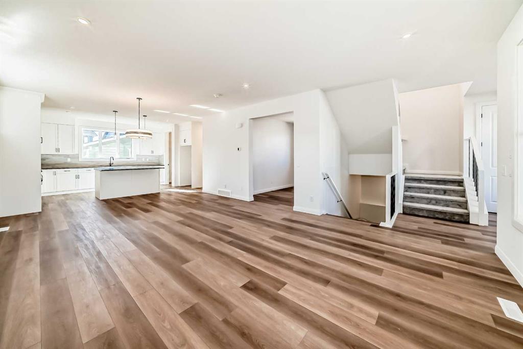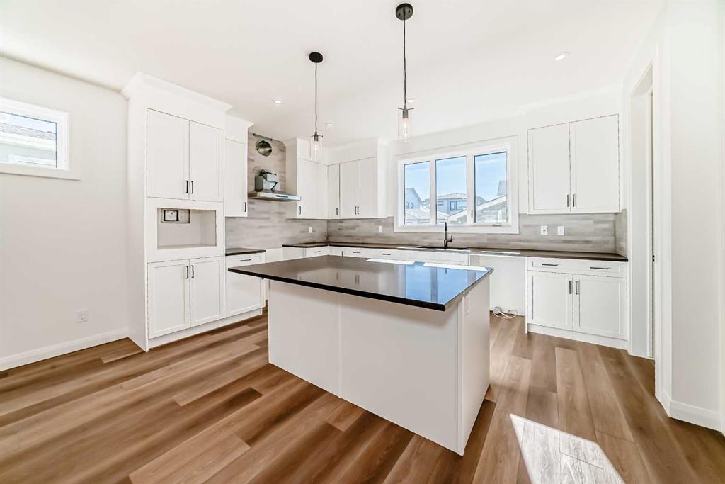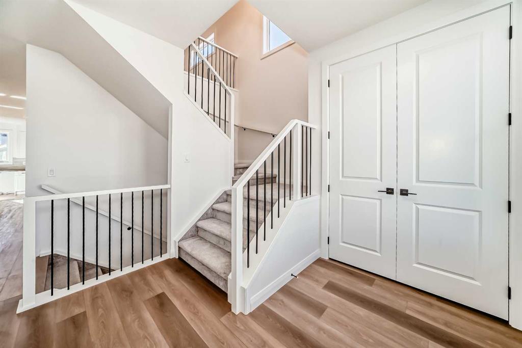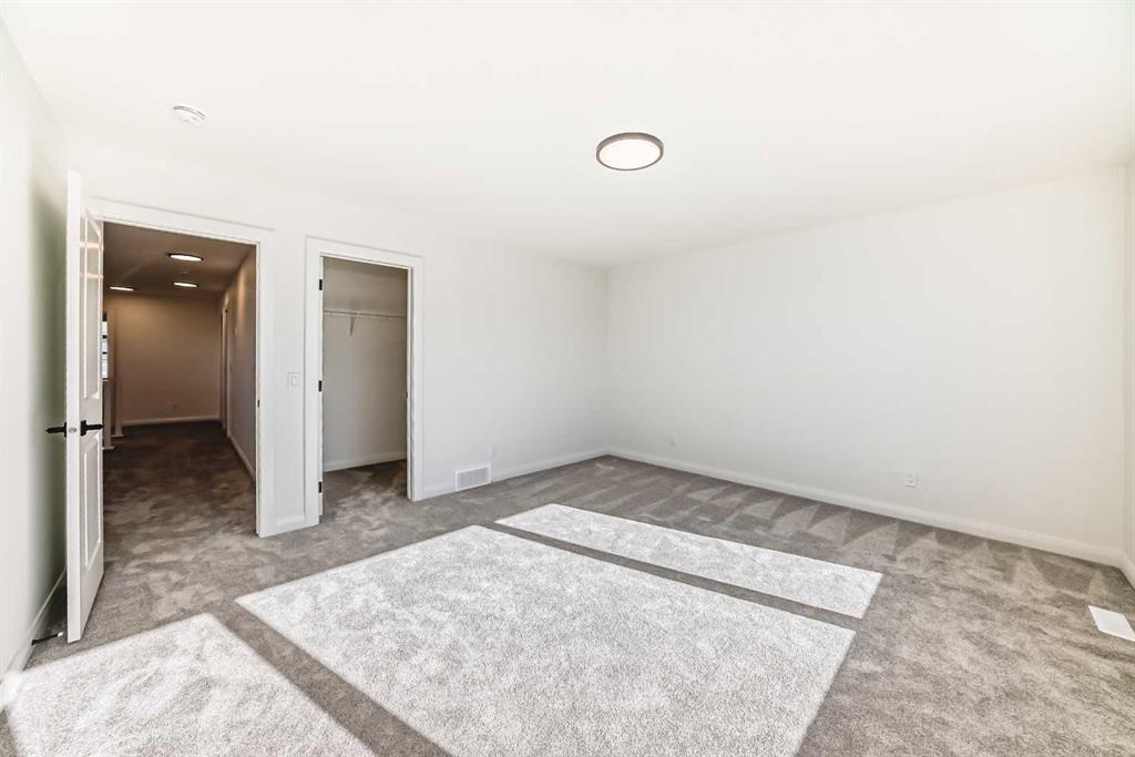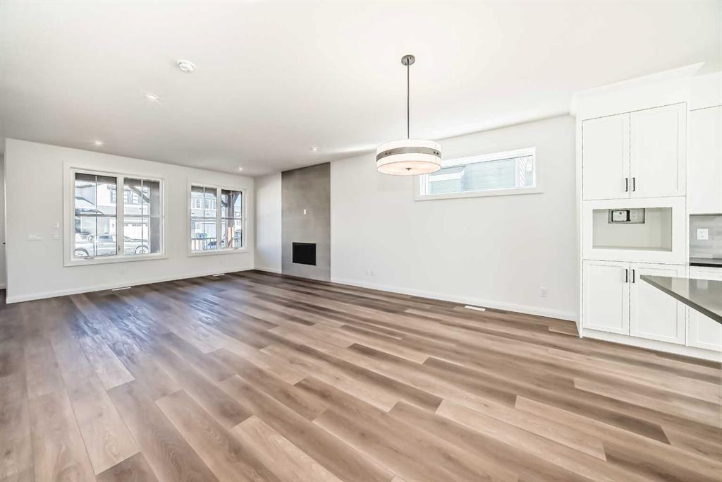 Contemporary sophistication meets everyday living in this 2,359 sq. ft. home in Harmony. The three-bedroom, two-and-a-half-bath layout is thoughtfully planned and finished with elevated interior selections. A generous main-floor office supports work-from-home days, while the living room is anchored by a stylish gas fireplace. The bright white kitchen and dining area flow together for effortless entertaining. Quality finishes run throughout, with a stainless-steel appliance package that includes a gas range, dishwasher, hood fan, and built-in microwave. Upstairs, a versatile bonus room makes a perfect media lounge or play area. The primary suite is a true retreat, complete with a spa-inspired ensuite featuring a beautiful walk-in shower and a large walk-in closet. Convenience continues in the dedicated laundry room with upper cabinetry and a folding counter above the washer and dryer. The unfinished basement is a blank canvas for additional living space and is roughed-in for a future bathroom. Outdoor details include an exposed-aggregate walkway and a stamped-concrete front entry. Parking and storage are easy with the oversized 24′ x 22′ double garage with large 18×8′ door. Extras include: 200 AMP Service, 2 stage furnace, 9′ basement ceiling height, Granite counters, and a fibre glass front door. Set within Harmony, one of the most sought-after lake communities, you are just minutes from parks, pathways, golf, lakes, and quick mountain access.