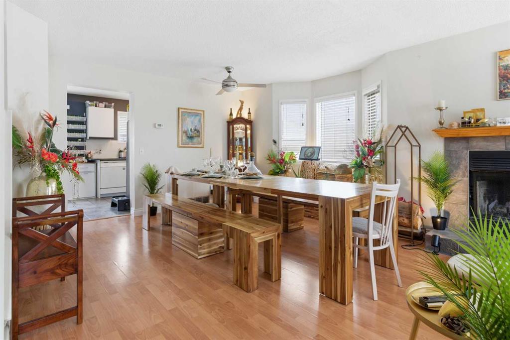 The main floor features a bright living and dining area with a cozy wood-burning fireplace, along with a spacious kitchen and eating nook. Upstairs you’ll find two well-sized bedrooms, including a primary suite with its own ensuite. The fully developed basement adds additional living space with a large recreation area, bathroom, and storage.