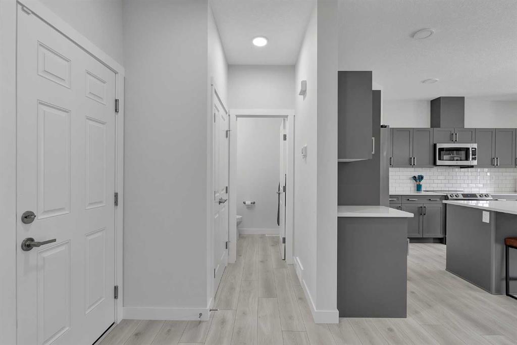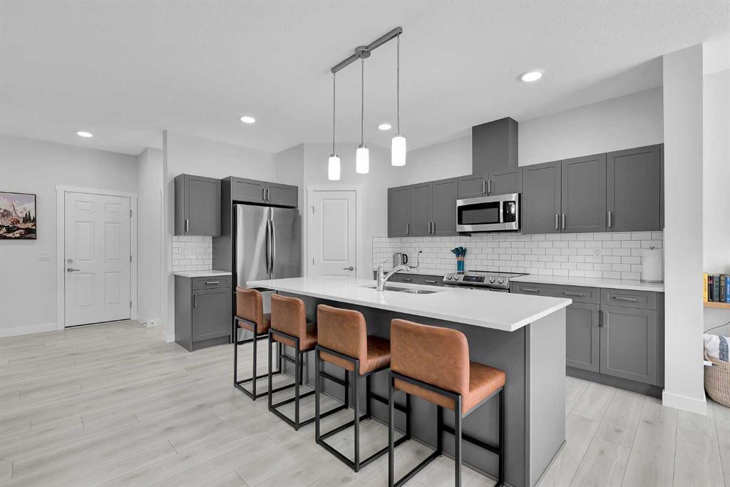 Welcome to 59 Belgian Crescent! Located in the vibrant, family community, Heartland. This beautifully maintained semi-detached home offers the perfect blend of style, comfort, and convenience. Surrounded by nearby parks, playgrounds, and everyday amenities. Step inside to discover a spacious open-concept main level designed for modern living. The bright and airy living room features a custom-built entertainment unit, perfect for cozy nights in or entertaining guests. The kitchen is a chef’s dream with elegant quartz countertops, sleek stainless steel appliances, and timeless shaker-style cabinets that provide ample storage and a touch of classic charm. Upstairs, you’ll find three generously sized bedrooms, including a serene primary suite with a walk-in closet, and a stunning ensuite featuring a quartz, double vanity. This home offers comfort and elegance in a prime location! Located only 20 minutes from Ghost lake, and quick access to the highway for a weekend mountain escape. The back yard is newly fully fenced and landscaped- ready for your summer BBQ events with family & friends! Don’t miss your chance to own this exceptional home in one of Cochrane’s most sought-after communities. Whether you’re upsizing, downsizing, or buying your first home, this is a must-see! Book your private showing today!