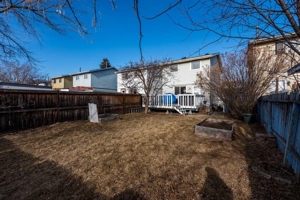 Welcome home to your Perfect & Affordable, 2-Storey Detached Family Home in the quaint community of Erin Woods. This beautiful family home with Rubber stone front steps (2025), enters to a Riverstone front foyer (2025), with a good sized layout of 1100+sqft above grade, a private fenced backyard, 3-beds up, 2-baths (1-2pc main, 1-4pc common up), and washer/dryer (2024) in the basement. The functional kitchen with tile backsplash, includes all the appliances you could need (Fridge, Stove, Dishwasher), that transitions to the Large Deck with gas hookup & Large private Backyard with RV access, where you can entertain guests and enjoy summer BBQ’s. The finished basement provides another large recreational area, along with ample storage in the utility room. BONUS!!! Roof shingles replaced in 2024, on Demand Water Heater 2017, Furnace 2010, Windows 2008. This home provides convenient access to Deerfoot Trail for quick access downtown or south/north of Calgary, and is a quick drive to Elliston park to enjoy the annual fireworks! View this home for yourself today before it’s gone!!!