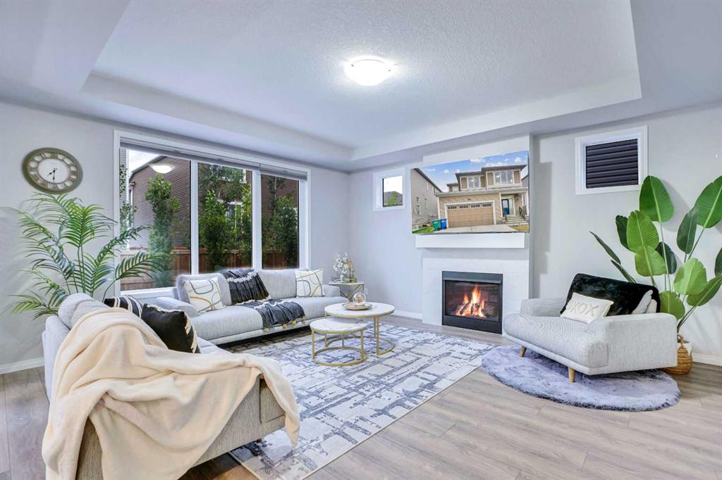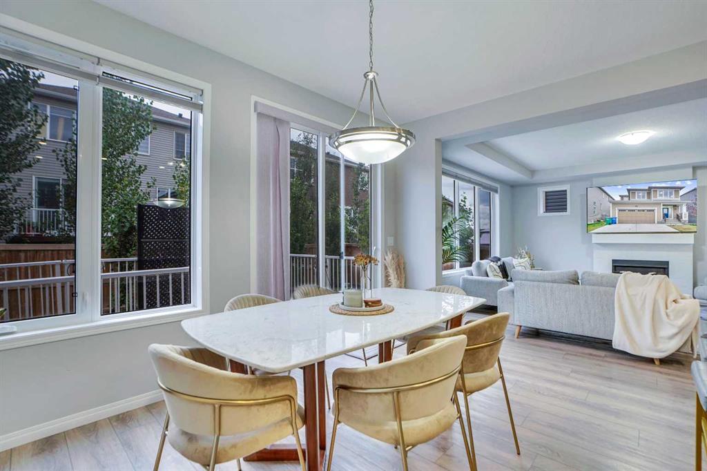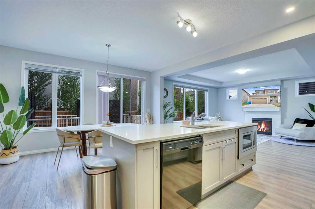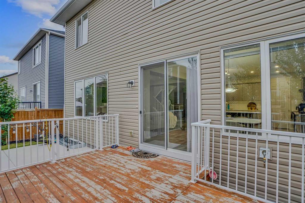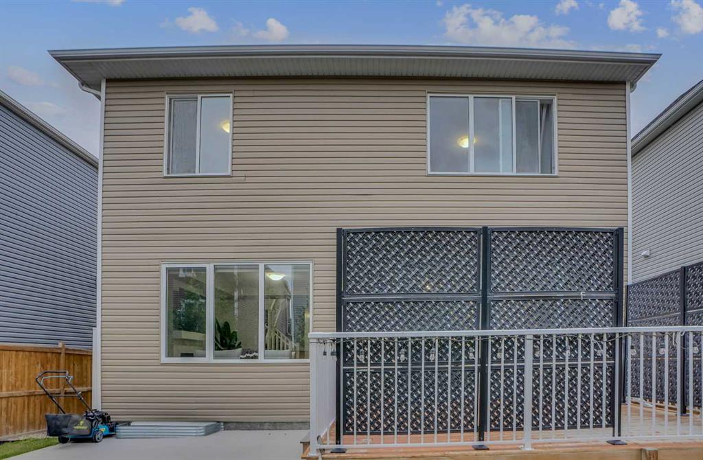 GORGEOUS 2167 SQUARE FEET TWO STOREY DETACHED HOME WITH DOUBLE FRONT ATTACHED GARAGE, SITUATED ON NICE WIDER LOT AND HAS VERY OPEN AND SPACIOUS FLOOR PLAN ! HUGE LIVING ROOM WITH FIRE PLACE, BEAUTIFUL KITCHEN WITH ISLAND, NICE CABINETRY, DINING AREA, 9 FEET CEILINGS, UPPER FLOOR HAS 3 GOOD SIZE BEDROOMS AND NICE BONUS ROOM, CENTRAL AIR CONDITONER, GREAT LOCATION, FENCED, DECK , LOTS OF UPGRADES, 10 MINUTES DRIVE FROM CROSS IRON SHOPPING CENTRE, VERY EASY AND QUICK ACCESS TO CALGARY, CLOSE TO AMENITIES !