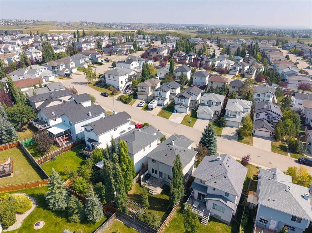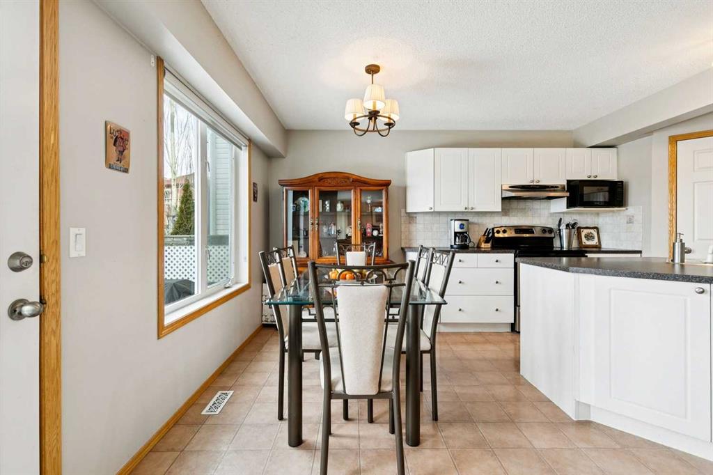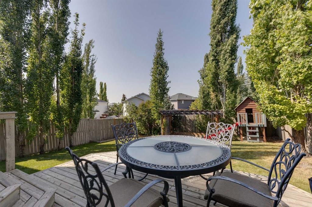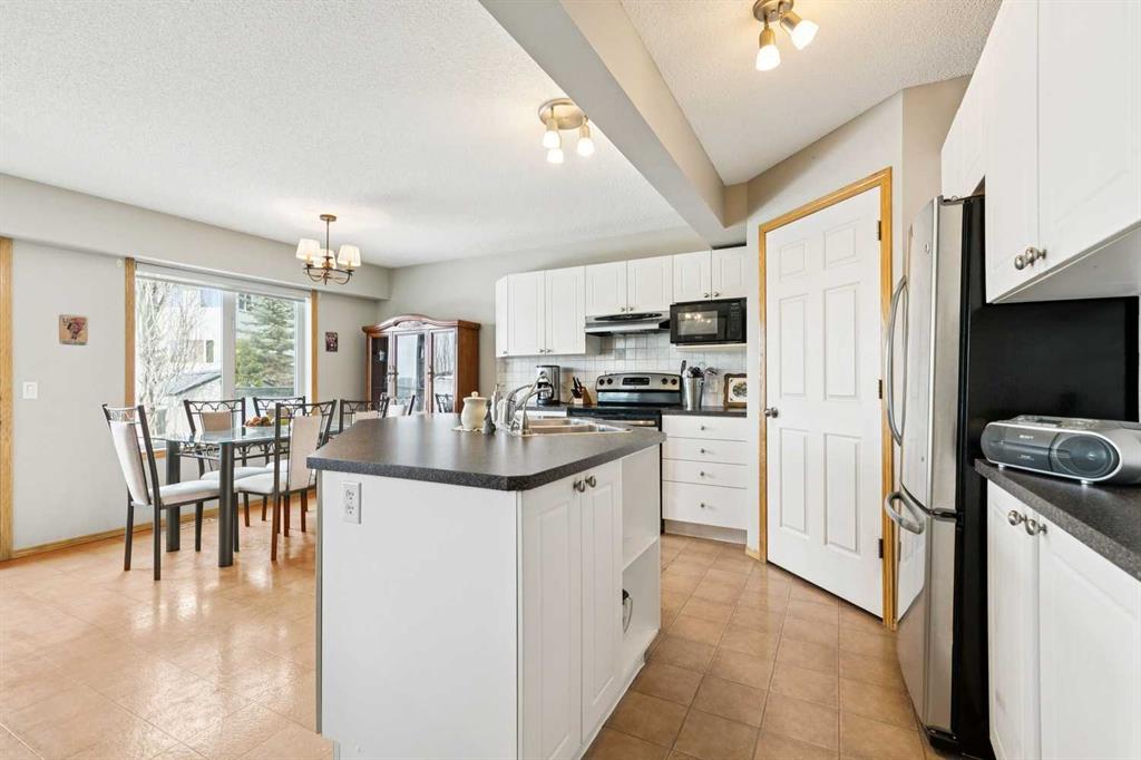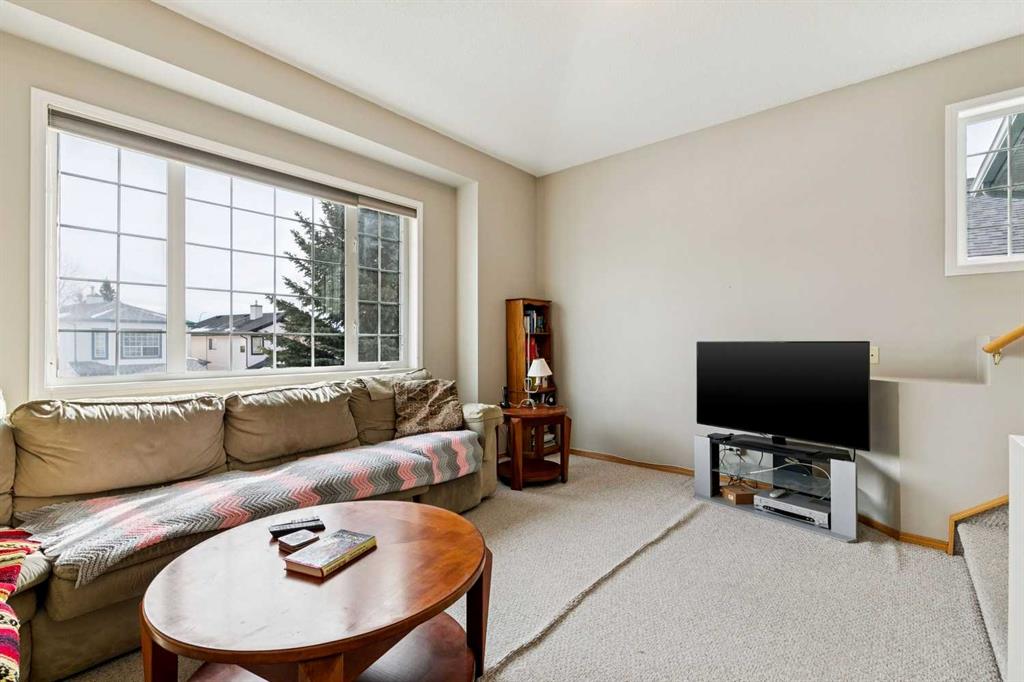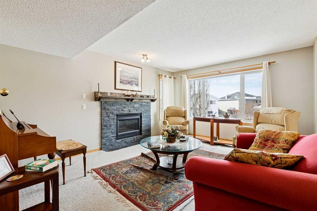 OPPORTUNITY KNOCKS! Over 2100 sqft of total development on a choice crescent location with a sunny west backyard. Well built “Shane” home in original condition and ready to upgrade and personalize to your liking. Popular open main floor plan which is great for family and entertaining. Main floor offers a private 1/2 bath, comfortable great room with cozy gas fireplace trimmed in stone and a picture window to enjoy the view into the yard and a peak at the mountains. The kitchen has a flat-top center island and a step-in pantry. Full size dining nook that accommodates a table for 6, and has a garden door to the 2-tiered 15’x14’ deck. Spacious front entry and closet with access into the double attached garage which is drywalled & insulated, heated (heater never used). The upper level has a large bonus room, 4 pc bath, 2 bedrooms, plus the primary bedroom with a step-in closet and 3 pc ensuite. The lower level offers a family room, 4th bedroom, 3 pc bath, utility & storage room. Upgrades include: gas line for the BBQ, roof shingles approx. 10 years old, newer hot water tank and some Low-E windows. Mature landscaping and playfort for the kids in the private backyard. Excellent location in the heart of the community, close to elementary school, ravine pathways and quick access to Stoney Trail. Great home! Great value! Property has been priced to allow for cosmetic upgrades. New RPR on order. Long-time family home; seller is downsizing – June 1 possession preferred. No HOA fee, but owners can join The Tuscany Club Association if they want to.