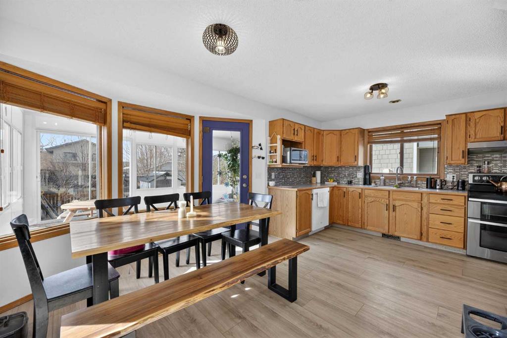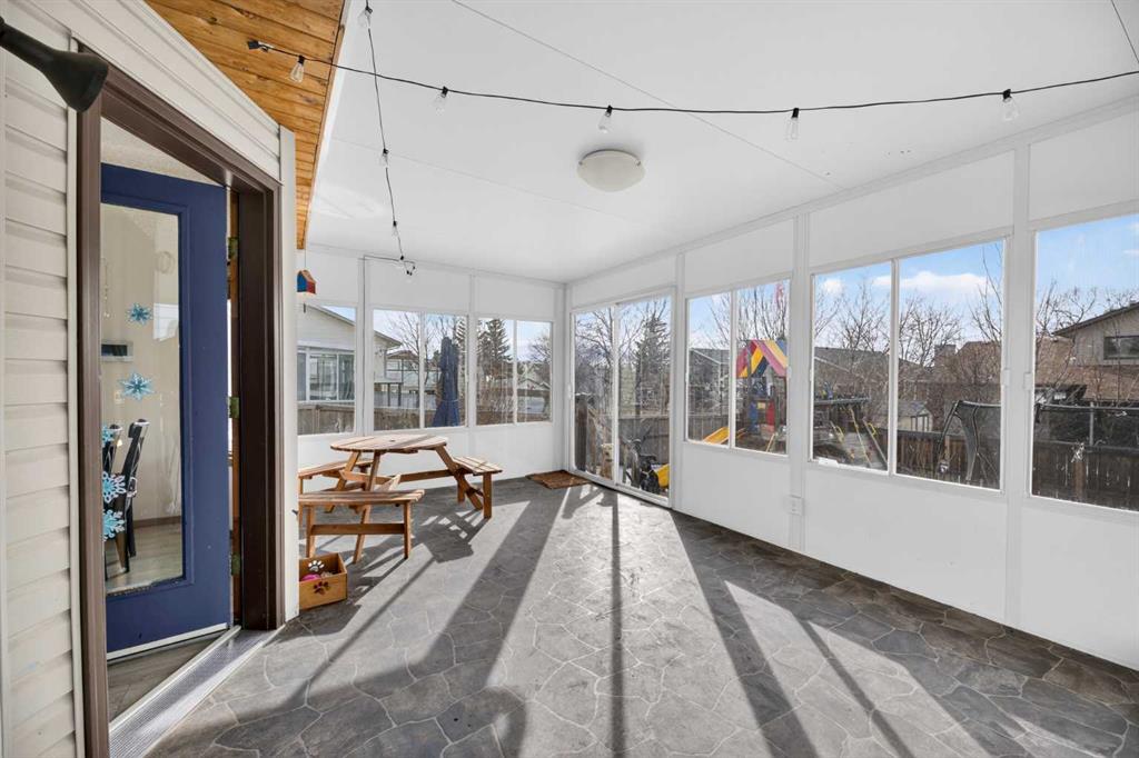 Tucked away on a quiet street in the established community of Meadowbrook, this home offers the space, updates, and location families are looking for. With mature trees, a large west-facing yard, and quick access to amenities, this property truly checks all the boxes. The main floor features a spacious kitchen with abundant counter and cupboard space and plenty of room for a large dining table—perfect for everyday living and entertaining. The dining area flows comfortably into the family living space and can easily double as a cozy reading nook. Just off the kitchen, the bright 18′ X 12′ three-season room provides additional living space and a great spot to relax while enjoying views of the backyard. Upstairs offers three bedrooms, including a generously sized primary bedroom with a large walk-in closet and convenient cheater access to the impressive 5-piece bathroom. The basement expands the living space with a large family room featuring a wet bar, plus a flexible area that works well as a home office, hobby space, or play area, along with ample storage. Recent upgrades include air conditioning (2019), a new garage door with opener (2020), vinyl plank flooring (2021), and a heated garage with sink. Located within walking distance to schools, parks, and everyday amenities, and offering quick access to Queen Elizabeth II Highway for an easy commute to Calgary. Homes in this location with this much finished space and a large yard don’t come along often—book your showing today.