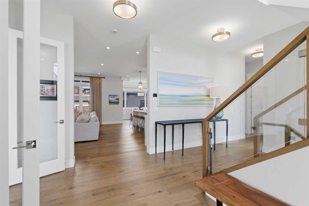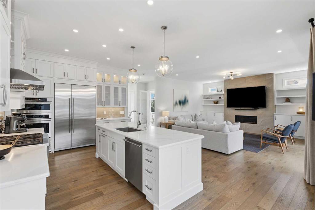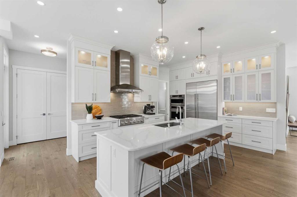 ***OPEN HOUSE Saturday April 11 from 1pm-4pm***Stunning luxury home in Lakeview by Matrix (Burntwood Homes), perfectly positioned overlooking a peaceful greenspace and just steps from the Lakeview Community Association, hockey rink, parks, and Connect Charter School. This exceptional property showcases premium finishings and beautiful materials throughout, with extensive custom woodwork on every level including a walk-in pantry, mudroom lockers, and fully built-out closets. The main floor offers a bright, open concept layout ideal for entertaining, highlighted by a gourmet kitchen, featuring GE Monogram appliances, an oversized island, and custom cabinetry. The living room is anchored by a striking full-height tiled fireplace flanked by built-ins, while large windows, light wood floors, and modern neutral tones create a warm, airy feel. A private office and formal dining room, separated by 8′ French doors, complete the main level. Upstairs, three spacious bedrooms each feature their own ensuite and walk-in closet. The primary retreat is a true sanctuary with a freestanding soaker tub, oversized rain shower and dual walk-in closets with custom organizers. Double patio doors open to a private west-facing balcony overlooking the backyard. Convenient upper-floor laundry adds everyday ease. The fully finished basement extends the living space with a media room, recreation area, wet bar, fourth bedroom, and full bath, ideal for entertaining or relaxing. Additional upgrades including air conditioning, Hunter Douglas blinds throughout, a reverse osmosis water purification system, water softener, and a fully drywalled double detached garage for a clean, finished look. The beautifully landscaped west facing backyard offers a turnkey outdoor space with gas line for barbecue, electronic awning to escape the hot summer sun and a spacious deck to enjoy the evening sunsets. Located in one of Calgary’s most desirable communities, Lakeview offers excellent schools, parks, and amenities within walking distance, along with quick access to major routes and a short downtown commute. A truly exceptional home in a premier location.
