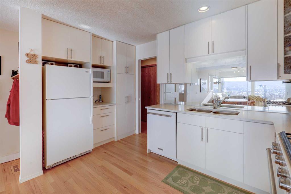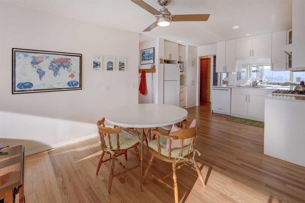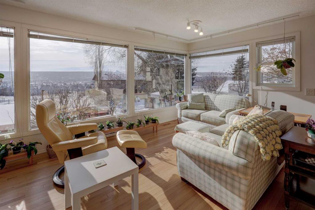 Welcome to this beautifully updated and meticulously maintained home in the sought-after community of Silver Springs. Just around the corner from the Bow River Valley, and very literally a few steps from the Bowmont Park and Bow River Pathway. This exceptional family home with mountain and valley views offers 4 bedrooms ( 3up, 1 down), 2.5 bathrooms, 2 wood burning fireplaces, providing both comfort and functionality. Upon entrance you’re greeted by a professional addition creating an enlarged foyer with high ceilings and hardwood floors. The main level has an open concept living room with large windows, a wood burning fireplace with gas log lighter and formal dining. Kitchen has been upgraded with newer appliances and quartz countertops with a breakfast nook. An absolutely massive south facing family/sun room with big bright windows offering you views of COP, Bow Valley and the Mountains. This bright and well-designed layout offers spacious living areas, abundant natural light, and a warm, welcoming atmosphere ideal for family living and entertaining. The bright lower level has a huge rec/games room with your second wood burning fireplace, a big bedroom, a giant office space which has been designed so you can easily convert it into 2 bedrooms in the future, a wet bar which can be turned into a kitchenette, another full bathroom and yes, a separate entrance from the back. This is the perfect home! Significant updates include brand new shingles and attic ventilation, hardwood flooring, completely new main bathroom, kitchen, new windows, appliances, new furnace, central air conditioner and so much more. You can access your backyard from both the main and lower levels. This beautifully landscaped South Facing backyard is a true highlight, featuring a detached double garage, established gardens, beautiful flowers, trees including two mature apple trees, creating a peaceful and private outdoor retreat. The gardens and flowers have been complemented by a top of the line underground irrigation system. Ideally located close to schools, parks, shopping, transit, and Stoney Trail, this home combines tranquility with unbeatable convenience. This is the one — an amazing opportunity to own a move-in-ready family home in one of Calgary’s most desirable northwest communities. Home to the current owners and lightly used for 50 years. With so much to offer, it will not last so call today!