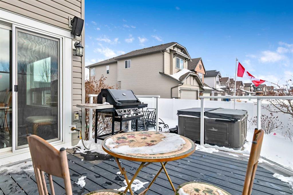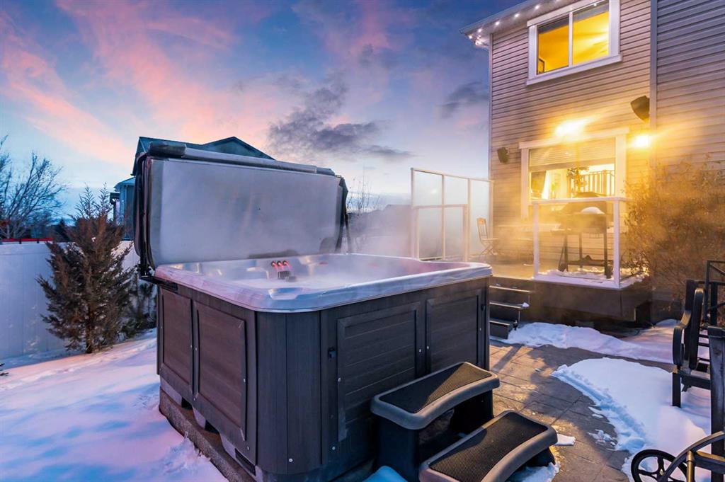 Wow! This immaculate, air-conditioned home with a triple garage is loaded with impressive upgrades inside and out. Offering over 3,100 sq. ft. of developed living space, this beautifully maintained 4-bedroom, 4-bathroom home is designed to pamper you and your family .Oversized south-facing windows flood the home with natural light, creating a warm and inviting atmosphere throughout. The terrific floorplan begins with a functional foyer and mudroom, perfect for everyday organization. The bright, open great room features soaring ceilings and seamlessly connects to the stunning kitchen, complete with granite countertops, upscale stainless steel appliances, and a convenient walkthrough pantry — ideal for both family living and entertaining. Upstairs, you’ll find three spacious bedrooms, a versatile bonus room, and a conveniently located laundry area. The primary suite is a wonderful retreat, featuring a luxurious ensuite designed for comfort and relaxation. The professionally developed basement expands your living space with a fourth bedroom, a spacious bathroom featuring heated floors, a steam shower, and a private sauna. Enjoy entertaining at the custom wet bar, highlighted by a charming potbelly gas stove, plus a huge storage room to keep everything organized. Outside, the upgraded outdoor space truly shines. Situated on a corner lot with vinyl fencing, this property offers a large stamped concrete patio, glass rail deck, hot tub, gravel dog run, irrigation system, and storage shed — creating the perfect setting for relaxing or hosting. This is truly a terrific home that blends space, style, and thoughtful upgrades throughout.
