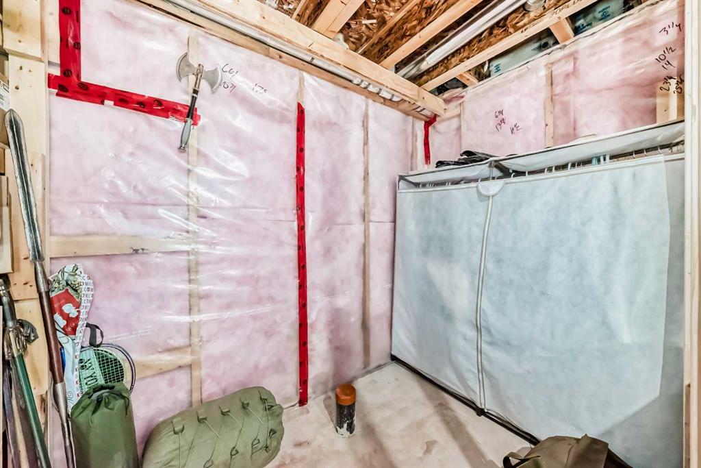 The second floor configuration offers options for a young couple or roommates. The front primary bedroom includes a walk-in closet and 4-piece ensuite. Rear bedroom is slightly smaller and also has a full ensuite and walkin closet. Unfinished basement offers excellent potential for future development, with a wide open layout ready to be customized to your needs. Currently set up with a dedicated workshop area complete with (negotiable) workbench and storage, plus plenty of additional space for recreation, home gym, or added bedrooms. Mechanical and laundry areas are neatly organized and easily accessible, with rough-in plumbing already in place for a future bathroom.