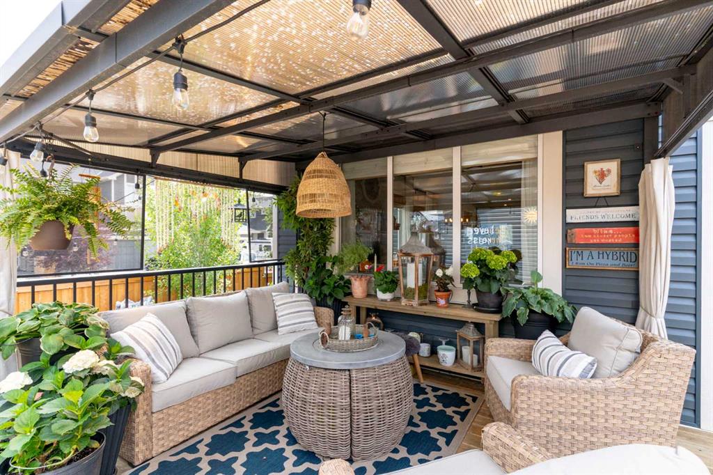 Outside, the fully fenced yard is designed for easy enjoyment. Low maintenance artificial turf eliminates mowing, while an irrigation system services the flowerbeds and planters. Landscape lighting enhances evening ambiance, and a circular gas fire pit creates a natural gathering space. The detached 22′ × 22′ garage features high ceilings, two large windows, 30-amp 120/240-volt service, a 240-volt heater, overhead storage racks, and a built-in workbench, making it ideal for vehicles, hobbies, and storage. The additional gravel parking pad offers excellent flexibility for extra vehicles, a trailer, or RV, with a gate that opens to allow for longer RV parking.