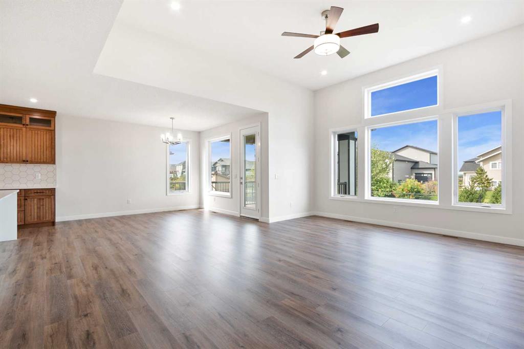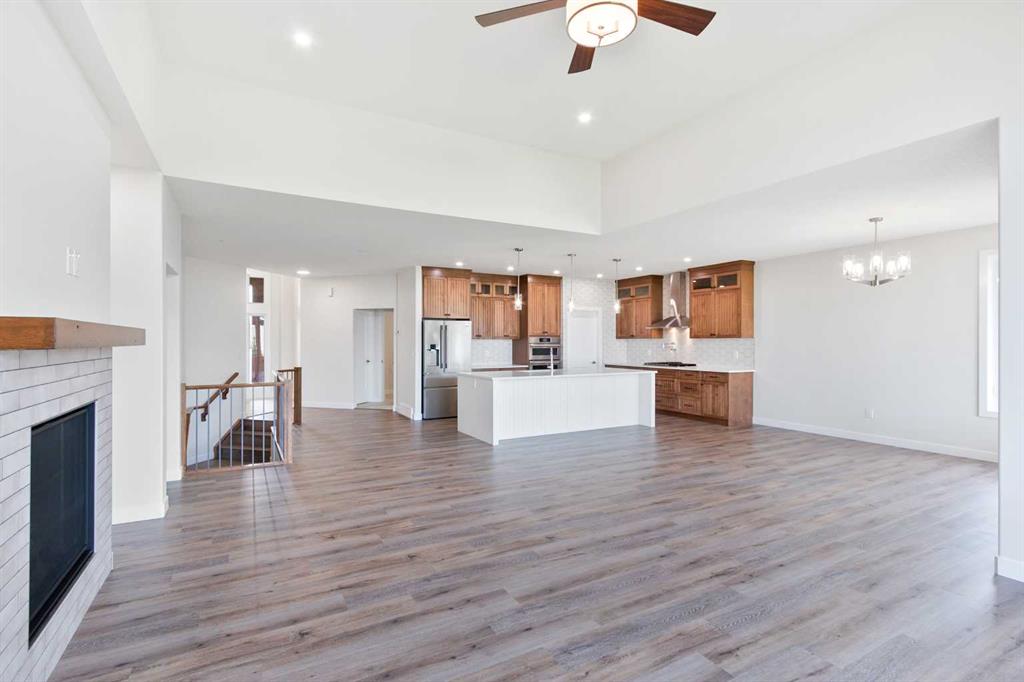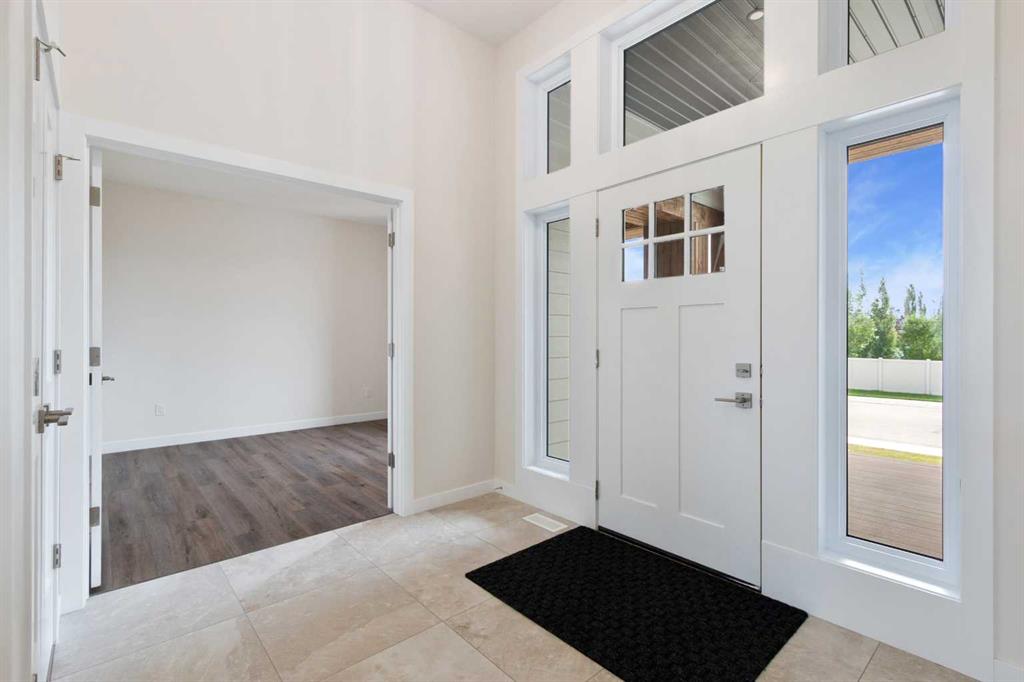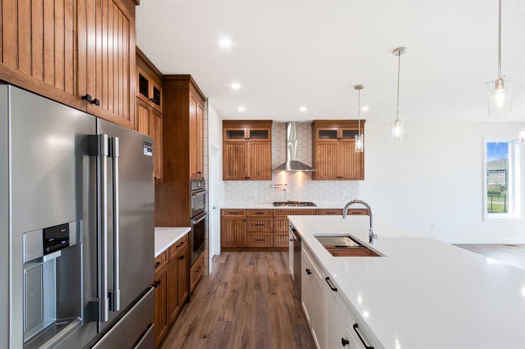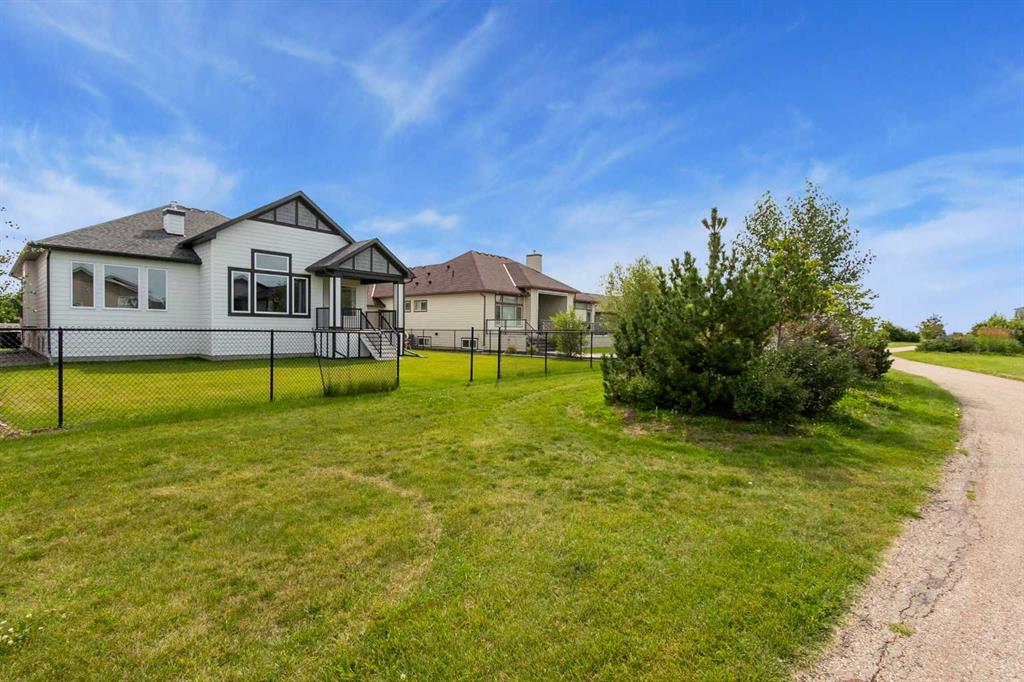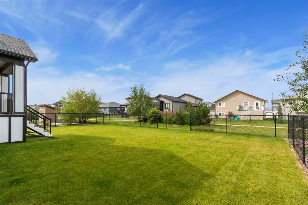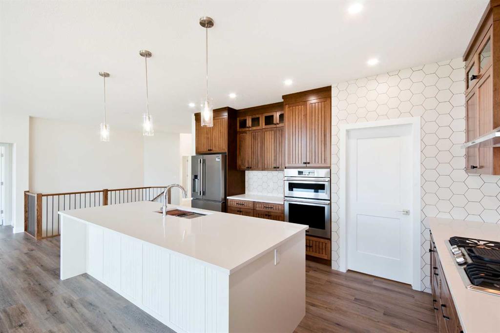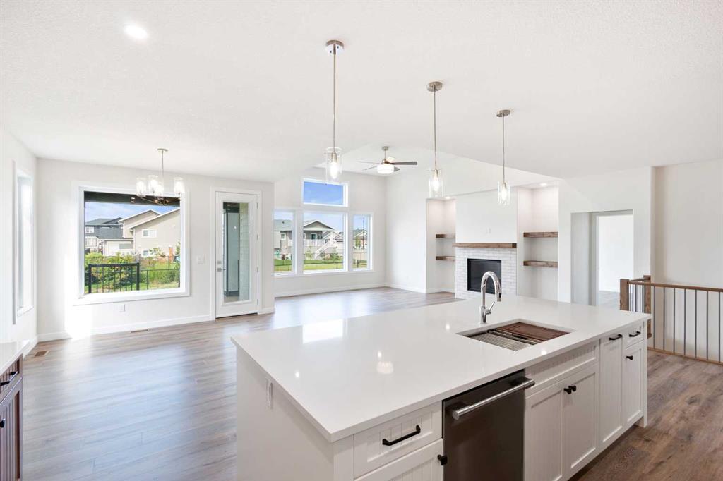Welcome to this beautifully crafted new-build modern bungalow, perfectly situated in the sought-after Highlands subdivision. Featuring 5 spacious bedrooms and 3 luxurious bathrooms, this home offers the perfect blend of style, comfort, and functionality. Step inside to an impressive open-concept layout, where the heart of the home includes a large living room with a cozy gas fireplace, a generous dining area, and a chef’s dream kitchen complete with quartz countertops, eye-catching tile accents, and a butler’s pantry for added convenience. The main floor features a spacious primary suite with a 5-piece ensuite and a walk-in closet. A second bedroom, large laundry room, and access to the triple attached heated garage complete this level. Downstairs, you’ll find three additional well-sized bedrooms, a 4-piece bath, a large recreation room, and a wet bar, making this the perfect space for entertaining or relaxing. There’s also a massive utility room offering plenty of storage. Enjoy outdoor living with a low-maintenance covered front porch, fully landscaped front and back yards, and a covered rear deck that backs on to a open area with a walking path ideal for entertaining or enjoying your morning coffee. This home truly checks all the boxes for modern living in a prime location. Don’t miss your chance to call it home!