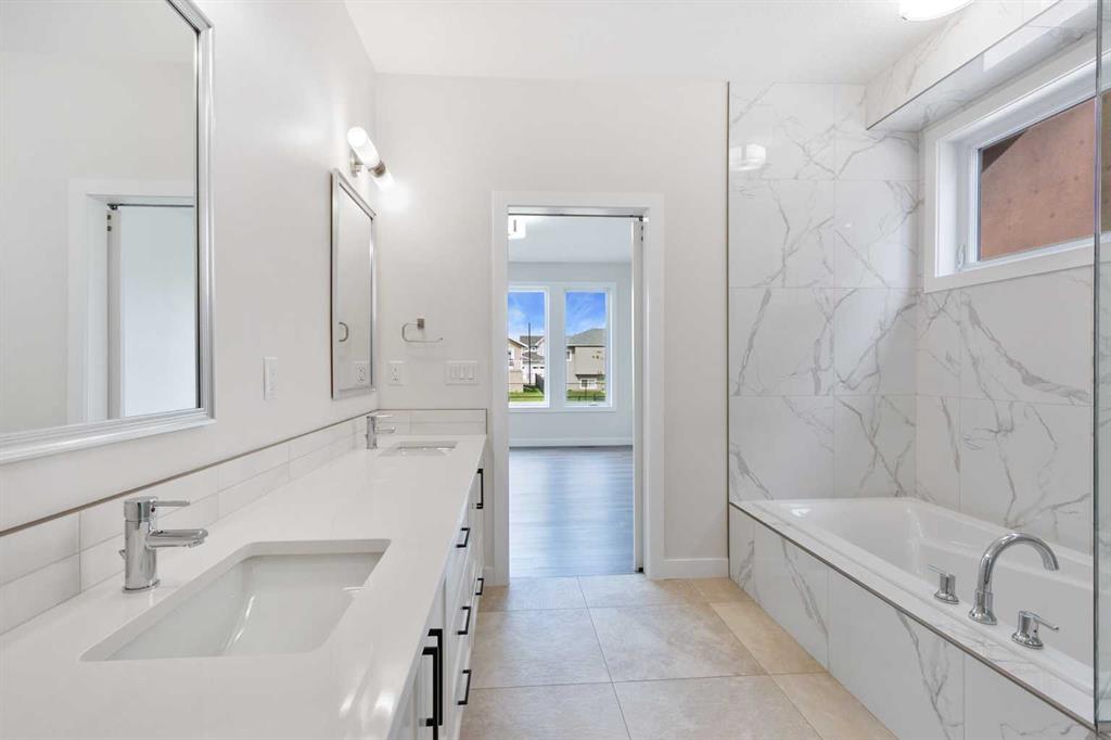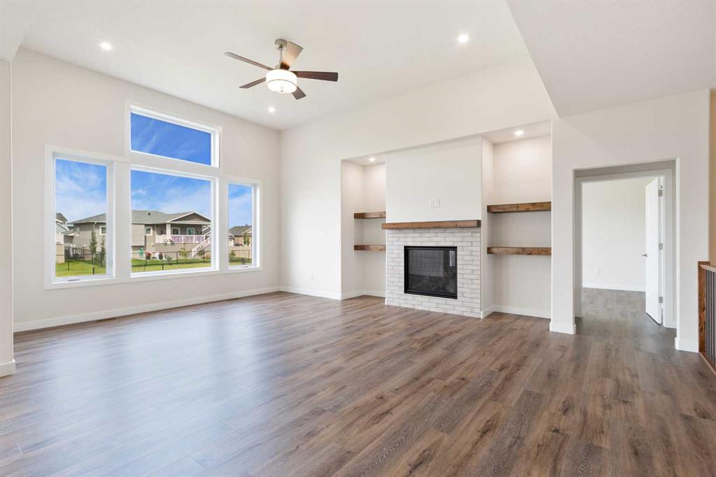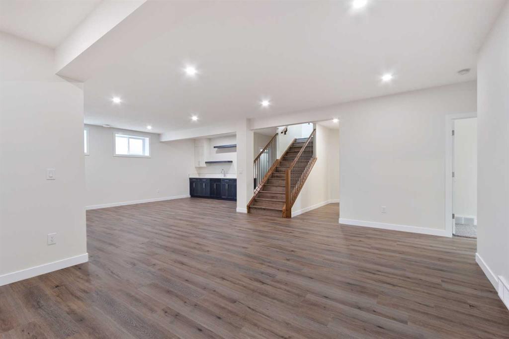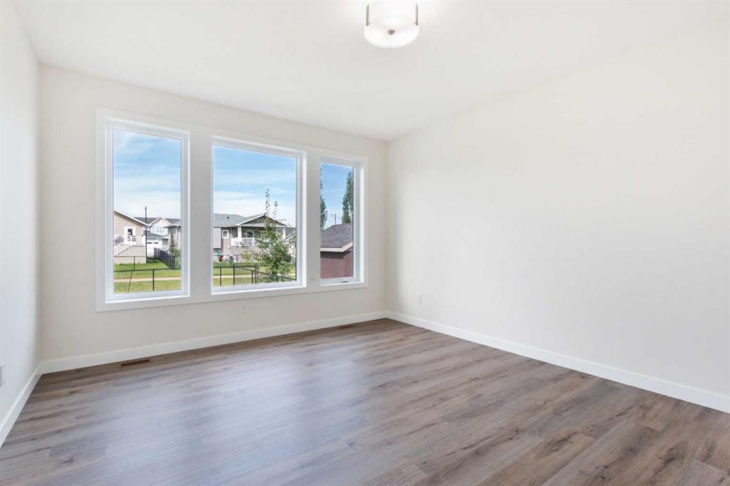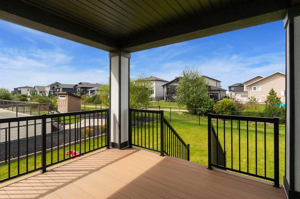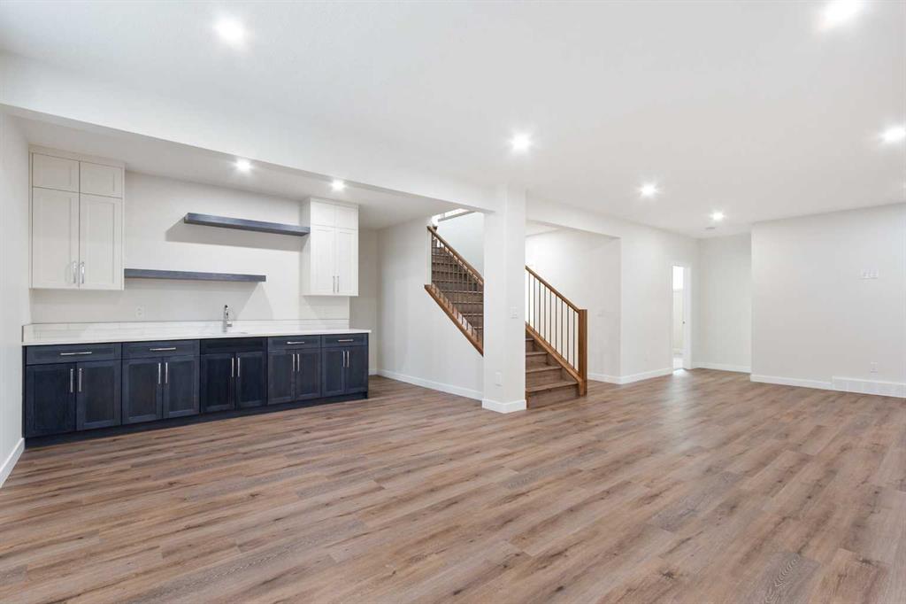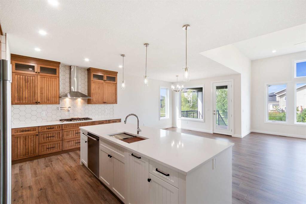 Welcome to this beautifully crafted new-build modern bungalow, perfectly situated in the sought-after Highlands subdivision. Featuring 5 spacious bedrooms and 3 luxurious bathrooms, this home offers the perfect blend of style, comfort, and functionality. Step inside to an impressive open-concept layout, where the heart of the home includes a large living room with a cozy gas fireplace, a generous dining area, and a chef’s dream kitchen complete with quartz countertops, eye-catching tile accents, and a butler’s pantry for added convenience. The main floor features a spacious primary suite with a 5-piece ensuite and a walk-in closet. A second bedroom, large laundry room, and access to the triple attached heated garage complete this level. Downstairs, you’ll find three additional well-sized bedrooms, a 4-piece bath, a large recreation room, and a wet bar, making this the perfect space for entertaining or relaxing. There’s also a massive utility room offering plenty of storage. Enjoy outdoor living with a low-maintenance covered front porch, fully landscaped front and back yards, and a covered rear deck that backs on to a open area with a walking path ideal for entertaining or enjoying your morning coffee. This home truly checks all the boxes for modern living in a prime location. Don’t miss your chance to call it home!