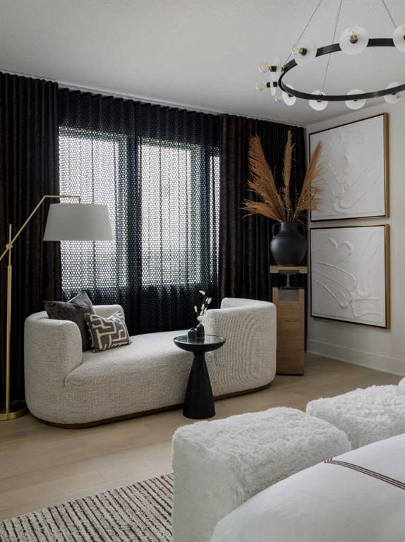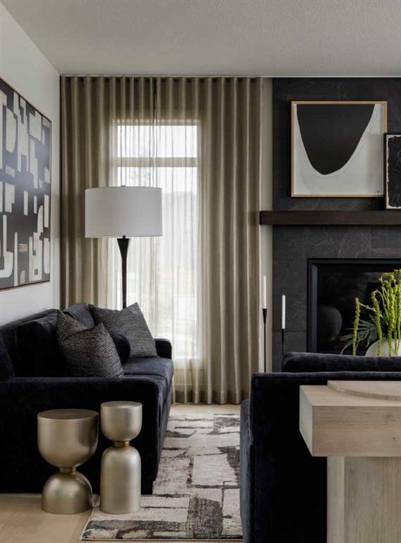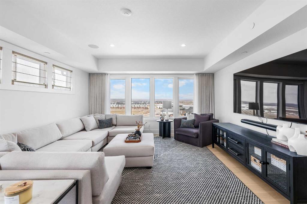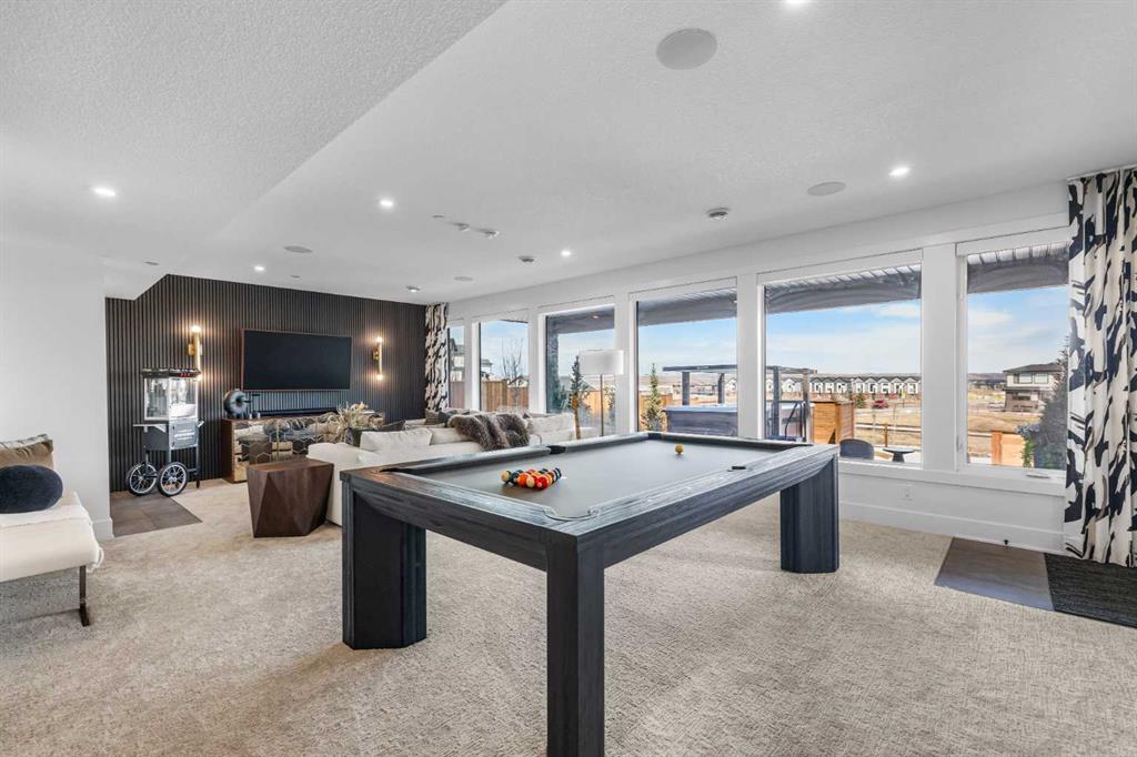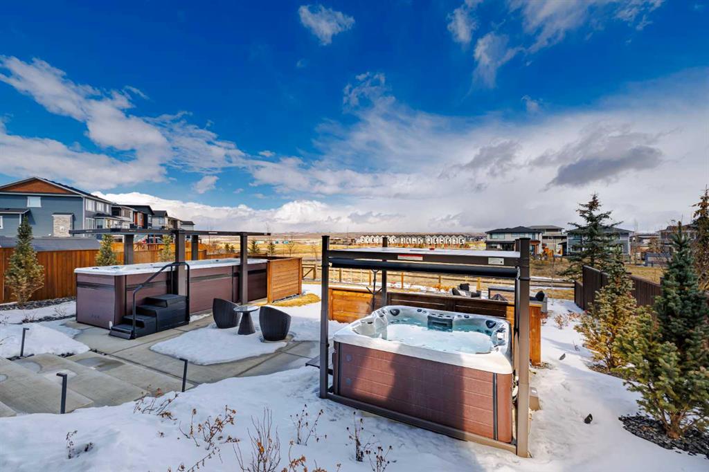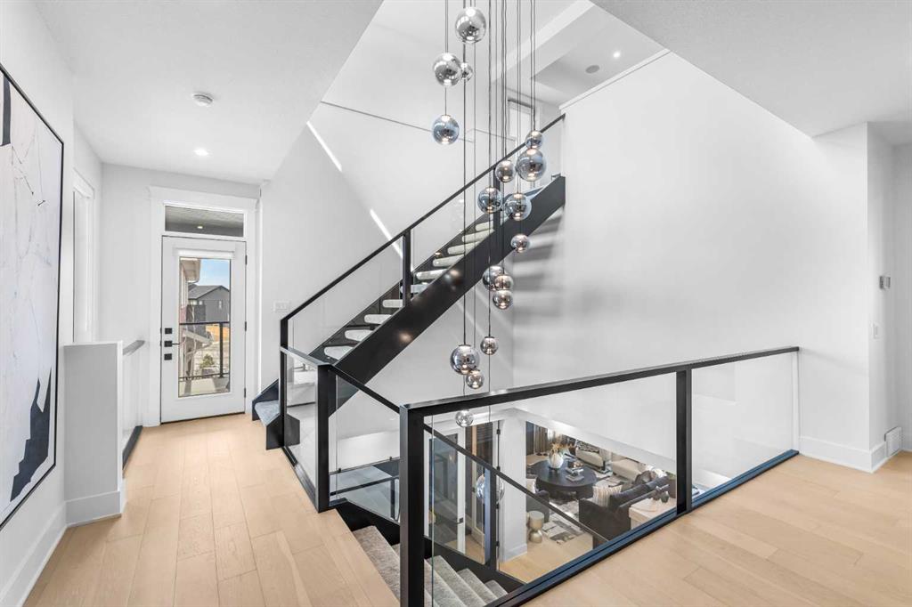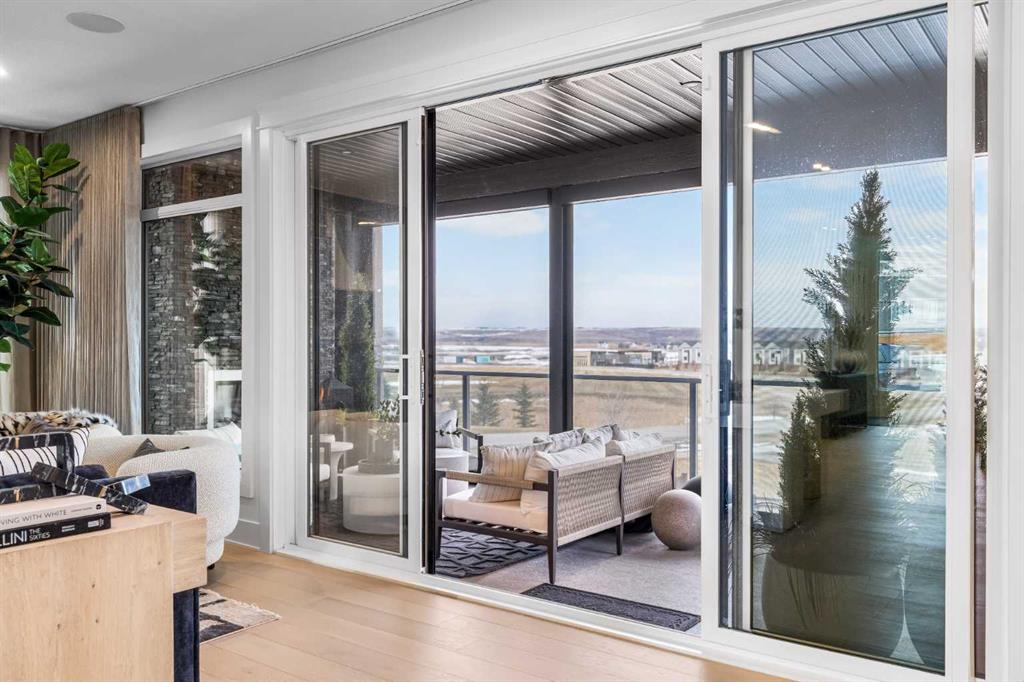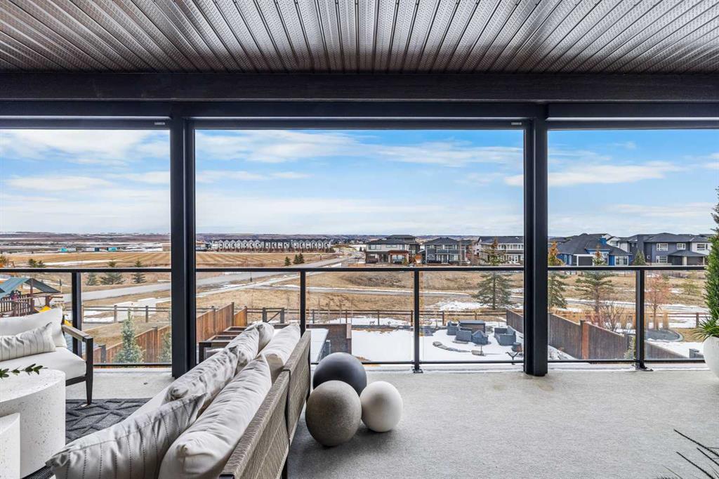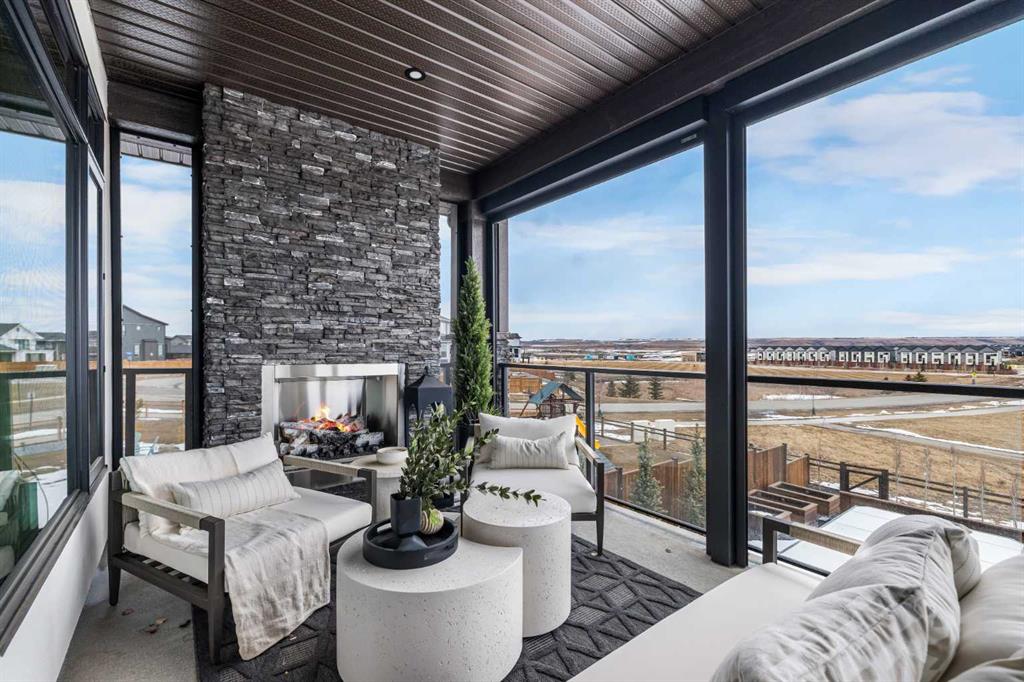 Step into this extraordinary home in the community of Harmony that delivers a truly grand sense of arrival and an unmatched level of luxury at every turn. From the moment you enter, you’re greeted by a breathtaking open-to-below design and stunning open riser staircases that extend all the way to the third floor. A private office sits just off the front entrance, perfect for working in style, while the impressive quad garage—complete with polyaspartic coated flooring and a dedicated dog wash. For added peace of mind, the home is equipped with a built-in security system featuring outdoor cameras. The heart of the home is a chef-inspired kitchen designed to impress. Outfitted with a Sub-Zero fridge and Wolf appliances, including a gas range, it features a massive quartzite-topped island with breakfast bar seating, ceiling-height cabinetry, and a thoughtfully designed walk-in pantry with open shelving. Adjacent to the pantry, a beautifully appointed coffee and bar area with its own sink and bar fridge elevates everyday living and entertaining alike. The eating nook flows seamlessly off the kitchen, opening to both the living room and the back deck, creating a perfect indoor-outdoor connection. The living room is nothing short of spectacular, with panoramic windows that flood the space with natural light, designer Kohler light fixtures, a gas fireplace, and direct access to the expansive back deck. Enhancing the ambiance and entertainment experience is a built-in Sonos sound system with speakers thoughtfully integrated throughout the home. The indoor-outdoor living experience is unmatched with a fully retractable screened-in porch and exterior fireplace. Upstairs has two spacious bedrooms each feature walk-in closets, one with its own 4pc ensuite with the second having convenient access to a 4-piece bathroom across the hall. A second-floor balcony provides an additional outdoor retreat. The primary suite is a true private oasis, complete with its own full-sized living area, a serene bedroom space, and a luxurious 5-piece ensuite featuring a soaking tub, dual vanities, a stand-alone water closet, and a private water closet. A well-equipped laundry room with sink and ample cabinetry. The third floor is dedicated to entertainment, a powder room and access to a generous deck—perfect for hosting or unwinding under the open sky while enjoying mountain views. The fully developed basement continues to impress with a large recreation area, wet bar, and beverage fridge, along with a spacious bedroom and a 3-piece bathroom with a stand-alone shower. Step outside to your backyard retreat featuring a swim spa and hot tub, backing onto a walking path and green space. Inside, a dedicated infrared-traditional hybrid sauna and workout space create an unparalleled wellness area, offering a lifestyle of comfort, relaxation, and luxury. This is more than a home—it’s a statement of elevated living in an incredibly desirable setting in the heart of Harmony!