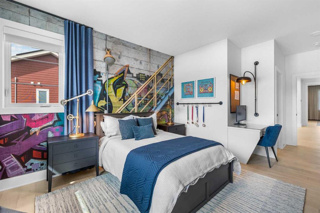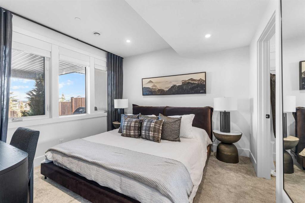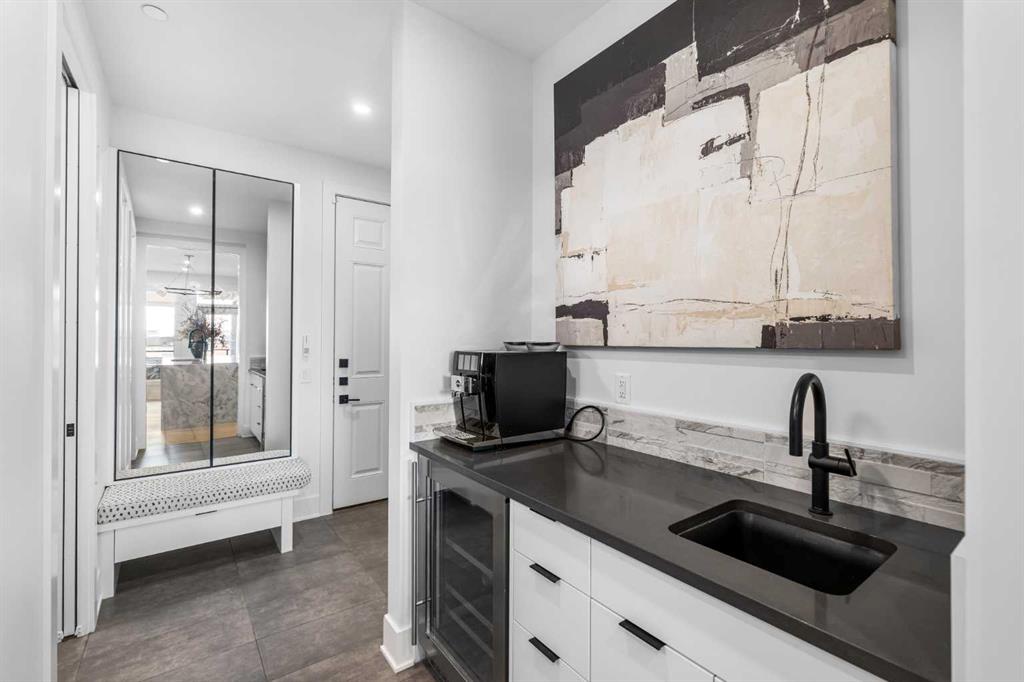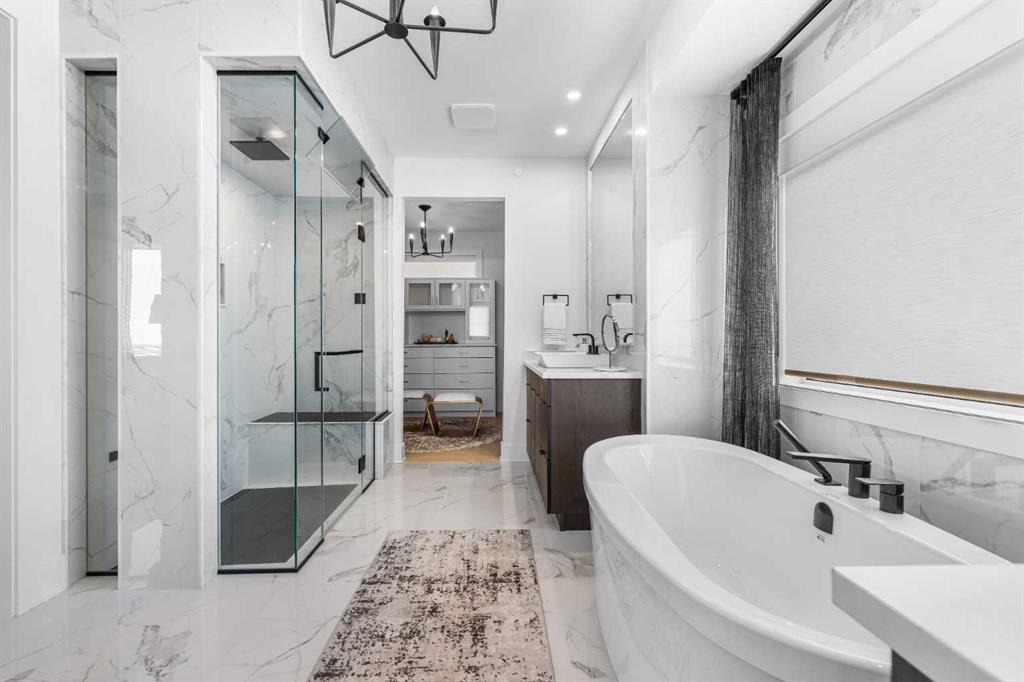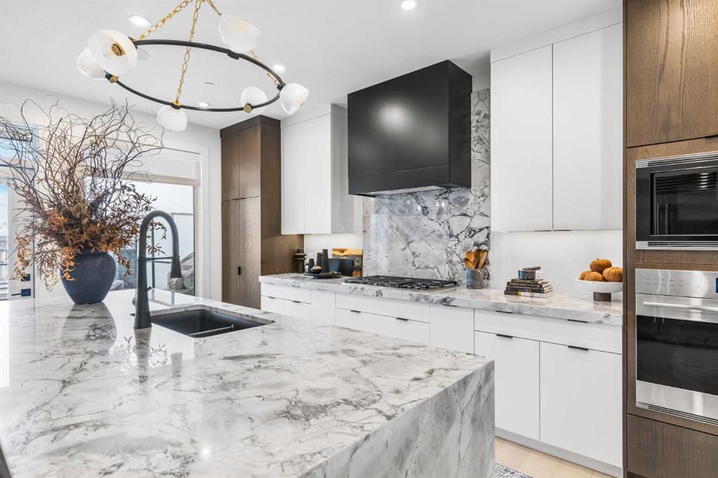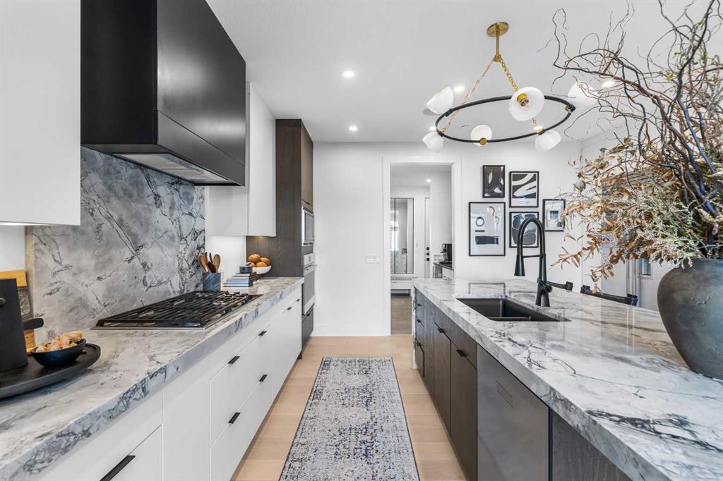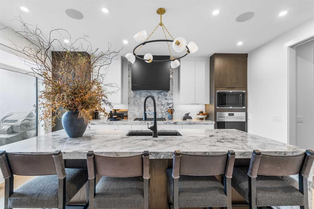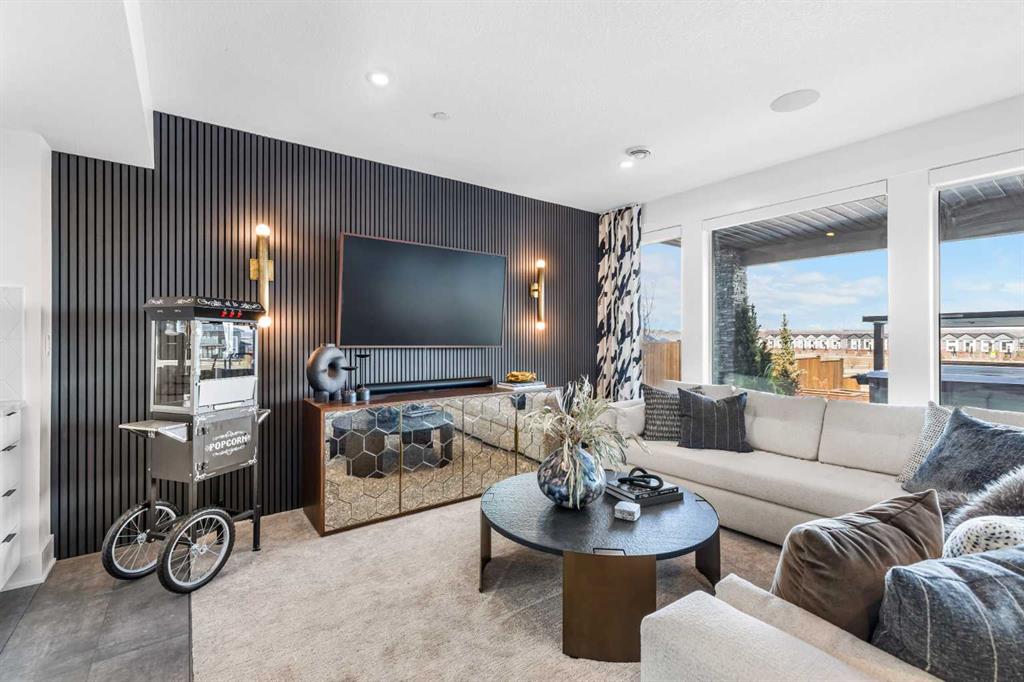 Step into this extraordinary home in the community of Harmony that delivers a truly grand sense of arrival and an unmatched level of luxury at every turn. From the moment you enter, you’re greeted by a breathtaking open-to-below design and stunning open riser staircases that extend all the way to the third floor. A private office sits just off the front entrance, perfect for working in style, while the impressive quad garage—complete with polyaspartic coated flooring and a dedicated dog wash. For added peace of mind, the home is equipped with a built-in security system featuring outdoor cameras. The heart of the home is a chef-inspired kitchen designed to impress. Outfitted with a Sub-Zero fridge and Wolf appliances, including a gas range, it features a massive quartzite-topped island with breakfast bar seating, ceiling-height cabinetry, and a thoughtfully designed walk-in pantry with open shelving. Adjacent to the pantry, a beautifully appointed coffee and bar area with its own sink and bar fridge elevates everyday living and entertaining alike. The eating nook flows seamlessly off the kitchen, opening to both the living room and the back deck, creating a perfect indoor-outdoor connection. The living room is nothing short of spectacular, with panoramic windows that flood the space with natural light, designer Kohler light fixtures, a gas fireplace, and direct access to the expansive back deck. Enhancing the ambiance and entertainment experience is a built-in Sonos sound system with speakers thoughtfully integrated throughout the home. The indoor-outdoor living experience is unmatched with a fully retractable screened-in porch and exterior fireplace. Upstairs has two spacious bedrooms each feature walk-in closets, one with its own 4pc ensuite with the second having convenient access to a 4-piece bathroom across the hall. A second-floor balcony provides an additional outdoor retreat. The primary suite is a true private oasis, complete with its own full-sized living area, a serene bedroom space, and a luxurious 5-piece ensuite featuring a soaking tub, dual vanities, a stand-alone water closet, and a private water closet. A well-equipped laundry room with sink and ample cabinetry. The third floor is dedicated to entertainment, a powder room and access to a generous deck—perfect for hosting or unwinding under the open sky while enjoying mountain views. The fully developed basement continues to impress with a large recreation area, wet bar, and beverage fridge, along with a spacious bedroom and a 3-piece bathroom with a stand-alone shower. Step outside to your backyard retreat featuring a swim spa and hot tub, backing onto a walking path and green space. Inside, a dedicated infrared-traditional hybrid sauna and workout space create an unparalleled wellness area, offering a lifestyle of comfort, relaxation, and luxury. This is more than a home—it’s a statement of elevated living in an incredibly desirable setting in the heart of Harmony!