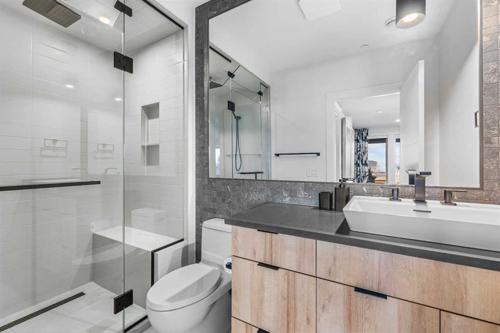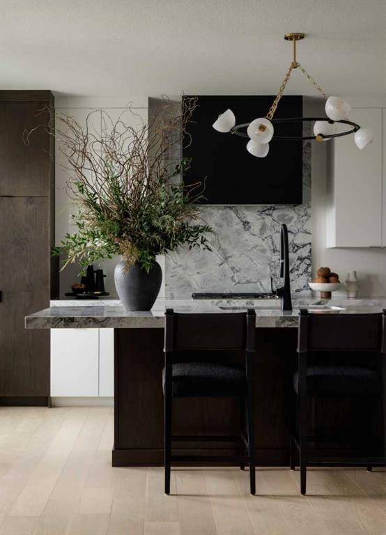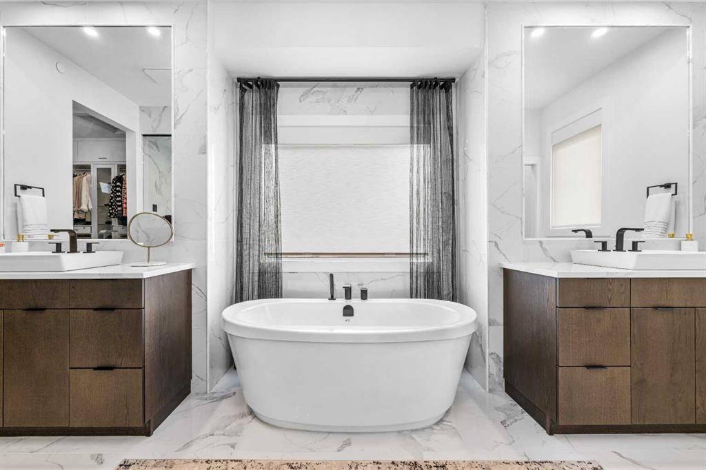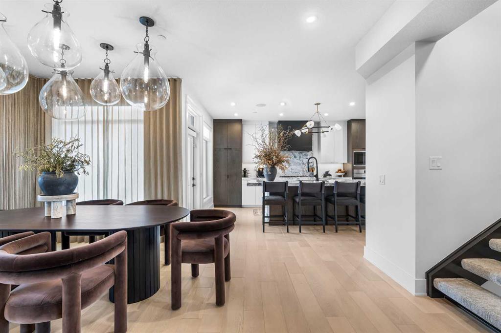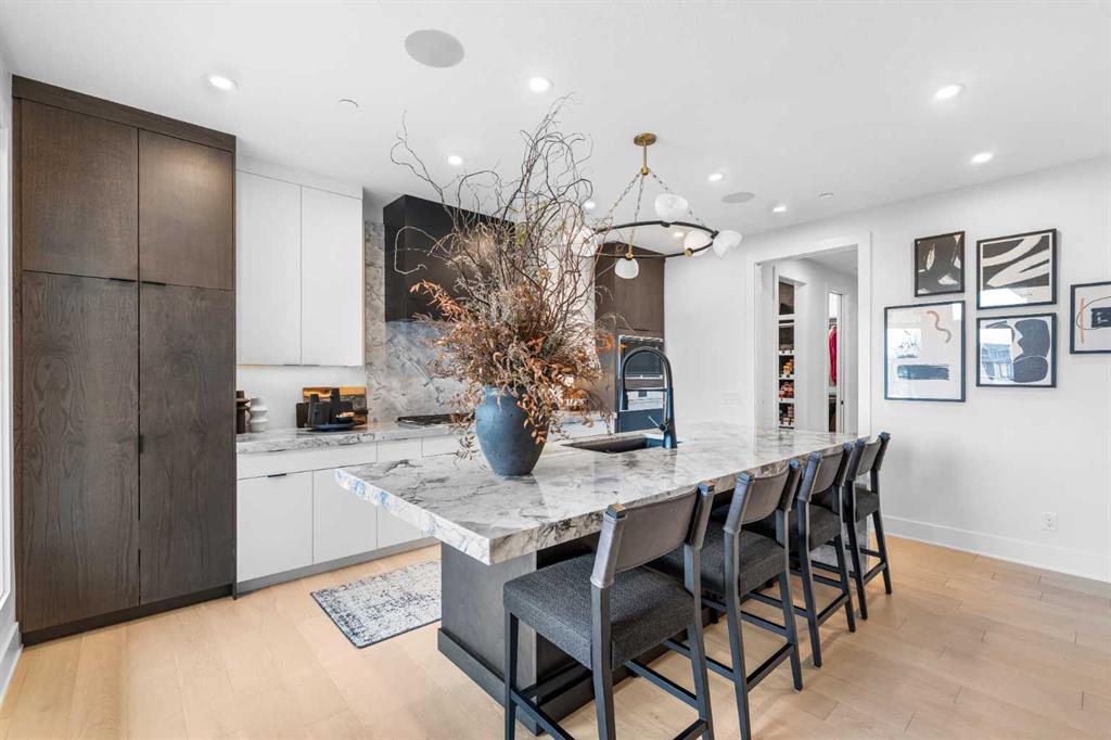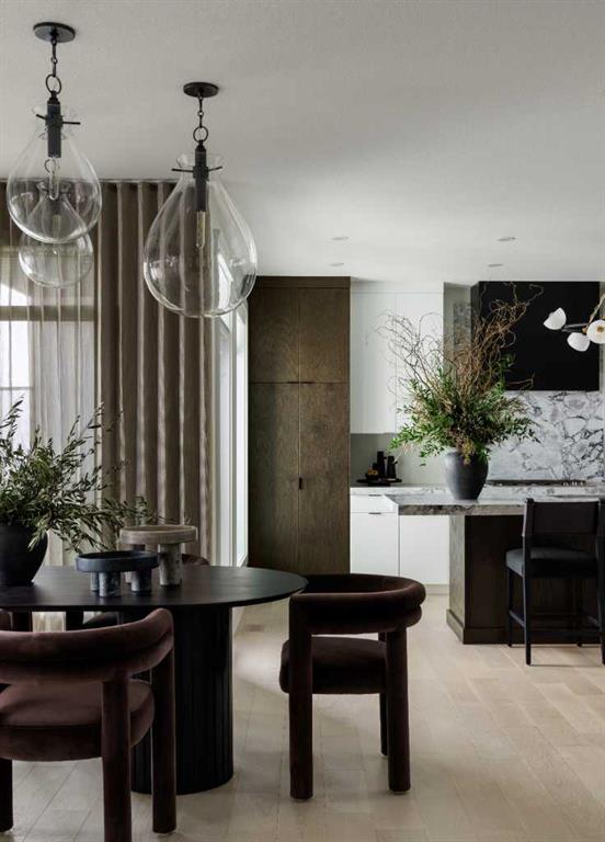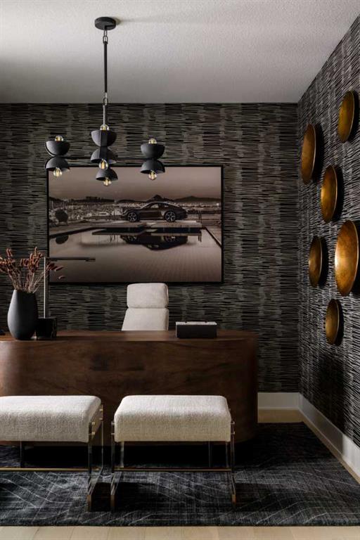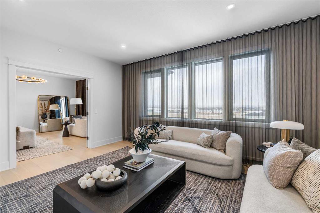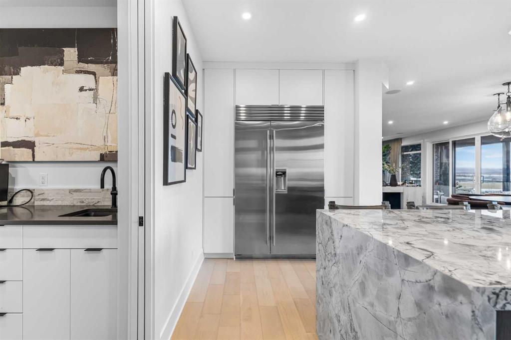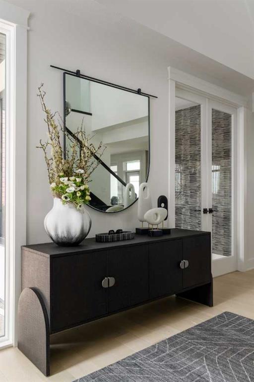 Step into this extraordinary home in the community of Harmony that delivers a truly grand sense of arrival and an unmatched level of luxury at every turn. From the moment you enter, you’re greeted by a breathtaking open-to-below design and stunning open riser staircases that extend all the way to the third floor. A private office sits just off the front entrance, perfect for working in style, while the impressive quad garage—complete with polyaspartic coated flooring and a dedicated dog wash. For added peace of mind, the home is equipped with a built-in security system featuring outdoor cameras. The heart of the home is a chef-inspired kitchen designed to impress. Outfitted with a Sub-Zero fridge and Wolf appliances, including a gas range, it features a massive quartzite-topped island with breakfast bar seating, ceiling-height cabinetry, and a thoughtfully designed walk-in pantry with open shelving. Adjacent to the pantry, a beautifully appointed coffee and bar area with its own sink and bar fridge elevates everyday living and entertaining alike. The eating nook flows seamlessly off the kitchen, opening to both the living room and the back deck, creating a perfect indoor-outdoor connection. The living room is nothing short of spectacular, with panoramic windows that flood the space with natural light, designer Kohler light fixtures, a gas fireplace, and direct access to the expansive back deck. Enhancing the ambiance and entertainment experience is a built-in Sonos sound system with speakers thoughtfully integrated throughout the home. The indoor-outdoor living experience is unmatched with a fully retractable screened-in porch and exterior fireplace. Upstairs has two spacious bedrooms each feature walk-in closets, one with its own 4pc ensuite with the second having convenient access to a 4-piece bathroom across the hall. A second-floor balcony provides an additional outdoor retreat. The primary suite is a true private oasis, complete with its own full-sized living area, a serene bedroom space, and a luxurious 5-piece ensuite featuring a soaking tub, dual vanities, a stand-alone water closet, and a private water closet. A well-equipped laundry room with sink and ample cabinetry. The third floor is dedicated to entertainment, a powder room and access to a generous deck—perfect for hosting or unwinding under the open sky while enjoying mountain views. The fully developed basement continues to impress with a large recreation area, wet bar, and beverage fridge, along with a spacious bedroom and a 3-piece bathroom with a stand-alone shower. Step outside to your backyard retreat featuring a swim spa and hot tub, backing onto a walking path and green space. Inside, a dedicated infrared-traditional hybrid sauna and workout space create an unparalleled wellness area, offering a lifestyle of comfort, relaxation, and luxury. This is more than a home—it’s a statement of elevated living in an incredibly desirable setting in the heart of Harmony!