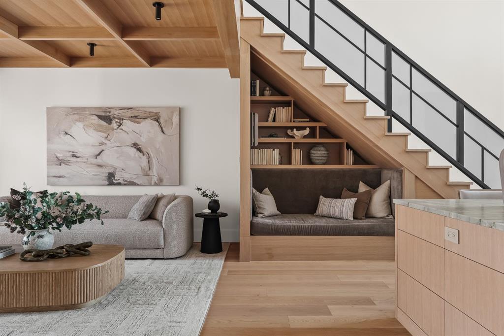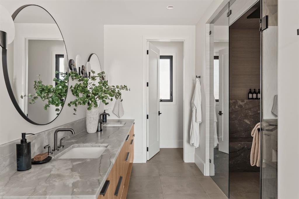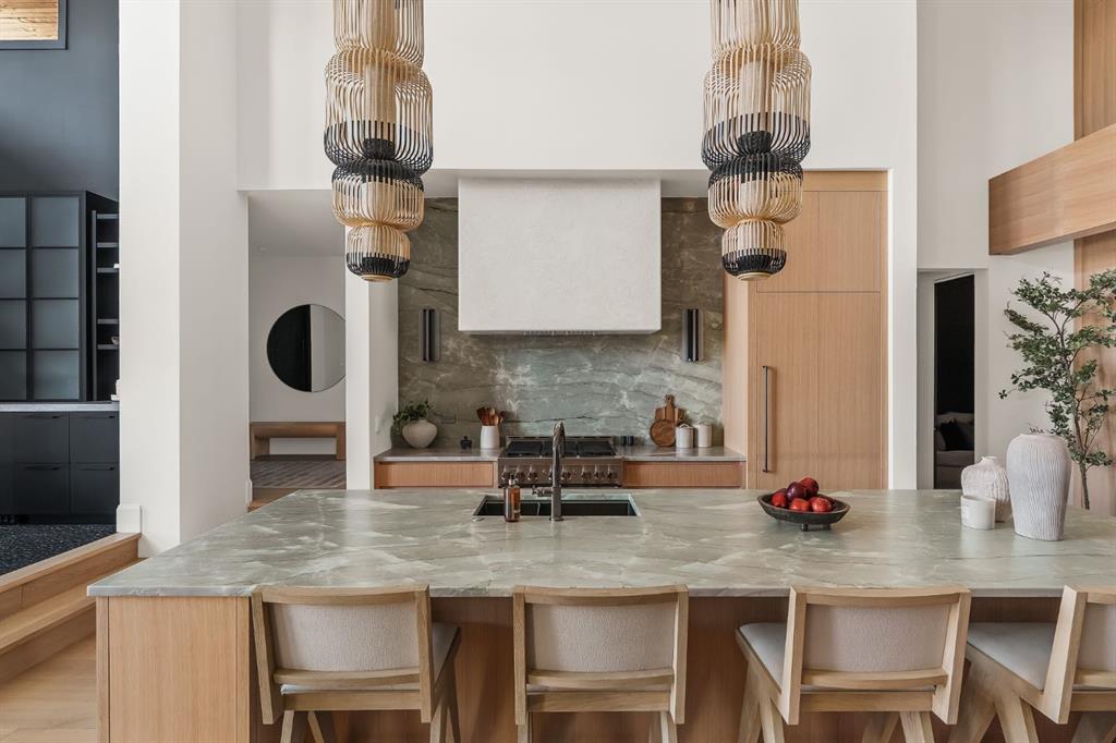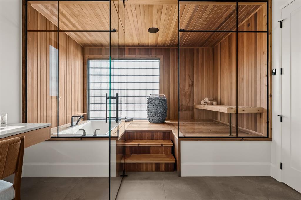 Nestled on one of the most coveted crescents in Elboya, 6 Stanley Crescent SW is a masterfully crafted custom bungalow by Trickle Creek Custom Homes—a builder synonymous with uncompromising quality and timeless design. This extraordinary residence redefines luxury through thoughtful architecture, exceptional craftsmanship, and a rare focus on wellness and lifestyle. Offering over 4,500 square feet of meticulously developed living space, every detail has been carefully curated to deliver a truly elevated living experience. From the moment you arrive, the striking Japandi-inspired exterior sets the tone—blending clean architectural lines with warm natural materials including Newtech siding, Hardie Board, and limestone accents. A large front custom pivot door welcomes you into a refined interior where custom millwork, designer lighting, and seamless automation create a cohesive and sophisticated atmosphere. The main level offers over 2,600 square feet of exceptional single-level living. A huge amount of upgraded bespoke millwork is evident throughout, from integrated wall paneling to a thoughtfully designed kitchen reading nook and much more. At the heart of the home, a spectacular Town & Country gas fireplace with herringbone detailing anchors the living space—perfectly balancing comfort and statement design. The primary retreat is a private sanctuary, featuring a spa-inspired wellness experience rarely seen in residential homes. Enjoy a custom sauna and steam shower, complemented by a luxurious plunge bath—creating a daily escape reminiscent of a five-star resort. A unique upper loft provides a versatile space for a home office, studio, or quiet retreat, while the huge fully developed lower level offers an entirely self-contained living environment. With three spacious bedrooms—each complete with their own bathroom and walk-in closets. This level is ideal for extended family, guests, or multi-generational living. The outdoor setting is equally impressive. The expansive backyard has been professionally landscaped into a private oasis, complete with a sunken fire pit lounge, covered patio with heaters and retractable screens, and a sport court—perfect for both entertaining and everyday enjoyment. At the rear, a triple detached garage is paired with a fully developed loft space above, currently designed as a private gym, adding yet another layer of flexibility and function. Additional features include luxury custom window coverings, an elevated lighting package, and full smart home integration with Lutron automation for effortless control of lighting and ambiance. This is a rare and distinguished offering—where the craftsmanship of Trickle Creek Custom Homes meets inspired design in one of Calgary’s most prestigious inner-city communities. Want a turnkey experience? Immediate possession available and all furnishings are negotiable. Don’t miss this one!