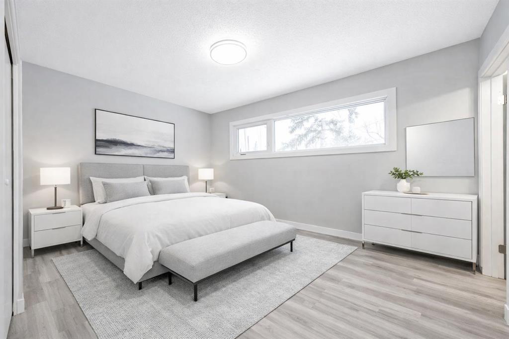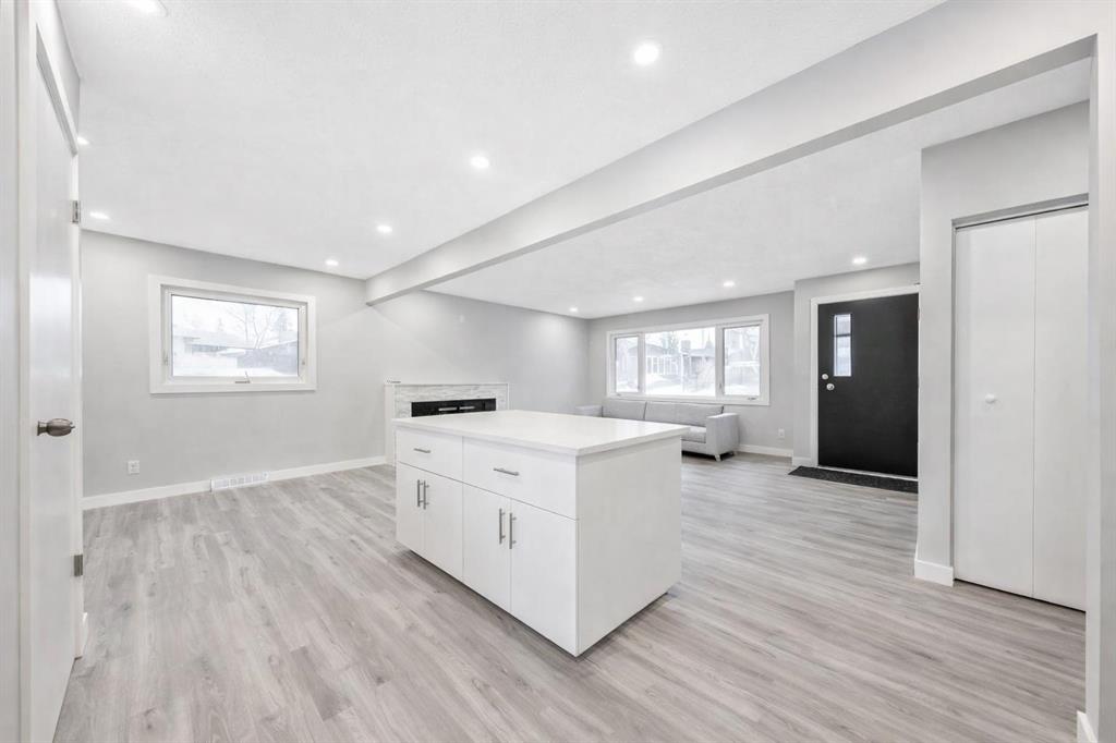 No expense was spared during the renovation, with substantial improvements made throughout the home. Exterior upgrades include new fencing, updated windows, and a brand-new parking pad. Interior upgrades are equally comprehensive and include a newer high efficiency furnace, luxury plank flooring throughout, fully updated kitchen cabinetry and countertops, modernized bathrooms, two electric fireplaces, new ceilings, fresh paint, and new contemporary lighting fixtures.
