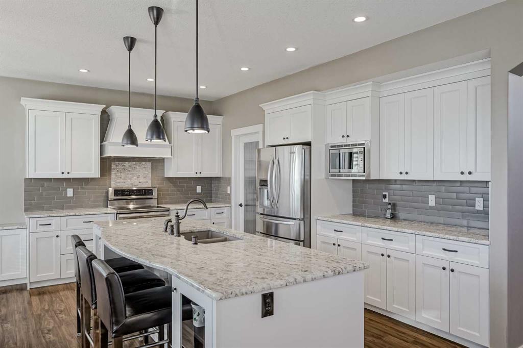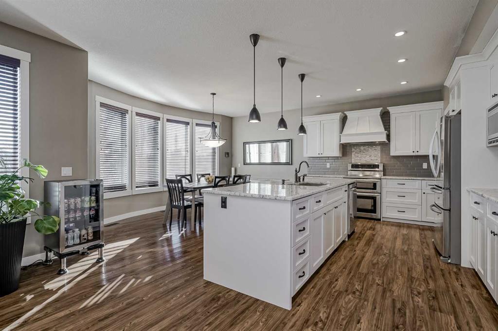 OPEN HOUSE Saturday Jan 17th Noon-2pm. Welcome to where quality craftsmanship and thoughtful design converge. Luxury living awaits in this immaculate DreamWest Custom Built residence, which exudes pride of ownership and feels like new, offering an elegant and comfortable lifestyle in a highly desirable Okotoks neighborhood. The fully finished, heated triple-car garage (21’5″ x 29′) is a true enthusiast’s dream, featuring new garage doors, premium floor covering, ample storage racks, and wall organizers—the perfect space for hobbies and vehicles. New roof in 2023 and new eavestroughs 2025. Just inside the home a large laundry and mudroom with custom lockers, offering both style and function. The home is equipped with a state-of-the-art three-zone furnace and central air conditioning system, allowing for precise climate control on each floor. The main level offers a perfect blend of style and functionality, ideal for comfortable living and entertaining. The open-concept floor plan features a cozy gas fireplace in the living room, perfect for gathering with family and friends. A versatile office/flex room is conveniently located near the entry, and the front entrance boasts an open-to-above design, creating a grand and inviting first impression. The kitchen is a chef’s dream, featuring elegantly refaced cabinetry and an abundance of additional storage in the dining area. Enjoy all stainless-steel appliances featuring French door refrigerator with water and ice dispenser, double convection oven and a dedicated hood vent with custom millwork. Adjacent discover a convenient walkthrough pantry provides extra space for all your culinary needs. Step outside onto the back deck to enjoy amazing views backing onto serene pathways, complete with a natural gas line ready for your BBQ. Upstairs, Your private primary retreat with a stunning five-piece ensuite, including a standalone soaker tub, double vanity, separate shower, and a massive walk-in closet is a perfect escape from the day. A second full bathroom accommodates two additional oversized bedrooms on the upper level, perfect for a growing family. The sunken bonus room provides an additional spacious gathering area to relax and unwind where you can enjoy captivating mountain views. The lower walkout level has an additional bedroom, full bathroom, and entertaining area perfect for a workout space or theatre room. Step outside and your low-maintenance backyard is a private sanctuary, secluded by mature trees for ultimate summer privacy. The fully landscaped yard has a concrete pad and stone pathway and sitting area surrounding a built-in fire pit, perfect for summer nights or winter fun. A walking path directly behind the property ensures extra space and separation from other homes, while the friendly neighborhood and fantastic neighbors complete this exceptional living experience. Sheep River Heights is an exclusive neighborhood in Okotoks with easy access to schools, parks, and a many shopping and lifestyle amenities.