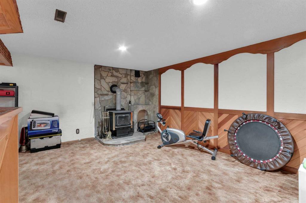 A wonderful combination of large functional indoor living areas, an airy 12’7” x 8’9” glass 3-season room and multiple private outdoor living spaces. Very livable and perfect for home business or DIY projects! 23’3” x 9’9” self-contained insulated drywalled workshop in the attached garage with 3 sinks, 220 wiring and exhaust fan. Main level has a big bright kitchen (newer window), generous size living and dining areas with a classic brick wood burning fireplace, 3 bedrooms, 4-piece bath with jetted tub, standalone shower & pocket door into the primary bedroom. You will love stepping out from the dining room into the bright sunroom and adjoining deck! Lower level has expansive 27 x 12’5” family room with warm wood stove, wet bar, bonus/bedroom (no window), infrared sauna, laundry room and big storage room with shelves. Outdoor living areas include a south exposure wood deck, secluded stone patio with adjustable louvre pergola and firepit. 3 large functional sheds and a peaceful grass play/pet area. The 23’3” x 20’9” attached garage is truly exceptional. Space for the truck with a wall and doors to the workshop (see floorplans). Recent updates: new vinyl plank floors, some plumbing and electrical (3 years), new washer 2026, furnace serviced & new thermostat 2026, newer front door, garage door opener. This impressive concrete tile roof home sits on an exceptionally private corner lot beside a quiet green space. An unusual opportunity in a great location! NOTE; size does not include 637 ft2 Sunroom! Click on 3d for interactive 3D floorplans.