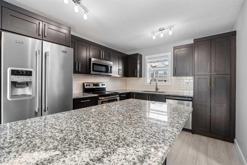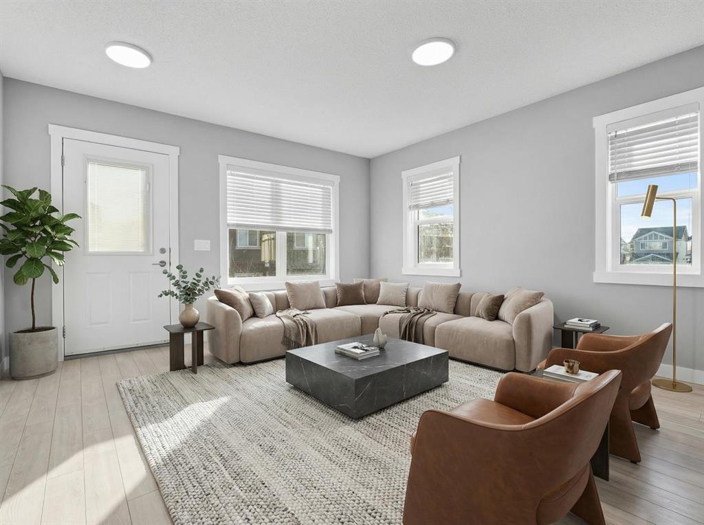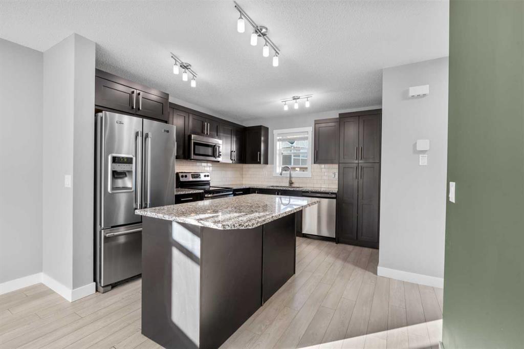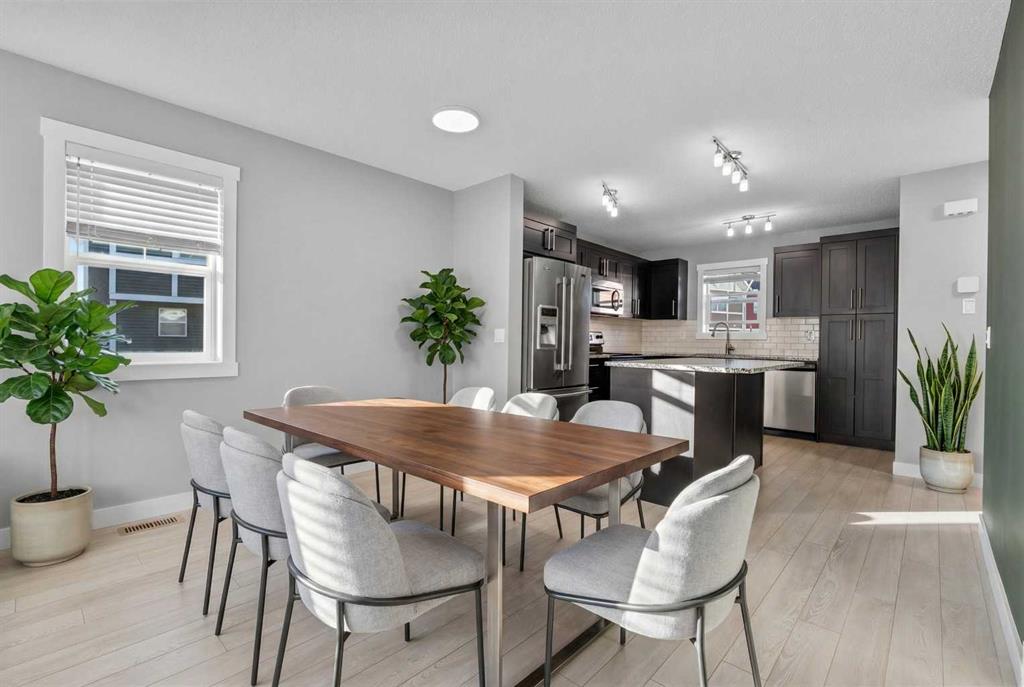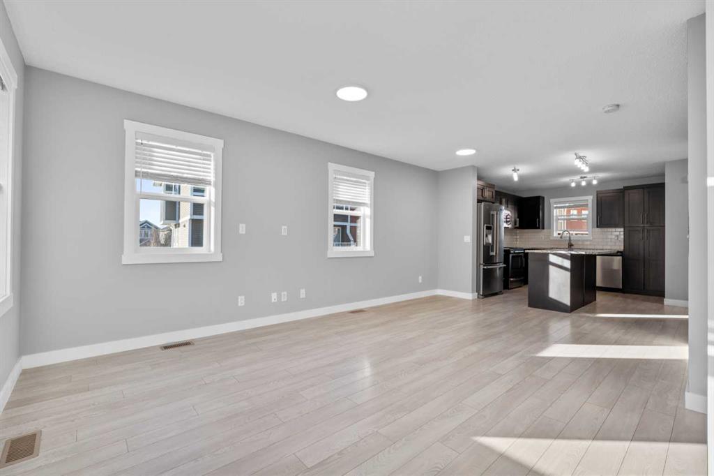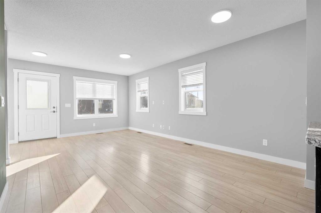 Hello Airdrie! Welcome to this immaculately maintained END UNIT is truly the one you’ve been waiting for! Freshly painted and professionally cleaned, this bright and inviting home features spectacular windows, new flooring and new light fixtures throughout the main floor. With an open-concept layout where the kitchen, dining, and family room flow seamlessly together, creating the perfect space for both everyday living and entertaining. Upstairs, you’ll find a versatile flex area ideal for a home office or play space, a spacious secondary bedroom and full bathroom, a convenient upper-floor laundry, and a generous primary retreat complete with its own ensuite. Enjoy outdoor living with both a lower patio and upper deck, plus the added bonus of an oversized single attached garage and driveway for extra parking and storage. Situated in a quiet, well-managed complex offering a community gazebo and ample visitor parking, this home is surrounded by parks, scenic pathways around the ponds, bike paths and a pump track, and is just minutes from shopping and quick access to 40th Avenue for easy commuting. This is an exceptional opportunity to own a beautifully cared-for home in one of Airdries most fantastic communities.