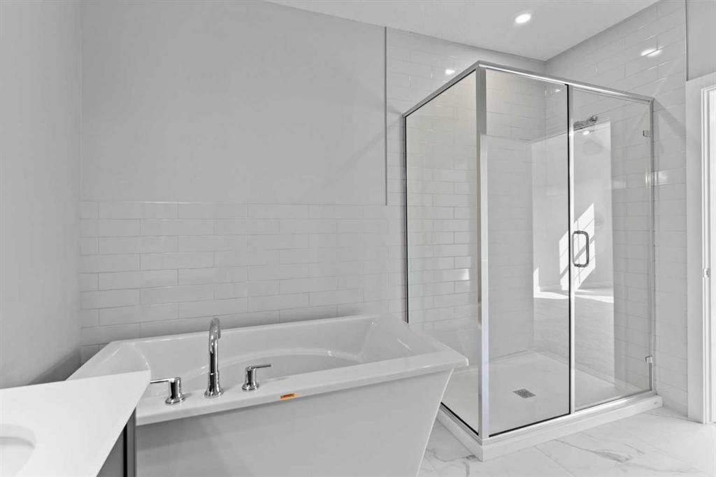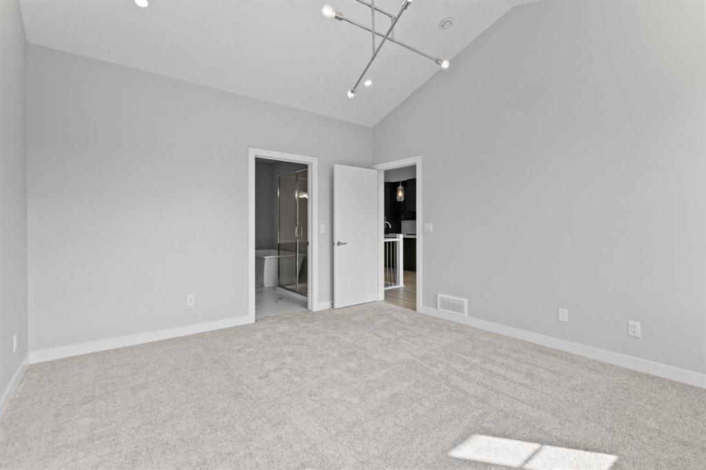 Discover this rare opportunity within Acadia Villas, an exclusive, private gated community nestled in the heart of the award-winning Cooper’s Crossing neighborhood. Designed specifically for the discerning downsizer, this community features just 40 meticulously crafted, luxury bungalows, promising both security and serenity. Step into this exceptional bungalow, spanning 1,401 square feet of thoughtfully designed open concept living. The bright and airy ambiance in living area is defined by soaring vaulted ceilings that flood the space with natural light, enhancing the sense of spaciousness and grandeur. The main floor has an ideal layout which hosts 1 bedroom plus den and two full bathrooms, complemented by a practical back hall and a dedicated laundry room for ultimate convenience. The primary bedroom is a true sanctuary, featuring its own vaulted ceiling and generous proportions. The opulent five-piece ensuite is a spa-inspired finishes complete with a walk-in shower, a decadent freestanding soaker tub, and elegant double sinks. Throughout the home, you will find premium finishes including sleek quartz countertops with undermount sinks, durable luxury vinyl plank, and sophisticated tile flooring in all bathrooms. Every detail reflects an unwavering commitment to luxury and low-maintenance living. For those envisioning even more living area, the unfinished basement presents limitless potential. This expansive space offers the opportunity to add additional bedrooms, an expanded entertainment area, or a personalized recreational space—ensuring the home can grow with your changing needs. Acadia Villas provides luxury living without compromise, offering the independence of a bungalow with the security and maintenance-free ease of a gated community.