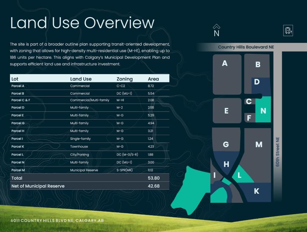 Click brochure link for more details. This property represents a rare and strategic opportunity for investors, developers, and infrastructure specialists to capitalize on Calgary’s northeast expansion. Located at 6011 Country Hills Boulevard NE, the site is positioned within one of the city’s most active development zones, surrounded by thriving master-planned communities such as Cornerstone, Skyview Ranch, and Cityscape. With subdivision plans already underway and multiple purchase contracts in place, this offering presents a compelling opportunity for a wide range of purchaser groups. Servicing and infrastructure companies will find immediate value in completing the required work to bring the site to full buildout, while developers and investors can benefit from stepping into a partially advanced development process that significantly reduces lead time and mitigates early-stage risk. Whether the goal is near-term execution or long-term strategic positioning, the property’s scale, location, and planning momentum make it a standout opportunity in Calgary’s northeast growth corridor.