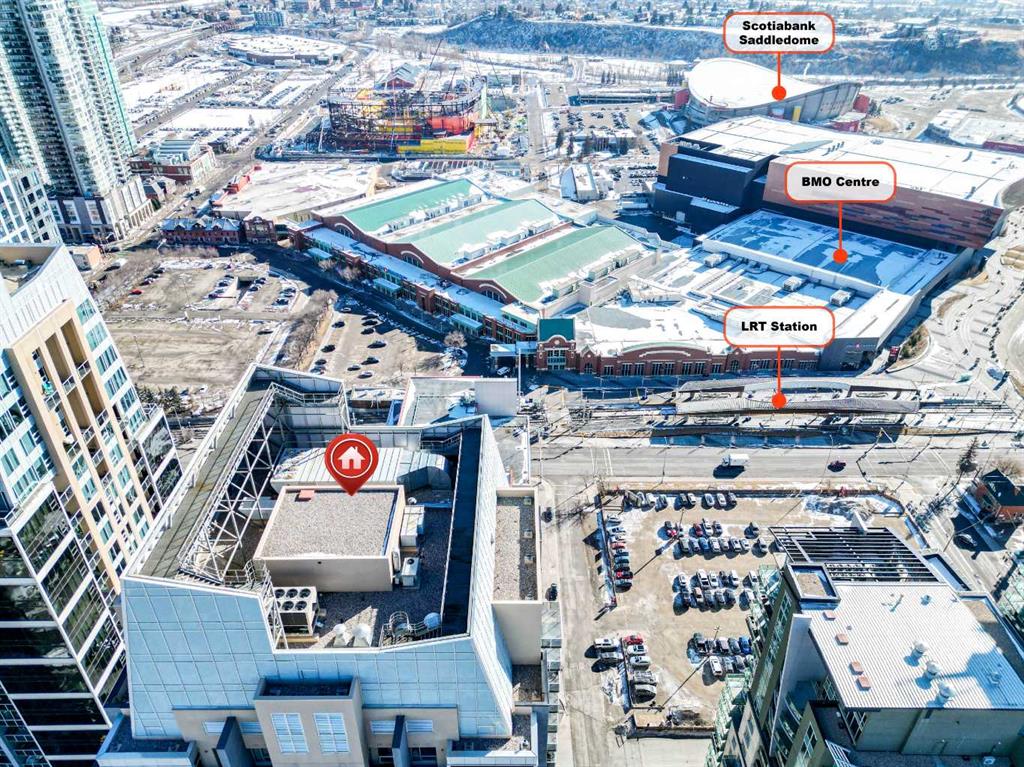 Welcome to Alura in Calgary’s vibrant Beltline! This beautifully maintained 2-bedroom, 2-bathroom condo offers an exceptional downtown lifestyle featuring fantastic views of the Scotiabank Saddledome and Stampede Park. Recently refreshed with fresh paint and brand-new carpets, the home feels bright, clean, and move-in ready. The modern kitchen is perfect for entertaining, complete with quartz countertops, stainless steel appliances, and ample cabinetry. The spacious primary bedroom features a large walk-in closet and a private 4-piece ensuite, while the thoughtful floor plan provides excellent separation between the two bedrooms. Floor-to-ceiling windows fill the space with natural light and lead to a private balcony, ideal for relaxing or barbecuing while enjoying the downtown atmosphere. Residents of Alura enjoy a wide range of premium amenities including a fully equipped fitness centre, concierge service, 24-hour security, central air cooling, and a second floor rooftop terrace. The location is unbeatable—just steps from the Scotiabank Saddledome, the soon to open “Scotia Place”, the Calgary C Train Victoria Park/Stampede Station, shopping, dining, and recreation at the MNP Community Sport Centre. This unit also includes one titled underground parking stall, an assigned storage locker, and in-suite laundry for added convenience. Don’t miss your opportunity to own in one of downtown Calgary’s most desirable buildings—book your private showing today!