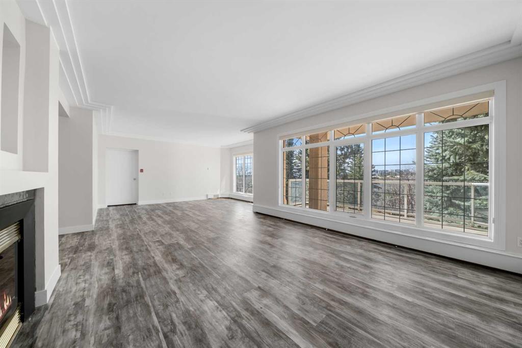 The living area is anchored by a gas fireplace, while an adjoining sitting space offers flexibility for a quiet retreat, reading lounge, or home office—all with direct access to your private balcony.