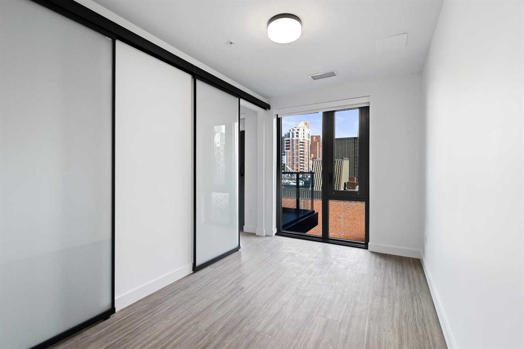 Welcome to unit 604 at First & Park, an elegant new address in Calgary’s sought-after Eau Claire community. This one bedroom, one bathroom home combines modern design with everyday convenience. The open-concept layout features a sleek kitchen with contemporary cabinetry, quartz countertops, and premium appliances, flowing seamlessly into the bright living space and east facing balcony. A spacious bedroom, full bath, and in-suite laundry offer comfort and functionality. Enjoy a titled parking stall, along with building amenities including an upscale gym & yoga studio (patio just outside which also features gas bbq hookups), party lounge, modern co-working space and concierge. Just steps from the Bow River pathways, Prince’s Island Park, dining, and downtown, this is the perfect balance of style and location. Whether you’re a first-time buyer, investor, or looking for a stylish downtown retreat, this home at First & Park is the perfect opportunity to live where the city meets the river. Packages available for FURNISHED UNITS! 1 titled parking stall with unit!