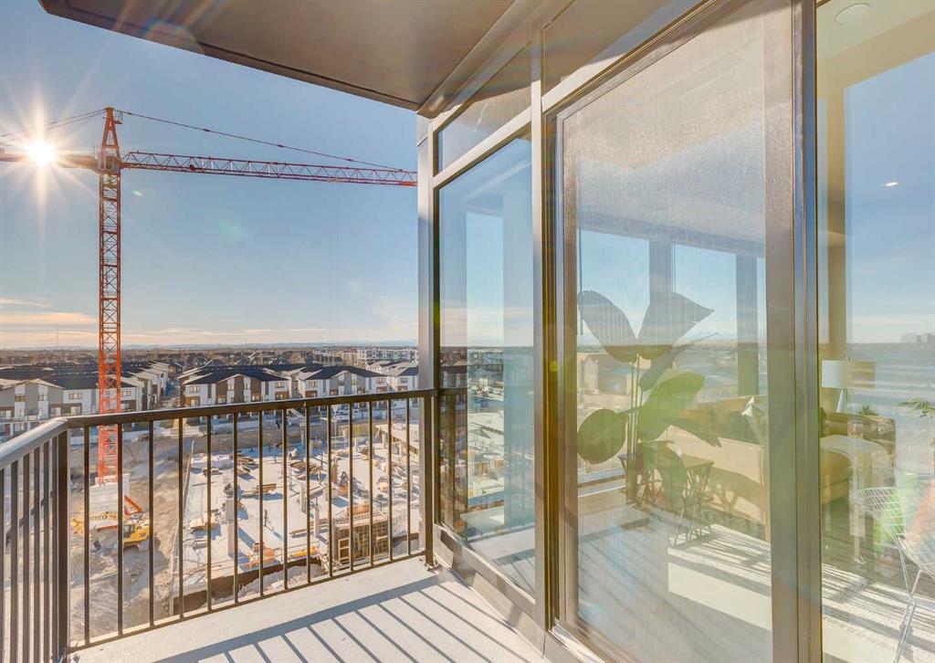 Welcome to this brand-new corner-unit condominium in the Plaza, located in the award-winning West District, where modern design meets an exceptional urban lifestyle. This bright and beautifully designed home features 9-foot ceilings and expansive windows that flood the space with natural light throughout the day. With the main living area and primary bedroom facing south, the home enjoys incredible sunshine, while the east-facing balcony and second bedroom overlook the stunning central patio below. The open-concept floor plan is ideal for both everyday living and entertaining. The contemporary kitchen is finished with quartz countertops, a gas range, and a built-in refrigerator, seamlessly blending style and functionality. The layout offers two spacious bedrooms and two well-appointed bathrooms, along with a large laundry room with excellent storage, a rare and highly desirable feature. Plaza offers exceptional building amenities, including a fully equipped fitness centre and an inviting owners’ lounge complete with arcade games and a pool table. Additional conveniences include a dedicated dog wash and a car wash. The home also includes heated underground parking, modern finishes throughout, and thoughtful design details that set this residence apart. Just steps from your door, enjoy boutique shopping, some of Calgary’s best dining and cafés, and the beautifully designed Central Park. The corner-unit position is truly the standout feature, offering exceptional light, privacy, and views making this a rare opportunity to own in one of Calgary’s most sought-after communities.