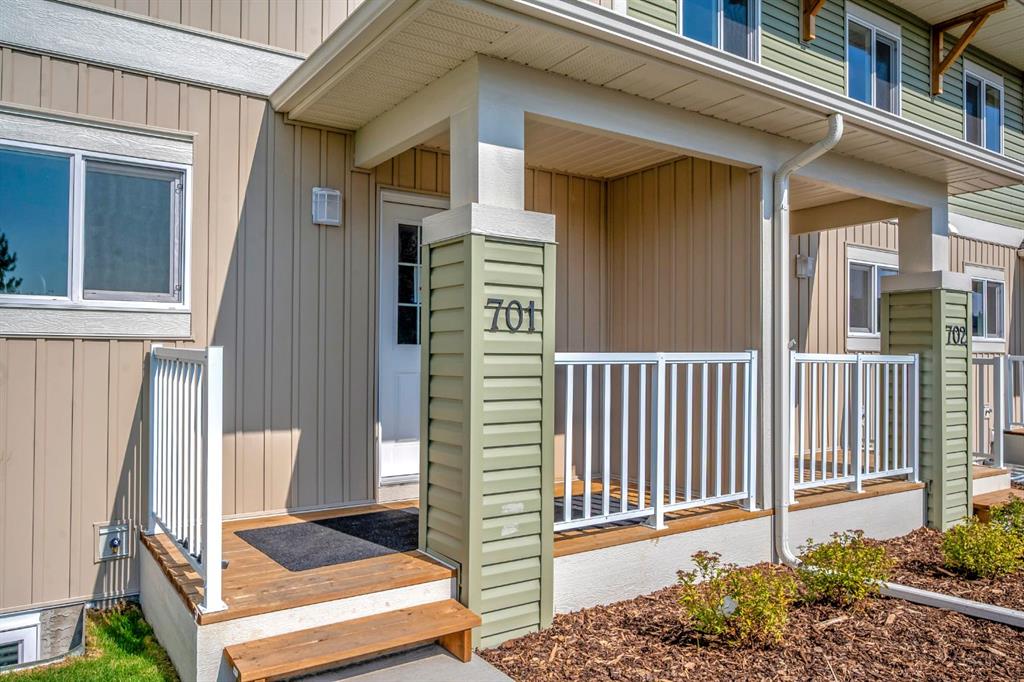 Welcome to 604 Clover Road – a newly built, fully finished END UNIT townhome that perfectly blends modern design, quality craftsmanship, and thoughtful functionality. Offering over 1575 sq ft of fully developed living space, this stunning two-storey features 4 bedrooms and 3.5 bathrooms, making it ideal for young professionals, investors or families seeking extra space and comfort. Step inside and you’ll be greeted by 9-foot ceilings, a bright and open layout, and stylish finishes throughout. The main floor features LVP flooring, numerous LED pot lights, and a beautiful kitchen with quartz countertops, high-gloss cabinetry, subway tile backsplash, and Whirlpool stainless steel appliances. The under mount sink with a pull-spray faucet and a convenient water line to the fridge add both elegance and practicality. Upstairs, you’ll find a spacious primary suite complete with its own 3 pc en suite and walk in closet, 2 additional bedrooms, a main 4-piece bathroom, and stacked laundry room for added convenience. All bathrooms feature quartz counters, under mount sinks, ceramic tile floors and walls, and comfort-height toilets. The fully finished basement expands your living space with a cozy recreation area, a custom dry bar with a mini fridge, an additional bedroom, and a full bathroom—perfect for guests, entertaining, or a home office setup. Additional highlights include a high-efficiency furnace and 50-gallon hot water tank. Outside, the home showcases Smartboard siding, and a decorative fiberglass front entry door. Large private concrete patio equipped with a gas line rough-in for easy summer BBQs This home also includes two assigned parking stalls, and a low-maintenance lifestyle with monthly condo fees of $305.89. This move-in-ready home combines modern design, energy efficiency, and functional living in a peaceful Carstairs community — the perfect place to call home.