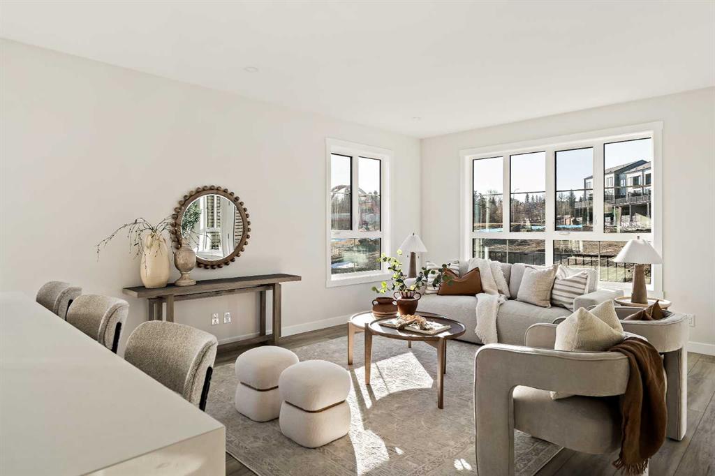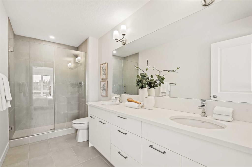 Welcome to the Torrey at Crown Park – an exceptional opportunity offering a brand-new townhouse featuring 3 bedrooms, 2.5 bathrooms, and a private double-attached garage. Offering over 1,500 ft² of thoughtfully designed living space, this end-unit townhome is one of the last remaining opportunities and is perfectly positioned within the development. Large, west-facing windows bring in natural light throughout the day, creating a bright and comfortable living environment. The bright and open main living area showcases a stunning kitchen with endless upgrades, including built-in appliances, quartz countertops, and timeless white cabinetry. Designed with entertaining in mind, the kitchen flows seamlessly into the expansive main living area, creating the perfect space for gatherings or everyday living. Large west-facing windows throughout the main level enhance the sense of space and light, creating a welcoming atmosphere year-round. The impressive great room offers ample space for virtually any furniture configuration and opens directly into the large dining area, allowing for a seamless transition between spaces. The main level is complete with a 2-piece powder room and direct access to the sprawling 26′ balcony that spans the width of the home. The outdoor living space is equipped with a BBQ gas line and hose bib, adding everyday convenience and making it easy to enjoy outdoor living. The upper level has been thoughtfully designed, with the primary suite spanning the width of the home while the secondary bedrooms and main bathroom are positioned on the opposite end for added privacy. The ~12′ x 12′ primary bedroom easily accommodates a king bedroom suite and includes a walk-in closet and private 4-piece ensuite featuring dual sinks and a walk-in tiled shower. The upper level is completed by two additional bedrooms, a full bathroom, and convenient upper-floor laundry. The flexibility of three bedrooms makes this home ideal for families, guests, or a dedicated home office, offering excellent long-term versatility and value. The entry level provides access to the private double attached garage, which includes additional space for storage along with a large dedicated storage room, keeping everything organized and secure year-round. Located in Crown Park – one of Calgary’s last remaining inner-city developments – just minutes from downtown, this home offers exceptional convenience with major transportation routes, amenities, and green spaces all close by. Perfect for first-time buyers, investors, or those seeking a lock-and-leave lifestyle with maintenance-free living, this brand new home is backed by a comprehensive builder warranty and Alberta New Home Warranty, allowing you to purchase with confidence and peace of mind. **Please note: Photos are of a previous show unit and are not an exact representation of the property for sale.
