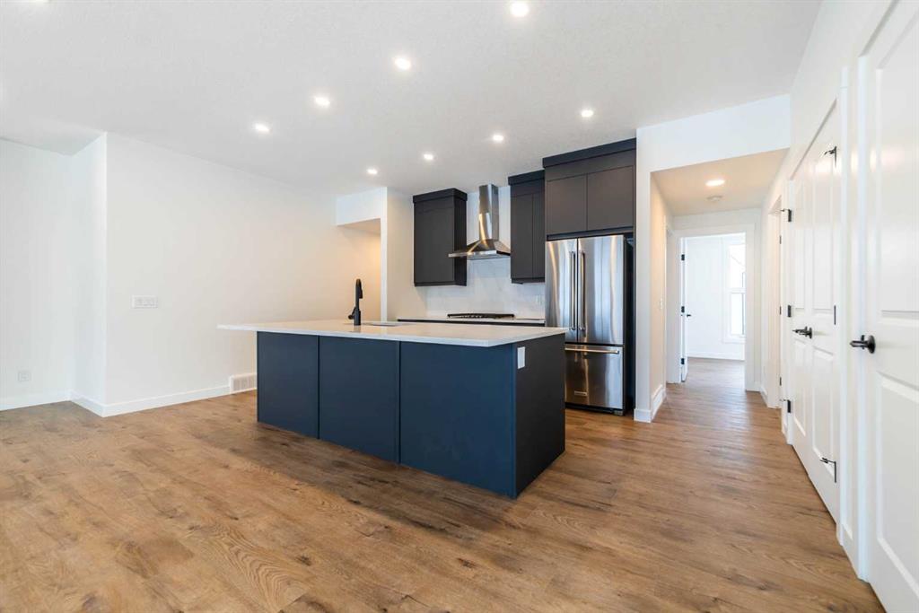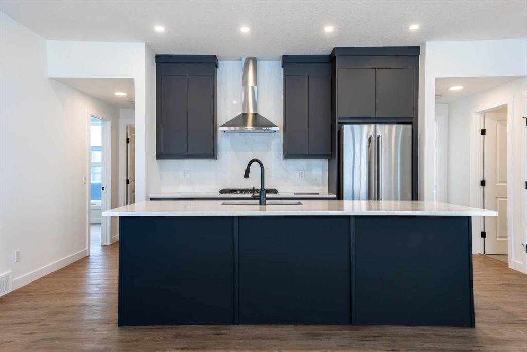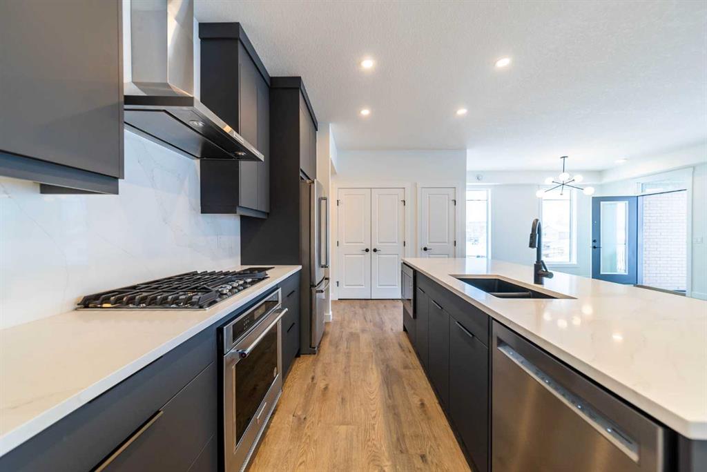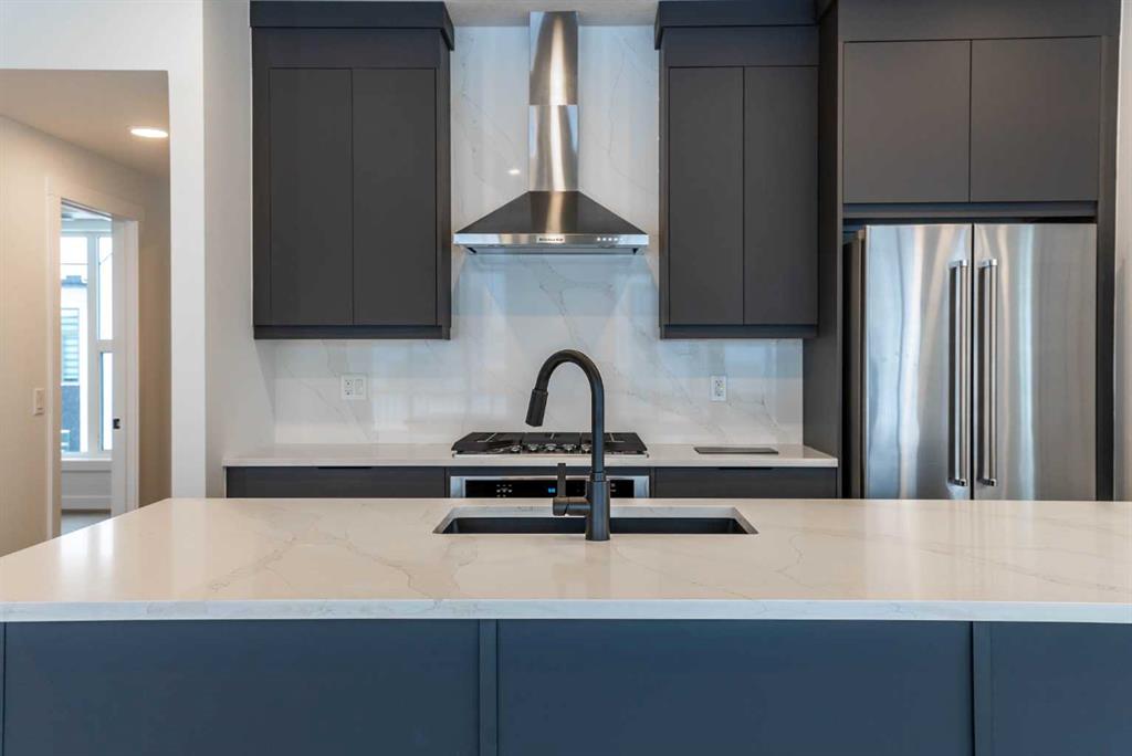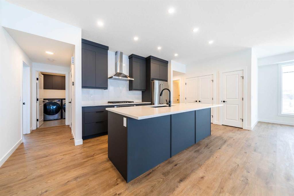 The Hyde at Crown Park is the perfect townhouse for those wanting single-level living without compromise. Featuring 3 bedrooms, 2 bathrooms, and nearly 1,400 ft2 of living space on one level with a private double attached and endless storage space, this home is perfect for those looking to downsize without compromising. Located in the heart of Crown Park overlooking a central park and just minutes from downtown Calgary, this brand new end-unit townhome perfectly combines maintenance-free living within a central urban setting. The beautifully designed main living area has the perfect open-concept design, making it ideal for entertaining and hosting. The kitchen anchors the main living space and opens perfectly to the living and dining areas with a wall of southwest-facing windows flooding the space with natural light. The timeless kitchen is complete with shaker cabinets, quartz countertops, and a suite of built-in appliances including a gas cooktop. The expansive living area has a central fireplace and ample seating space for six+ people, making entertaining a breeze. The large dining area can easily accommodate a table with seating for eight people and includes additional windows for added natural light. The primary suite is located at one end of the property, with laundry providing added privacy between the owner’s suite and secondary bedrooms. A luxurious 4 pc ensuite with dual sinks and a walk-in shower as well as a large walk-in closet complete the primary suite. Two additional bedrooms provide added flexibility, with space for a guest bedroom + home office space or media room, and have their own full bathroom. The main living area is complete with a large laundry room with additional cabinets for storage and a countertop for added convenience. A ~26’x8′ balcony provides the perfect outdoor living space – complete with a gas line, hose bib, and overlooking the park with optimal southwest exposure ensuring you’re maximizing your sun and natural light all year long. The lower level of the property provides access to the oversized private double attached garage and two expansive storage spaces provide the space you’ve been looking for! Located at Calgary’s newest inner-city development, this brand new home provides a lock-and-leave lifestyle without compromise and includes full builder warranty + Alberta New Home Warranty. These rare designs don’t come available often – this is your opportunity to get the bungalow-style home you were looking for that offers single-level living with a private garage and low fees that provide you with a maintenance-free lifestyle. *Note photos of a previous listing and are not an exact representation of the property for sale.