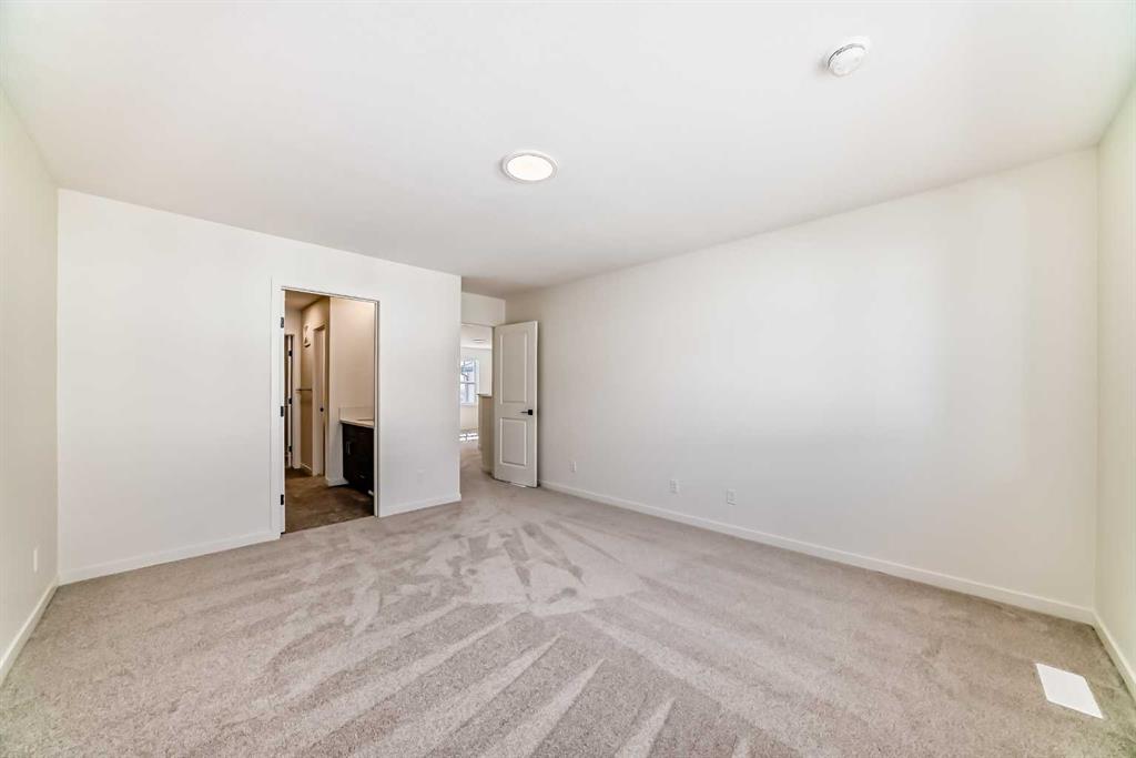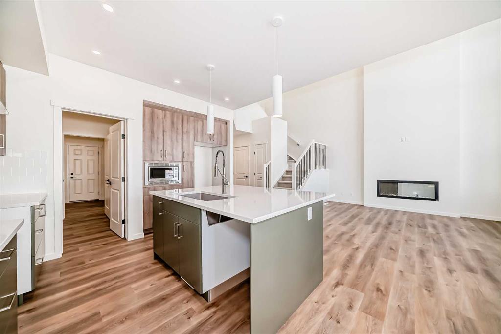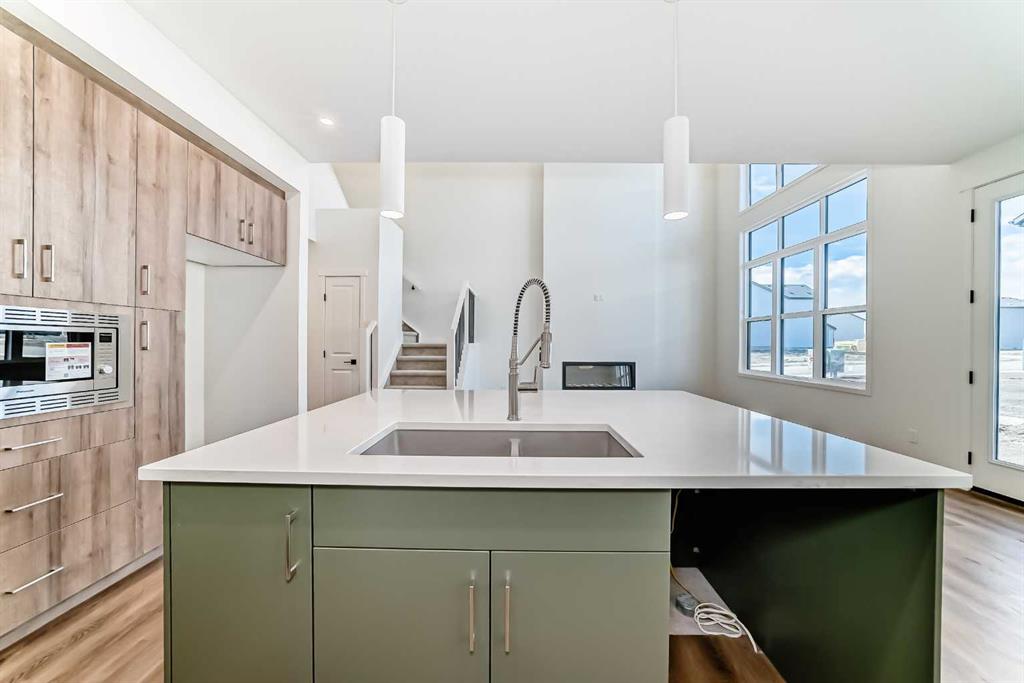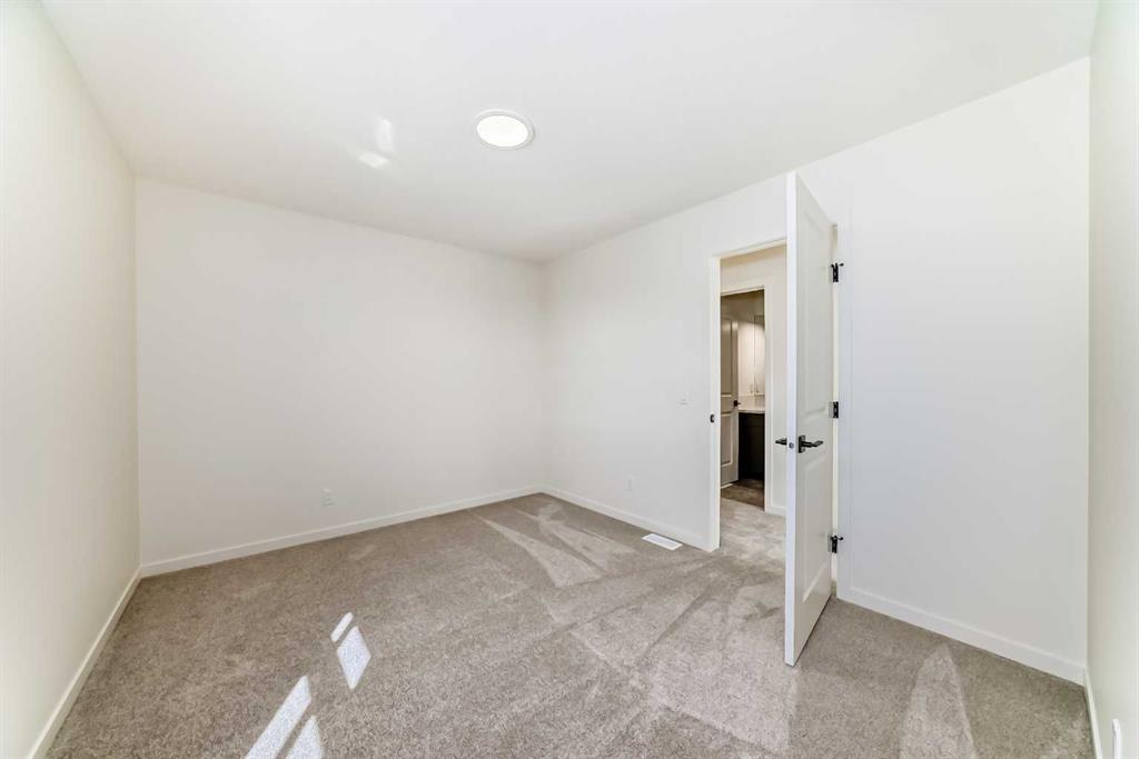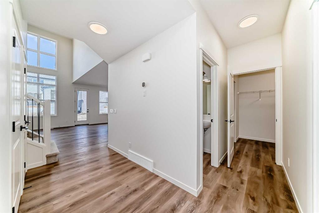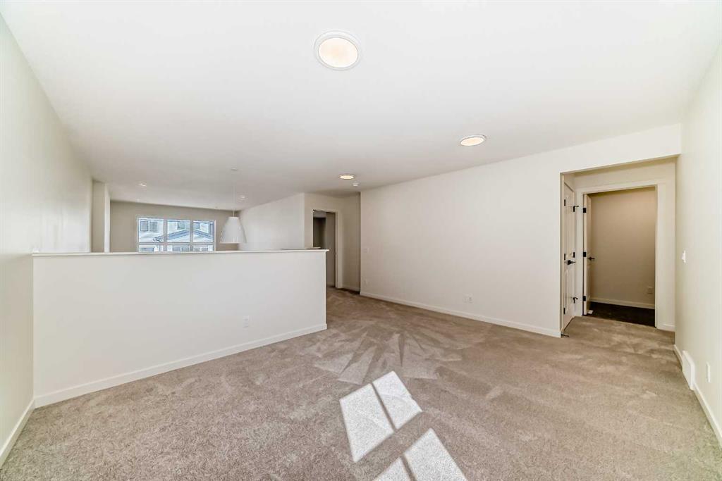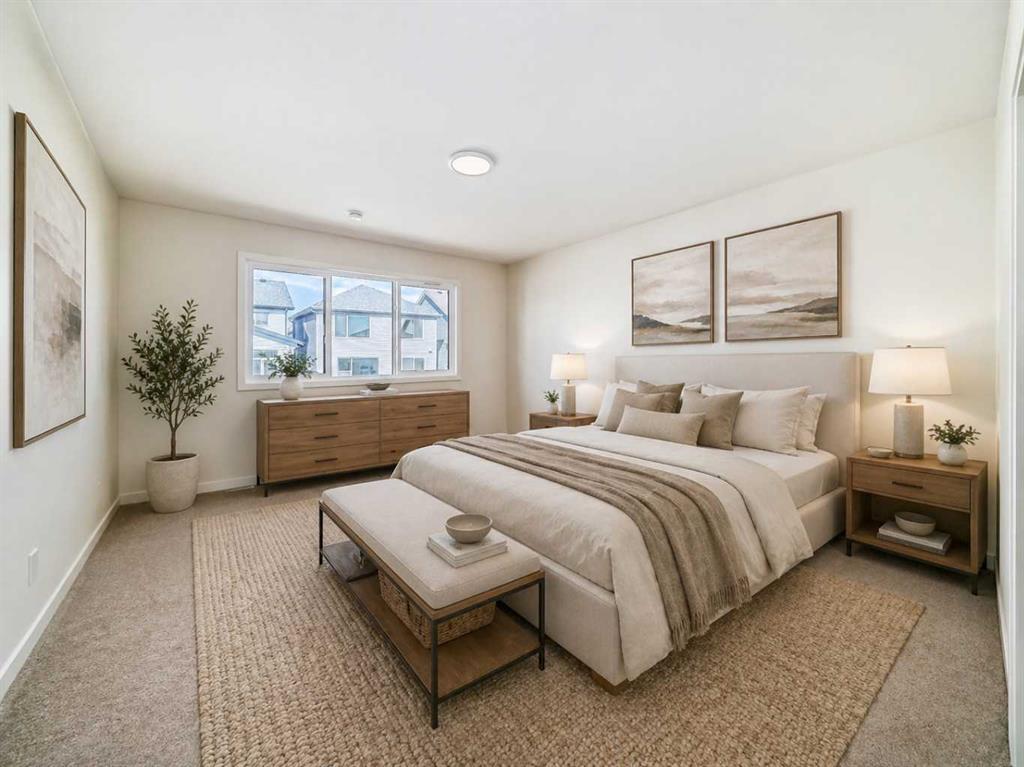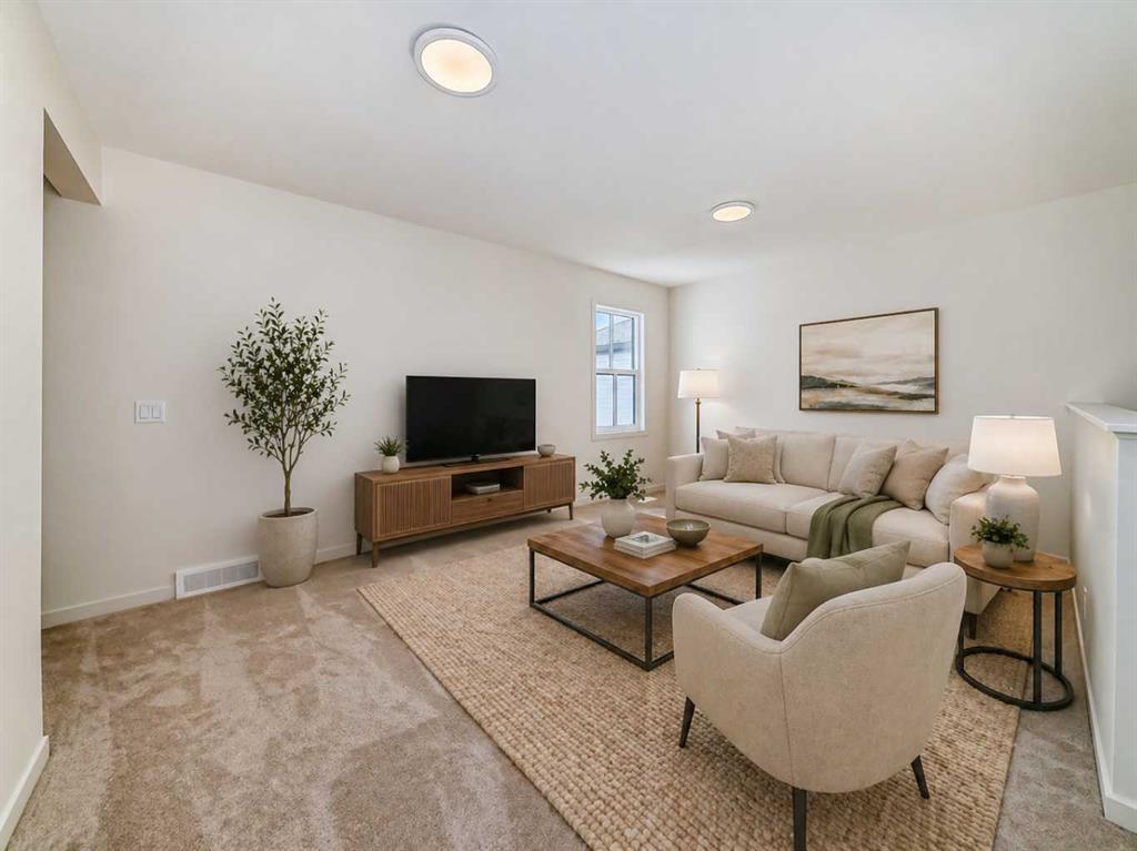 Welcome to The Rossa, a thoughtfully designed quick possession home in Rangeview that blends comfort, versatility, and elevated finishes for today’s modern families. From the moment you step inside, you’re welcomed by durable luxury vinyl plank flooring that carries throughout the main level, offering both style and practicality for everyday living. Near the front of the home, a flex space provides the perfect spot for a home office, study nook, reading area, or creative playroom designed to grow and adapt with your lifestyle. At the heart of the home, the upgraded kitchen makes a beautiful statement with two-tone cabinetry featuring olive lower cabinets and wood grain uppers, creating a warm, modern, and design forward feel. White quartz countertops pair perfectly with the classic white square tile backsplash, while the upgraded kitchen package includes a built in microwave and a stand alone hood fan wrapped in tile for a polished custom look. With thoughtful storage, stylish finishes, and a functional layout, this kitchen is equally ready for quiet weeknights, weekend hosting, and everything in between. Just off the kitchen, the spacious dining area is filled with natural light from large rear facing windows, creating the perfect backdrop for casual breakfasts, family dinners, or holiday gatherings. Adjacent to the dining space, the open to above living room delivers a true wow factor with soaring height, dramatic windows, and a beautiful electric fireplace that anchors the room with warmth and style. Upstairs, a modern railing leads to a versatile entertainment room, ideal for movie nights, gaming, a kids’ retreat, or a quiet secondary lounge. The private primary suite feels like a true escape, complete with a generous walk-in closet and a 5 piece ensuite featuring dual sinks, a deep soaker tub, and a separate shower. Two additional well sized bedrooms share a 4 piece bathroom, while the upper level laundry room adds everyday convenience right where you need it most. Downstairs, the 9’ foundation basement with a separate side entrance is full of future potential. Whether you’re dreaming of additional living space, a home gym, or a future legal suite (A secondary suite would be subject to approval and permitting by the city/municipality), this level offers excellent flexibility for the years ahead. Outside, the west-facing backyard is ready for Calgary’s long summer evenings, perfect for BBQs, outdoor dining, garden lounging, or simply relaxing in the evening sun. Located in Calgary’s desirable southeast, Rangeview is more than just a neighbourhood, it’s a community built around connection, sustainability, and a shared love of food and nature. Inspired by Alberta’s rich agricultural heritage, Rangeview is Calgary’s first garden-to-table community, designed with future gardens, orchards, gathering spaces, pathways, and community-focused amenities that encourage neighbours to connect, grow, and enjoy a lifestyle rooted in wellness and belonging.