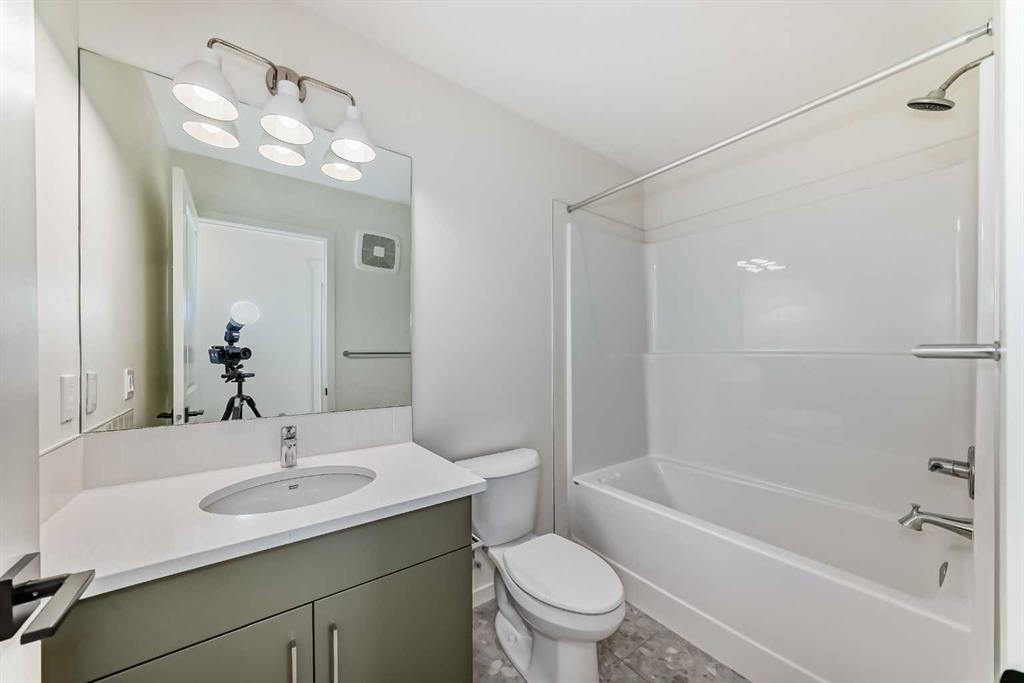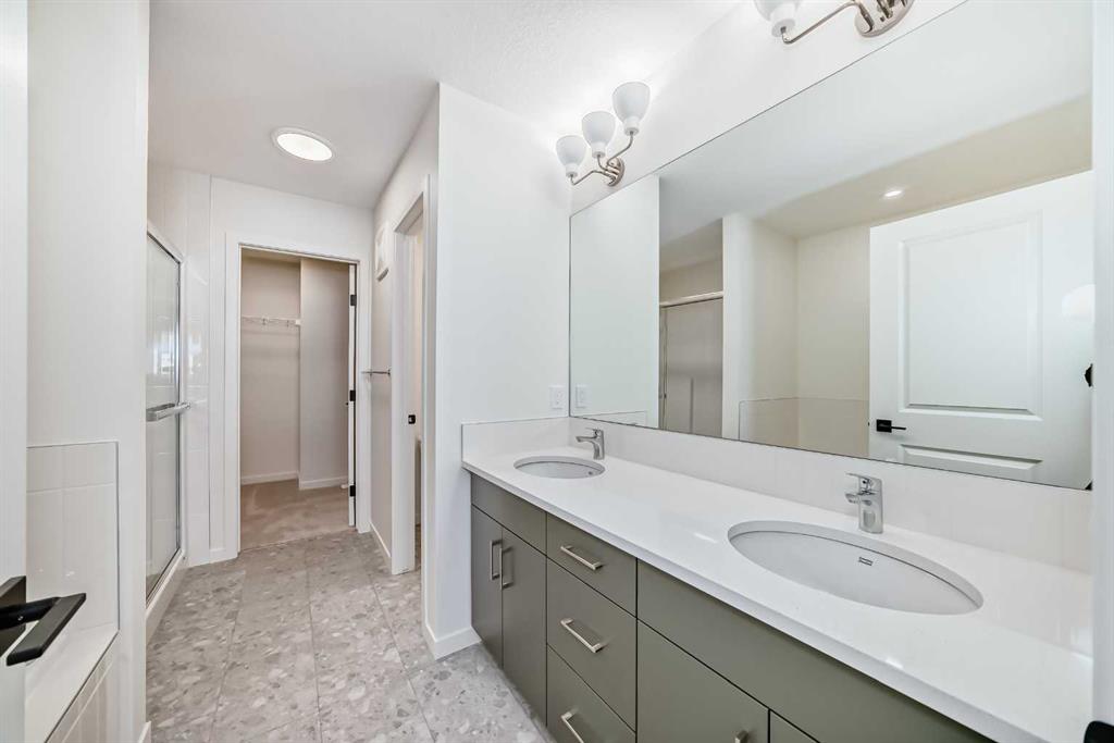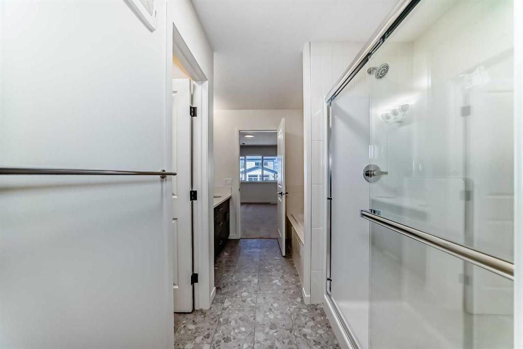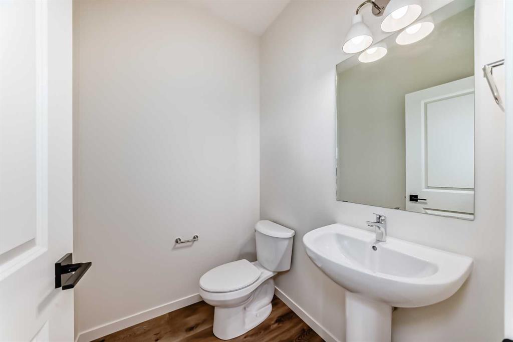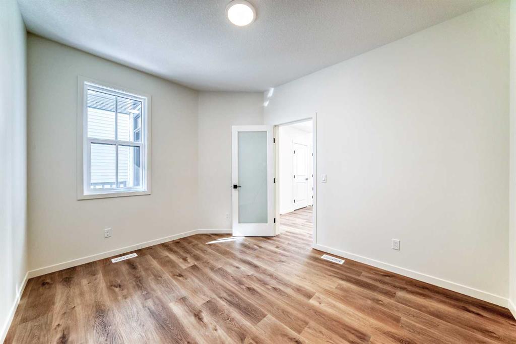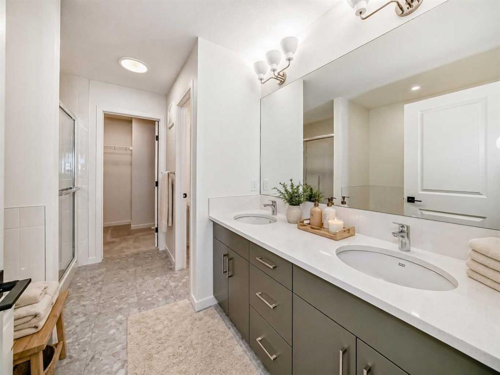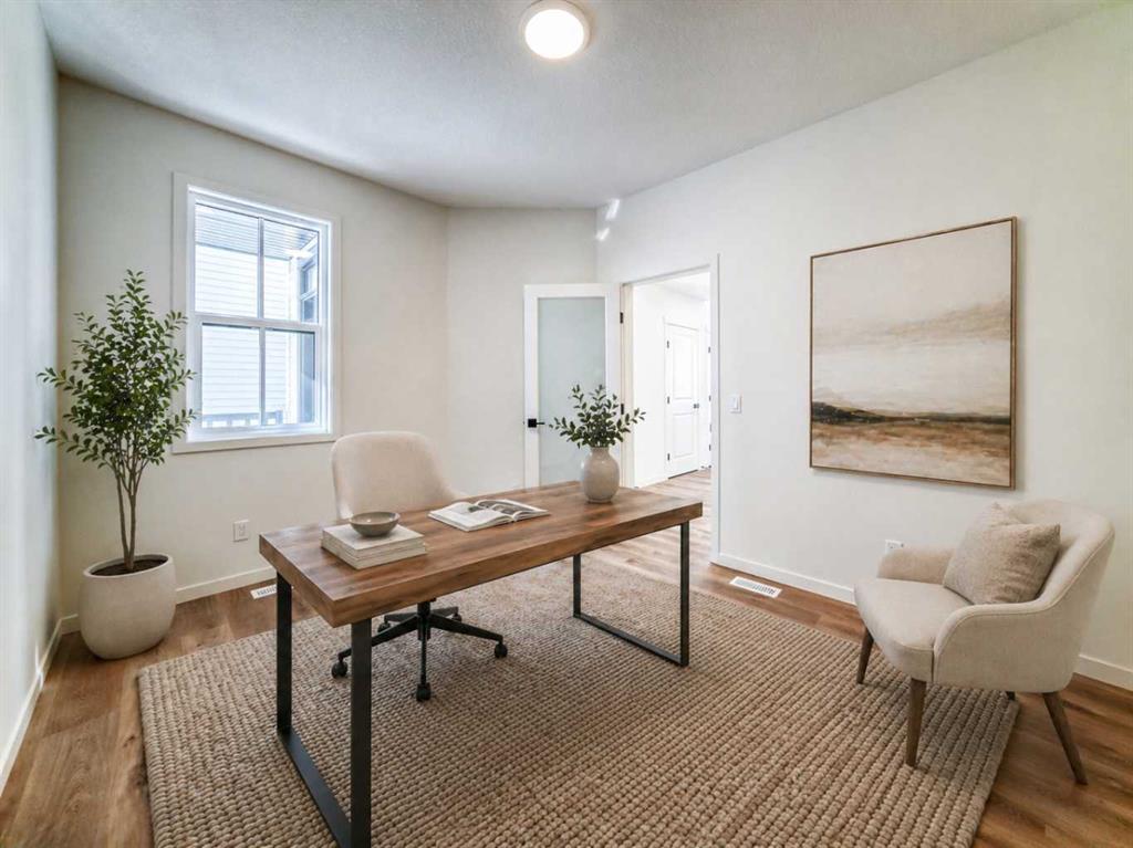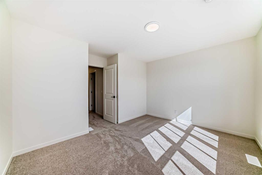 Welcome to The Rossa, a thoughtfully designed quick possession home in Rangeview that blends comfort, versatility, and elevated finishes for today’s modern families. From the moment you step inside, you’re welcomed by durable luxury vinyl plank flooring that carries throughout the main level, offering both style and practicality for everyday living. Near the front of the home, a flex space provides the perfect spot for a home office, study nook, reading area, or creative playroom designed to grow and adapt with your lifestyle. At the heart of the home, the upgraded kitchen makes a beautiful statement with two-tone cabinetry featuring olive lower cabinets and wood grain uppers, creating a warm, modern, and design forward feel. White quartz countertops pair perfectly with the classic white square tile backsplash, while the upgraded kitchen package includes a built in microwave and a stand alone hood fan wrapped in tile for a polished custom look. With thoughtful storage, stylish finishes, and a functional layout, this kitchen is equally ready for quiet weeknights, weekend hosting, and everything in between. Just off the kitchen, the spacious dining area is filled with natural light from large rear facing windows, creating the perfect backdrop for casual breakfasts, family dinners, or holiday gatherings. Adjacent to the dining space, the open to above living room delivers a true wow factor with soaring height, dramatic windows, and a beautiful electric fireplace that anchors the room with warmth and style. Upstairs, a modern railing leads to a versatile entertainment room, ideal for movie nights, gaming, a kids’ retreat, or a quiet secondary lounge. The private primary suite feels like a true escape, complete with a generous walk-in closet and a 5 piece ensuite featuring dual sinks, a deep soaker tub, and a separate shower. Two additional well sized bedrooms share a 4 piece bathroom, while the upper level laundry room adds everyday convenience right where you need it most. Downstairs, the 9’ foundation basement with a separate side entrance is full of future potential. Whether you’re dreaming of additional living space, a home gym, or a future legal suite (A secondary suite would be subject to approval and permitting by the city/municipality), this level offers excellent flexibility for the years ahead. Outside, the west-facing backyard is ready for Calgary’s long summer evenings, perfect for BBQs, outdoor dining, garden lounging, or simply relaxing in the evening sun. Located in Calgary’s desirable southeast, Rangeview is more than just a neighbourhood, it’s a community built around connection, sustainability, and a shared love of food and nature. Inspired by Alberta’s rich agricultural heritage, Rangeview is Calgary’s first garden-to-table community, designed with future gardens, orchards, gathering spaces, pathways, and community-focused amenities that encourage neighbours to connect, grow, and enjoy a lifestyle rooted in wellness and belonging.