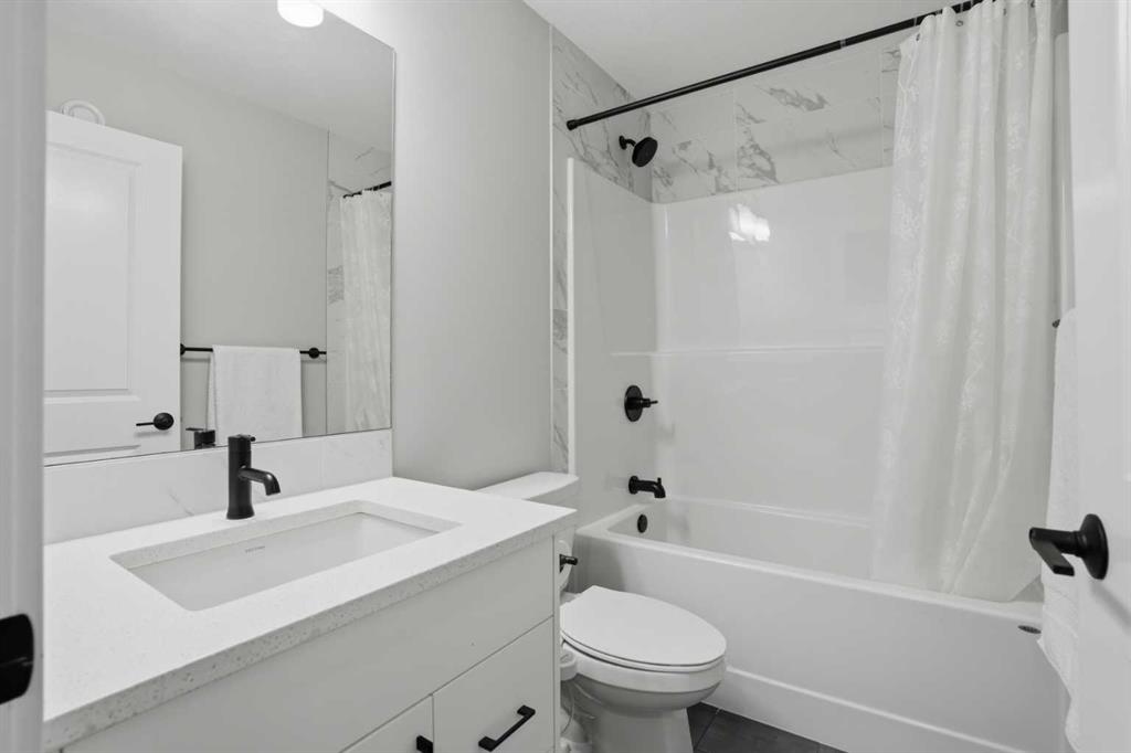 **LEGAL 2 Bedroom Basement Suite** Stunning Family Home | 2,218 SqFt Main & Upper | 814 SqFt Legal Basement Suite | Sleek Modern Design | Two Toned Kitchen | Full Height Cabinets | Herringbone Backsplash | Stainless Steel Appliances | Gas Stove | Quartz Countertops | Kitchen Island with Barstool Seating Space | Walk-through Pantry | Main Level Office | Electric Fireplace | Open Floor Plan | High Ceilings | Large Windows | Great Natural Light Throughout | 3 Upper Level Bedrooms | Upper Level Family Room | Upper Level Laundry Room with Folding Shelf | Primary Ensuite Bath Standalone Soaking Tub | Great Closet Space | Separate Entry to Legal Basement Suite | Basement Laundry | Open Concept Living | Sizeable Bedrooms | Generous Storage | Rear Deck | Large Fully Fenced Backyard | Front Double Attached Garage. Welcome to your beautiful 2-storey family home boasting over 3,000 SqFt of developed living space throughout the main, upper & basement levels. The front door opens to a view of the beautiful the spindle staircase. The wide plank flooring, high ceilings & wide hallways highlight the size of this home. Step into the open floor plan kitchen, dining & living rooms where you’ll immediately want to entertain! The kitchen is two-toned white & blue, a herringbone backsplash, sparkling quartz countertops & stainless steel appliances with a gas stove. The centre island with barstool seating is the perfect space to socialize while you cook or to enjoy small meals. The walk-through pantry that connects the kitchen to the mud room area off the interior garage door makes every grocery drop easy! The dining & living rooms are framed with glass providing incredible natural light. The dining room has sliding glass doors that lead to the back deck making indoor/outdoor living easy in Calgary’s warm summer months. The living room is centred with an electric fireplace with a TV ready wall above. The open-door office across from the kitchen island is a bonus for anyone with a work-from home lifestyle or can be used a kid’s playroom! The main level is complete with a 2pc bath. Upstairs holds 3 bedrooms, 2 bathrooms, a family room & laundry room. The primary bedroom is a personal oasis with plush carpet flooring, a deep walk-in closet & private 5pc ensuite bathroom. The ensuite has a deep standalone soaking tub, walk-in shower, double vanity & private washing closet. Bedrooms 2 & 3 are on the other side of the central family room; these share the 4pc bath with a tub/shower combo. The family room is a great space to come together in the evenings to relax & unwind. The laundry room located upstairs is every home owner’s dream as its near all the bedrooms! Downstairs, the legal 2 bedroom basement suite has a separate side entry & its own laundry making it a completely independent level in the home. The open floor plan kitchen & rec room is spacious! Both bedrooms are sizeable & share the 4pc bath. Outside is an incredible backyard is ready to be enjoyed! Hurry and book your showing today!
