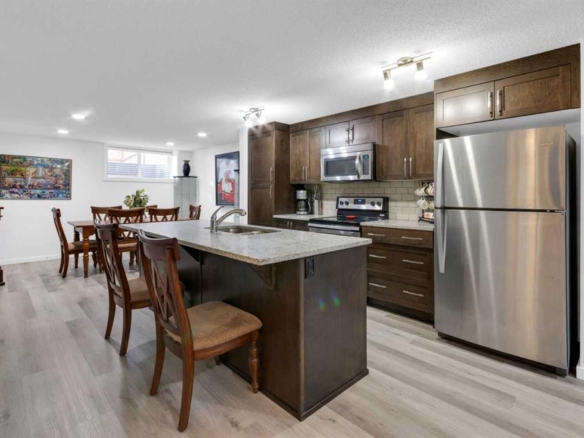 Welcome to 610 Southwinds Close. An exceptional, fully developed home in the sought-after community of Southwinds, where modern design, elevated finishes, and expansive living spaces come together seamlessly. Offering 7 bedrooms and over 2,800 sq ft above grade, this home delivers a rare combination of luxury, functionality, and versatility for today’s evolving lifestyle. From the moment you step inside, you’re greeted by soaring high ceilings, large windows throughout, and an abundance of natural light that enhances the home’s bright, open feel. Sleek vinyl plank flooring flows across the main level, complementing the clean, contemporary design. A standout design element is the tastefully carried navy blue two-tone aesthetic, thoughtfully incorporated throughout the home to create a cohesive, modern, and elevated feel. At the heart of the home is the stunning two-tone kitchen, featuring striking cabinetry, ample workspace, and a layout that seamlessly connects to the spacious dining and living areas—perfectly suited for both everyday living and elevated entertaining. With 7 bedrooms, this home offers incredible flexibility to suit a variety of needs—whether you’re accommodating a large family, creating a dedicated home office, setting up a fitness or yoga space, designing a music or creative studio, or establishing comfortable guest or multi-generational living areas. The main floor bedroom and full bath provide added convenience and privacy for visitors or extended family. Upstairs, the home continues to impress with four generously sized bedrooms, including a refined primary retreat complete with a walk-in closet and spa-inspired 5-piece ensuite. A standout feature is the large upper bonus room, offering a flexible and inviting space for a media room, family lounge, or children’s play area. The addition of upper floor laundry further enhances everyday convenience. The fully developed basement expands the home’s functionality even further, offering additional bedrooms, a full bathroom, a spacious recreation area, and dedicated storage—perfect for extended family, entertaining, or creating personalized spaces tailored to your lifestyle. Designed with comfort in mind, the home is equipped with central air conditioning, while plush carpeting on the upper and lower levels adds warmth and comfort. Outside, the west-facing backyard provides the perfect setting to unwind, entertain, and enjoy evening sun. Located in one of Airdrie’s most desirable and growing communities, Southwinds offers close proximity to parks, schools, shopping, and convenient commuter access. This is a rare opportunity to own a beautifully designed, cohesive, and light-filled home with exceptional space and modern appeal.