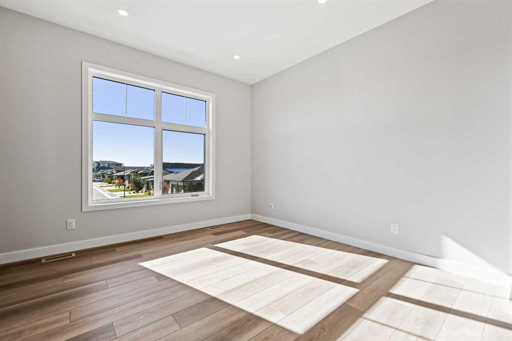 Welcome to Park Place of Mahogany. The newest addition to Jayman BUILT’s Resort Living Collection are the luxurious, maintenance-free townhomes of Park Place, anchored on Mahogany’s Central Green. A 13 acre green space sporting pickle ball & tennis courts, community gardens and a short walk to the West Beach & the Main Beach Clubhouse. Discover the MOSCATO! An elevated townhome with North & South exposures featuring A CUSTOM PALETTE AT THE BEST PRICE . You will love everything that these homeowners have hand selected – The ELEVATED package includes Luxurious 12 x 24 marble style tile called “GALLERY PEARL” at kitchen backsplash. Tafisa Karisma first Class laminate cabinetry with 2-1/4″ shaker profile framed in with moulding & slow close hinges. Stunning Taupe Crystal QUARTZ counter tops & an upgraded sleek stainless steel appliance package including a built-in microwave, gas range & designer hood fan. Beautiful straight lay luxury vinyl planking & “Millionairness” vinyl tile in the bathrooms. “Oracle” 12″x24″ horizontal stacked tile at bathroom with tile to ceiling above bath & shower & gorgeous Flurry Quartz with eased edge. Stunning pendant light fixtures over kitchen eating bar & Cafe Blanco Precis undermount sink. The home welcomes you into over 1500+sq ft of developed fine living showcasing 2 PRIMARY BEDROOMS each with their very own private ensuite & a SINGLE ATTACHED HEATED GARAGE with an UPGRADED FLEX SPACE in the front of the home with a bright Southern exposure. The thoughtfully designed open floor plan offers a beautiful kitchen boasting a sleek appliance package, undermount sinks through out, a contemporary lighting package, quartz counter tops throughout, foyer area on the lower level with a spacious Den for an additional living space, air conditioning & EV rough-in plug. Enjoy the expansive main living area that has room for a designated dining area & enjoyable living room complimented with a nice selection of windows making this home bright & airy along with a stunning linear site line with a deck & patio for your leisure. The TWO Primary Bedrooms on the upper level, both includes a generous walk-in closet with private ensuites with one boasting a 5 piece oasis featuring dual vanities, stand alone shower, large soaker tub & upgraded Cheyenne Profile Barn Door. Enjoy the LG WASHTOWER already installed & a complete Hunter Douglas Window package including room darkening, light filtering & internal mini blind at patio. Park Place home owners will enjoy lake access, 22km of community pathways & is conveniently located close to the shops and services of Mahogany & Westman Village. Jayman’s standard inclusions for this stunning home are 6 solar panels, BuiltGreen Canada Standard, with an EnerGuide rating, UVC ultraviolet light air purification system, high efficiency furnace with Merv 13 filters, active heat recovery ventilator, tankless hot water heater, triple pane windows and smart home technology solutions. WELCOME TO YOUR DREAM HOME IN PARK PLACE!