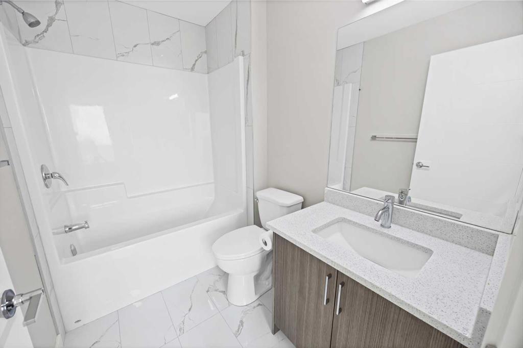 ?Welcome to this elegantly designed three-storey townhouse that blends modern style with functional living. This thoughtfully planned home offers three spacious bedrooms, each with its own private ensuite—making it ideal for families or multi-generational living. The entry level features a welcoming foyer and a versatile bedroom that can serve as a comfortable guest suite or a convenient home office. The main floor is bright and inviting, filled with natural light streaming through large windows that enhance the open-concept layout. The contemporary kitchen is equipped with stainless steel appliances, sleek lighting, and a practical breakfast bar, perfect for casual dining or entertaining guests. A cozy balcony extends the living space outdoors, while a conveniently located powder room adds to the home’s comfort and functionality. Upstairs, two generous primary bedrooms each offer private ensuites, with one suite featuring a spacious walk-in closet and a dual vanity that elevates the sense of luxury. A stacked laundry closet on this level adds everyday convenience. Additional highlights include a single attached garage, low condo fees, future nearby green space, and ample visitor parking. With easy access to Stoney Trail and nearby amenities, this home combines modern comfort, versatile design, and a highly desirable location—ready for you to move in and enjoy.