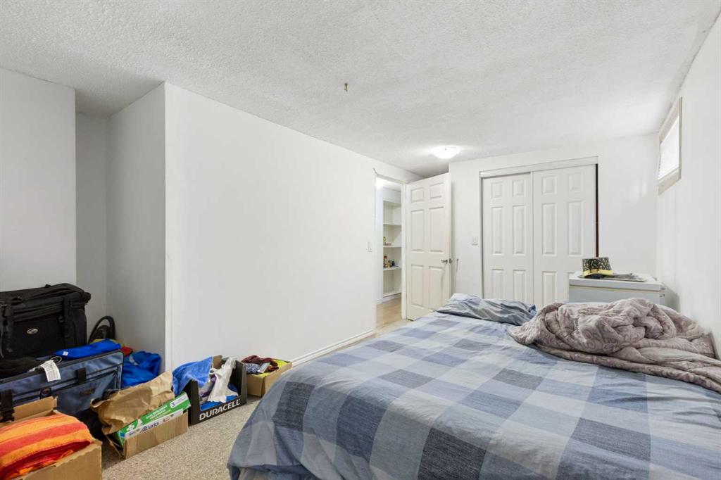 Welcome to 6124 Maddock Drive — featuring a TRIPLE GARAGE! This spacious 5-bedroom, 2.5-bathroom bungalow offers incredible flexibility, making it an excellent family home or investment rental property. Located on a quiet street, the home provides over 2,100 sq. ft. of developed living space. The main floor features a generous primary bedroom with a convenient 2-piece ensuite, along with two additional well-sized bedrooms. The bright kitchen is filled with west-facing natural light and connects seamlessly to the dining area and a large living room highlighted by an oversized window. A 4-piece main bathroom completes the main level. A separate entrance leads to the (illegal) basement suite, which includes a kitchen, dining area, family room, 4-piece bathroom, and two bedrooms. The basement is currently tenant-occupied, and the tenants would like to stay. Step outside to enjoy the huge west-facing, fully fenced backyard, complete with a storage shed. The home also features stamped concrete walkways from the front sidewalk to the back patio. The triple garage is insulated and drywalled, offering excellent options for parking, storage, or tenant use. Ideally located close to schools, parks, playgrounds, shopping, transit, and LRT. Vacant possession available for a quick close. Priced to sell!