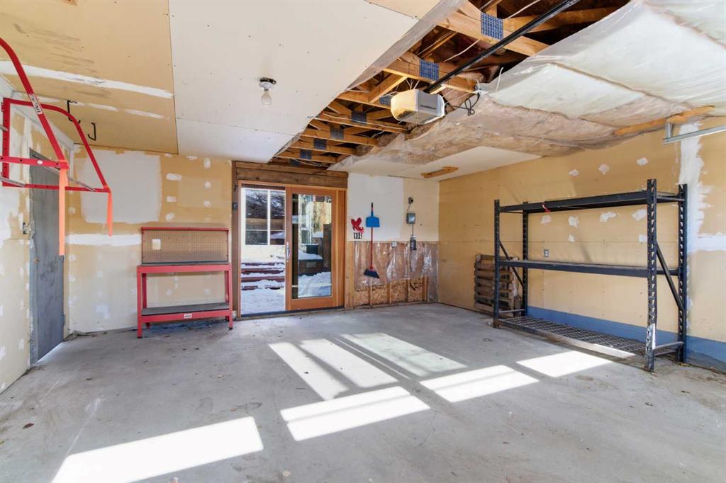 The outdoor setting is equally impressive. The large south-facing backyard offers privacy and sunlight, while the expansive rear deck — complete with a raised flower bed along its edge — creates the perfect setting for entertaining, relaxing, or gardening. A covered overhang provides sheltered access at the rear entrance. The double detached garage with glass double-door entry backs onto a lane, enhancing functionality and ease of access.
