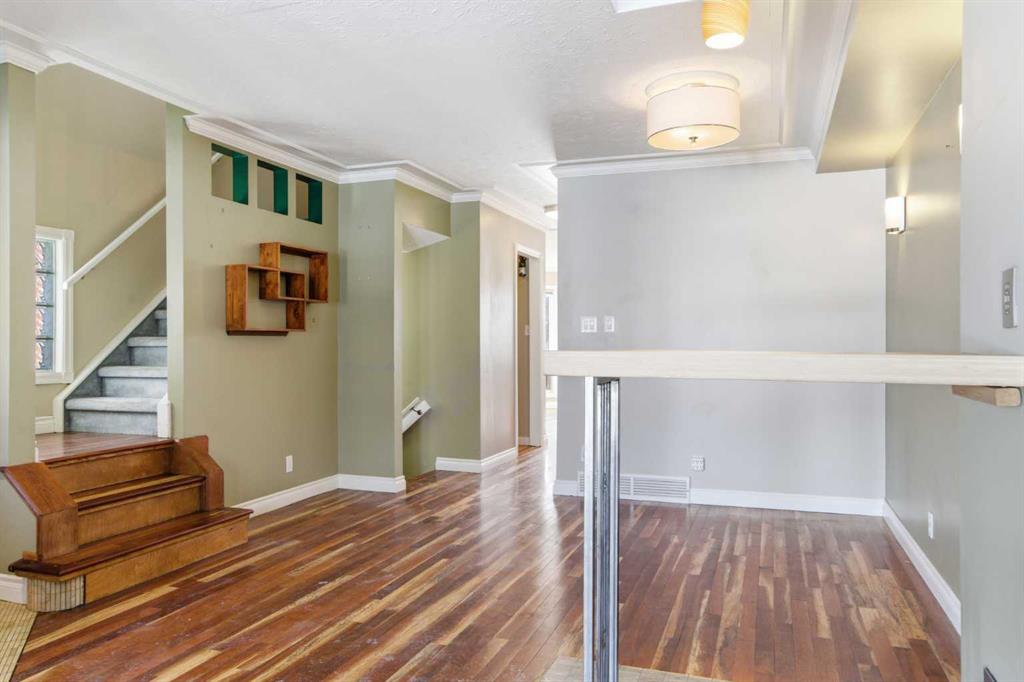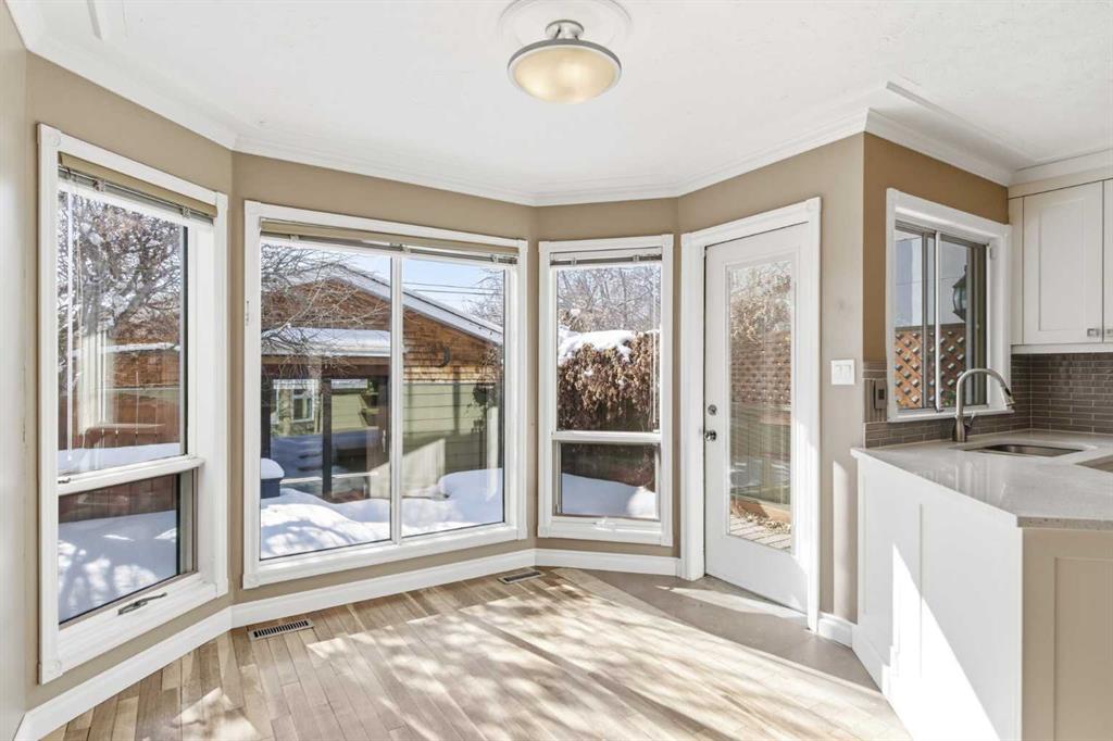 Welcome to this charming two-storey residence set on a beautiful 25′ x 120′ level lot in one of Calgary’s most desirable inner-city communities. Positioned on a quiet street surrounded by other distinguished homes, this property offers exceptional curb appeal and an elevated exterior presence that immediately captures the eye. The stone-accented entrance, durable Hardie board siding, and charming front porch with covered entry framed by the upper-level overhang create a timeless and refined first impression.